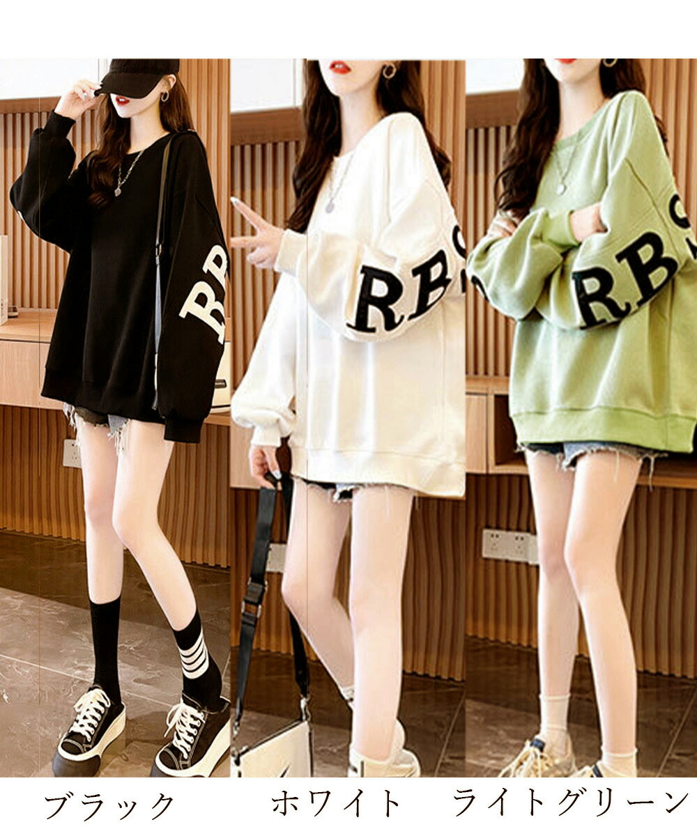 ロゴトレーナーレディース スウェット韓 レディースファッション 特集 ブラック ホワイト ライトグリーン