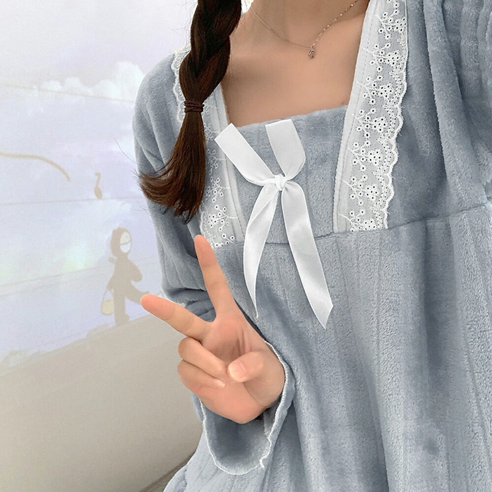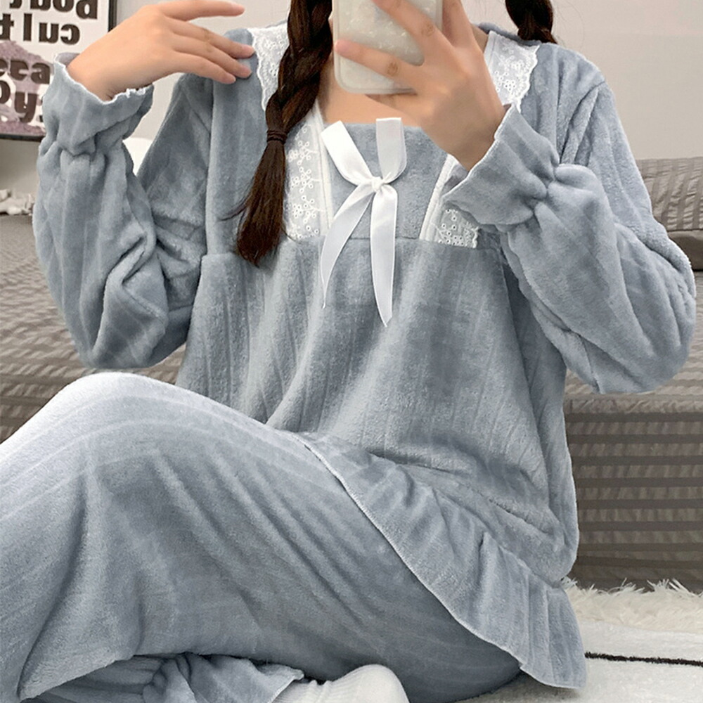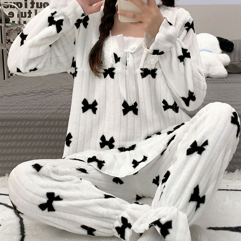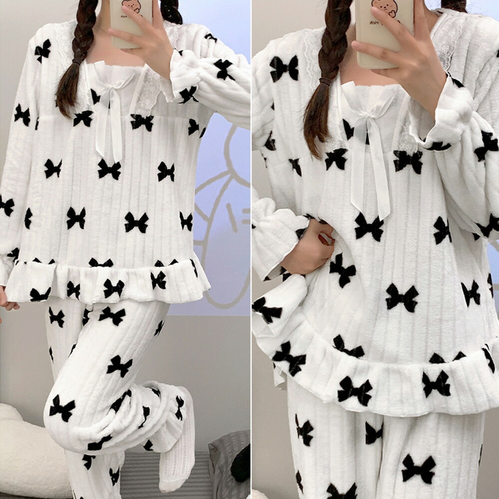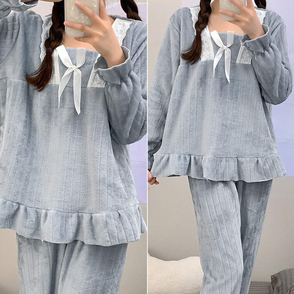 フリースパジャマ 上下セットアップ 韓 インナー 下着 ナイトウエア 大人気! くすみピンク ハート柄 ブルーグレー ベビーピンク リボン柄