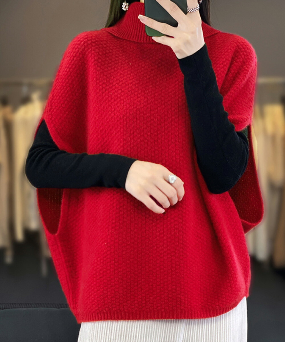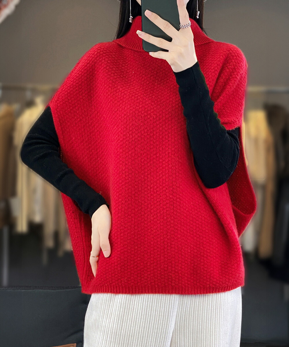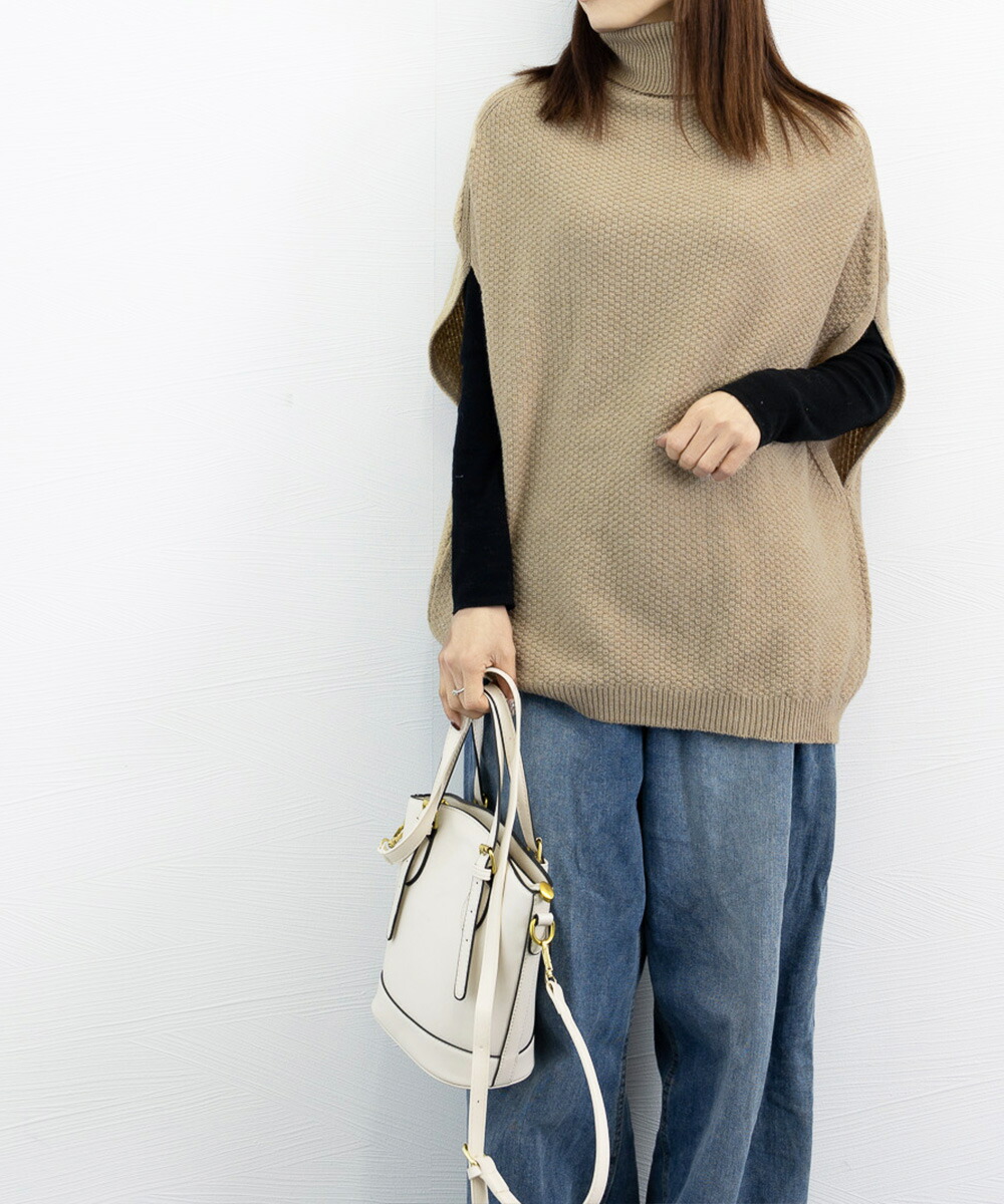 ニットベスト ジレ タートルネック重ね レディースファッション 豊富な品揃え ブラック ライトブラウン ライトベージュ レッド