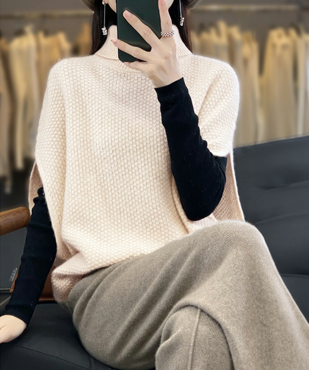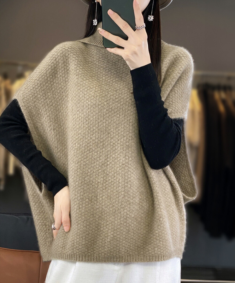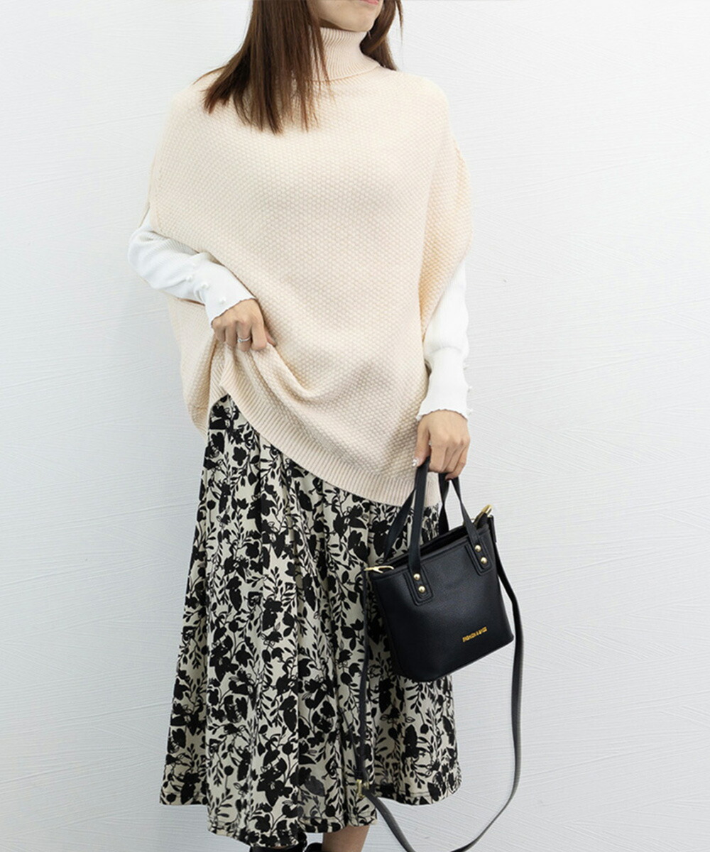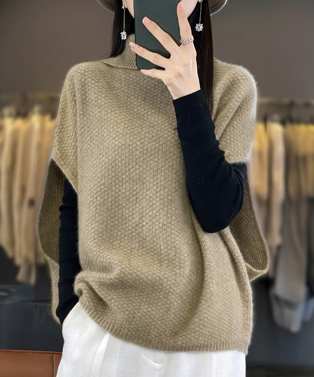 ニットベスト ジレ タートルネック重ね レディースファッション 豊富な品揃え ブラック ライトブラウン ライトベージュ レッド