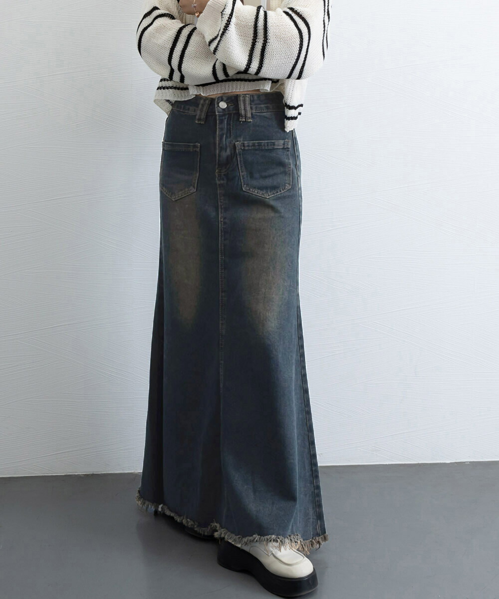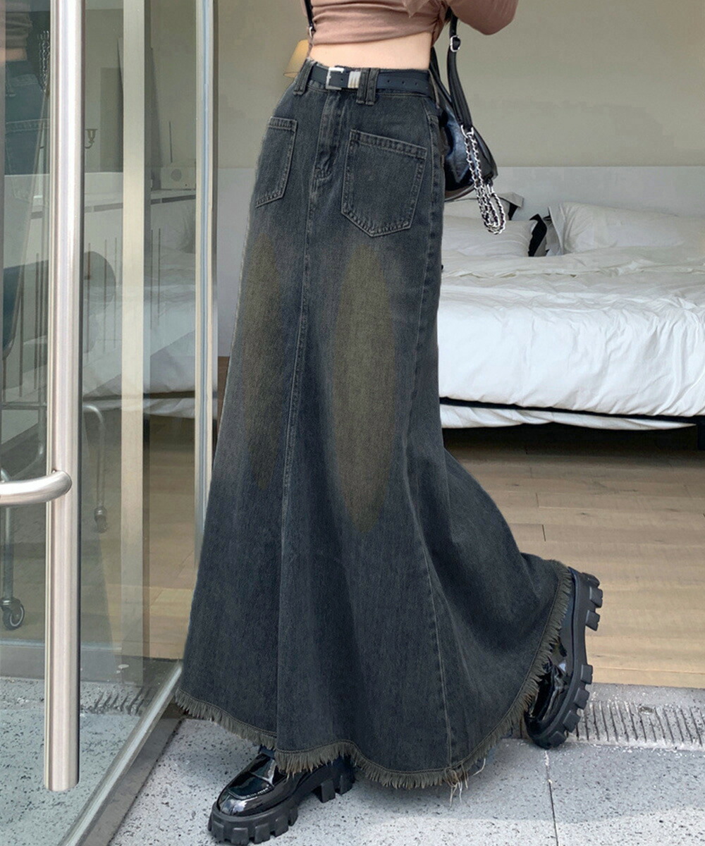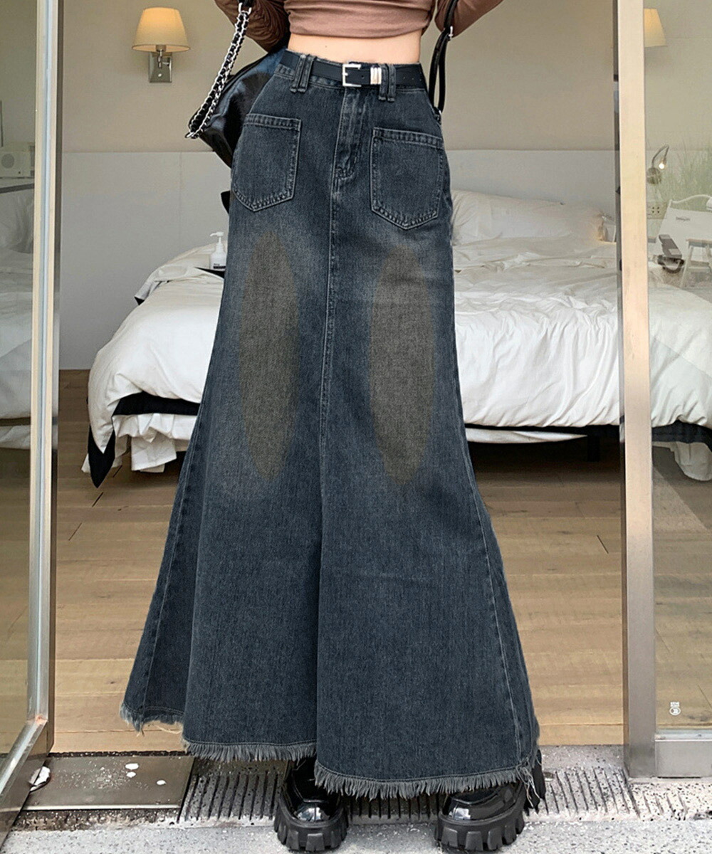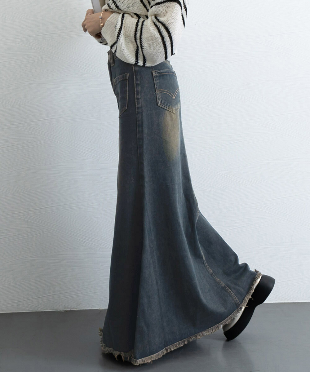 フリンジデニムスカートマーメイドスカー レディースファッション 特集 L M S XL