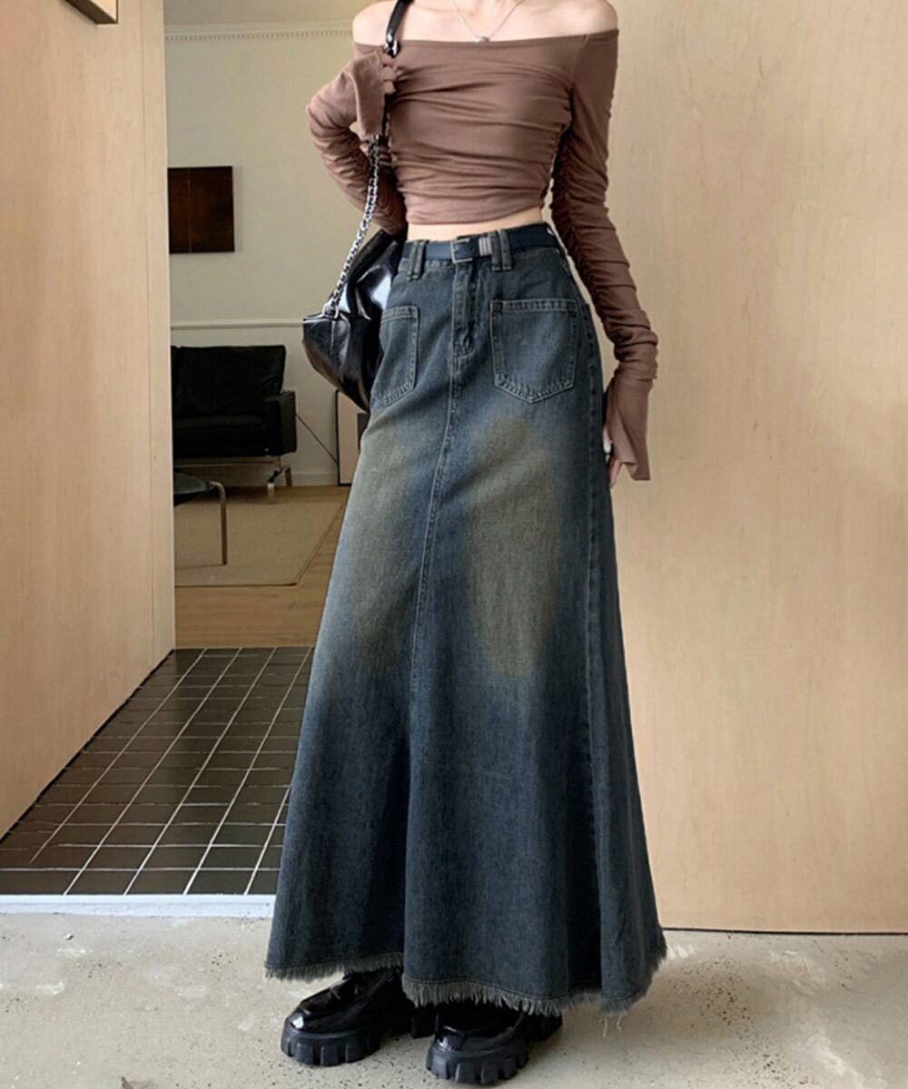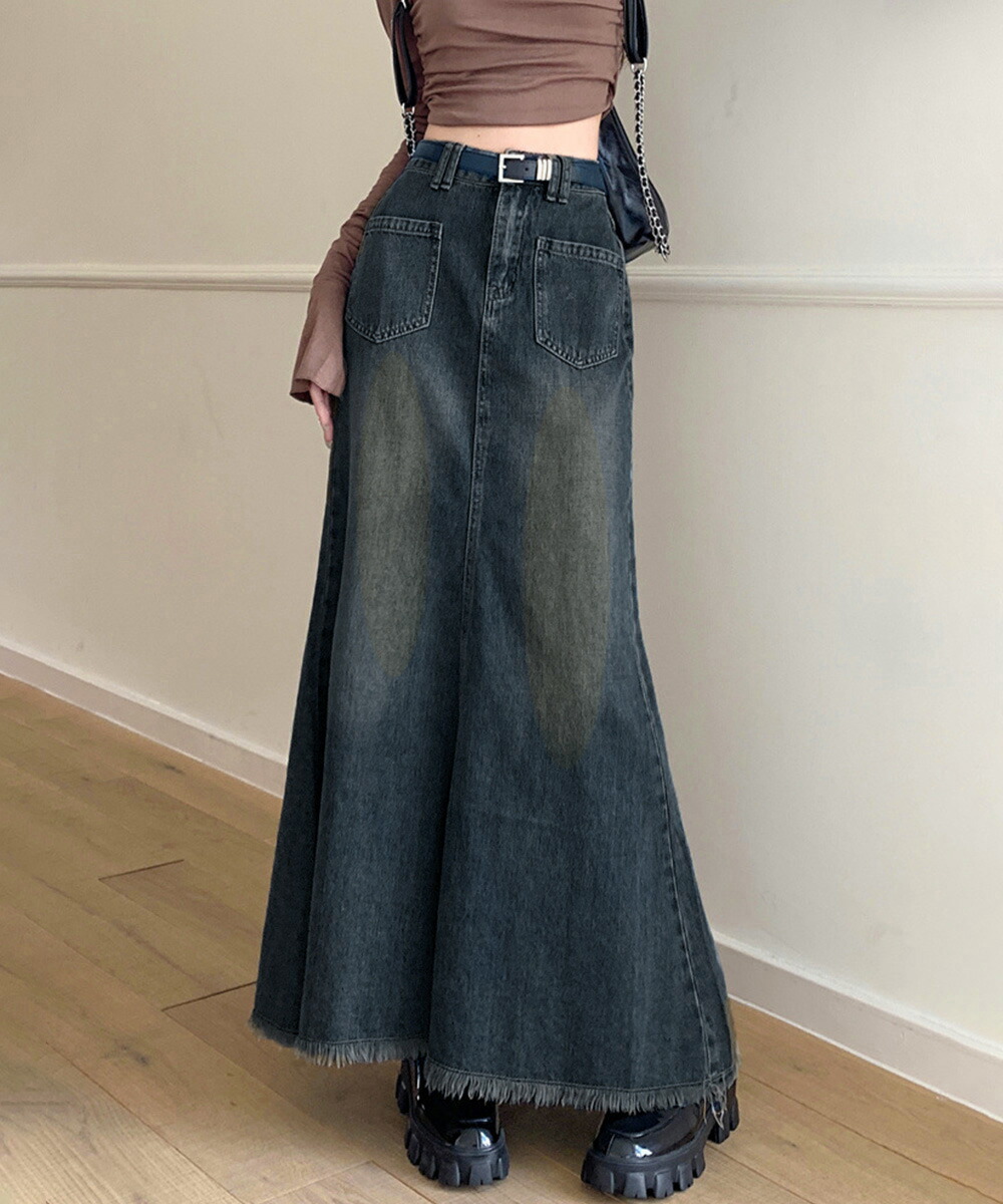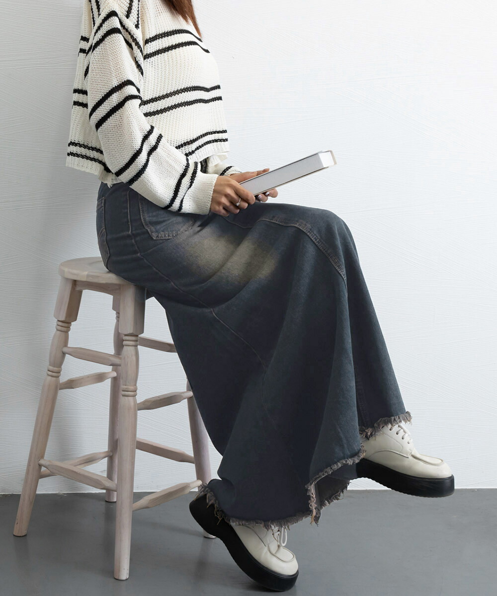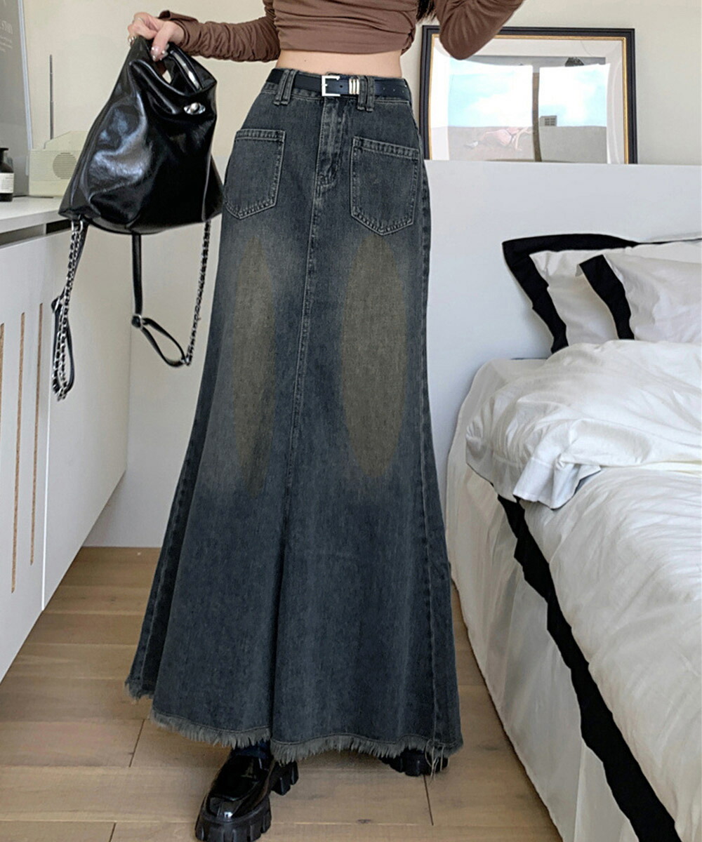 フリンジデニムスカートマーメイドスカー レディースファッション 特集 L M S XL