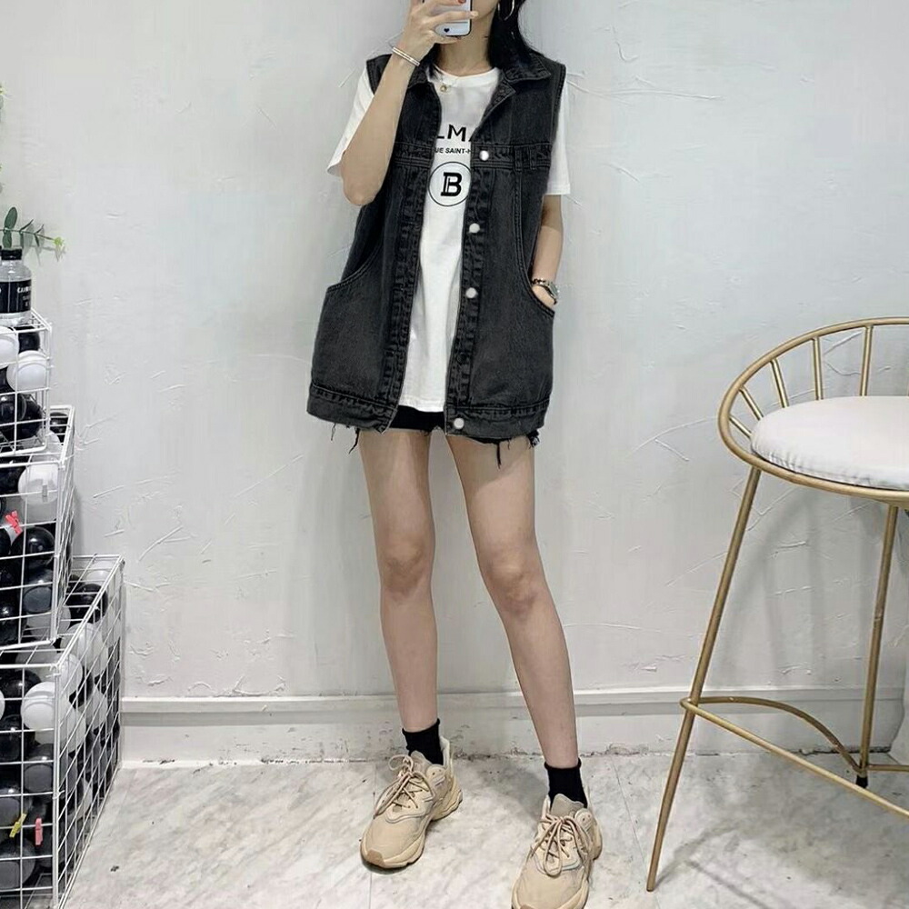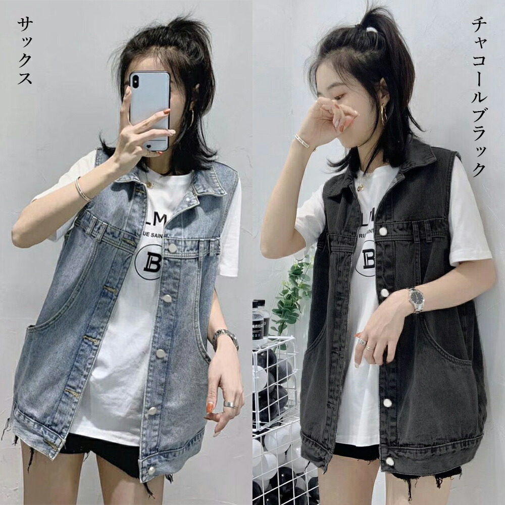 デニムベスト レディース デニムチョッ レディースファッション 豊富 サックス チャコールブラック