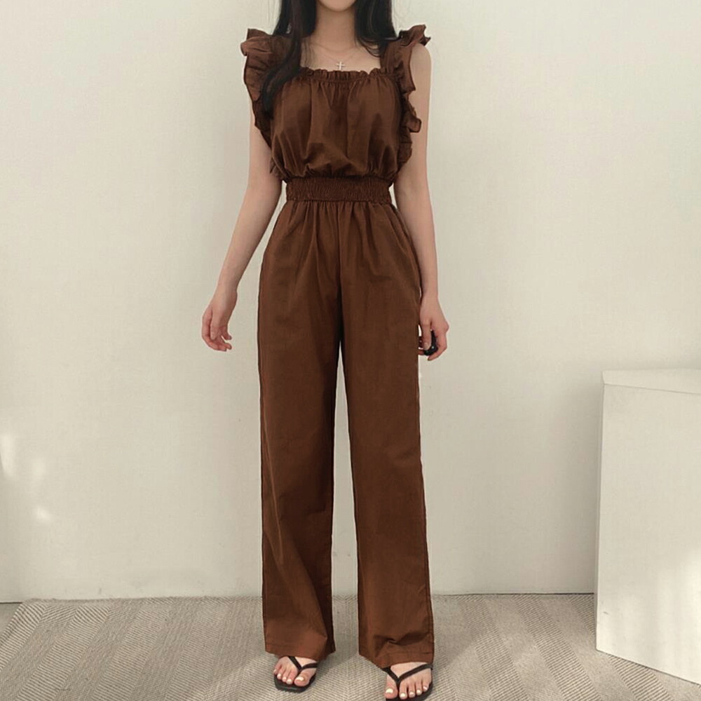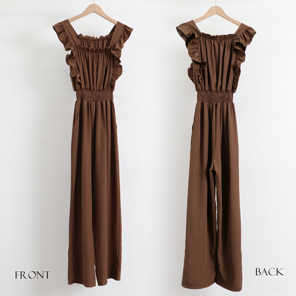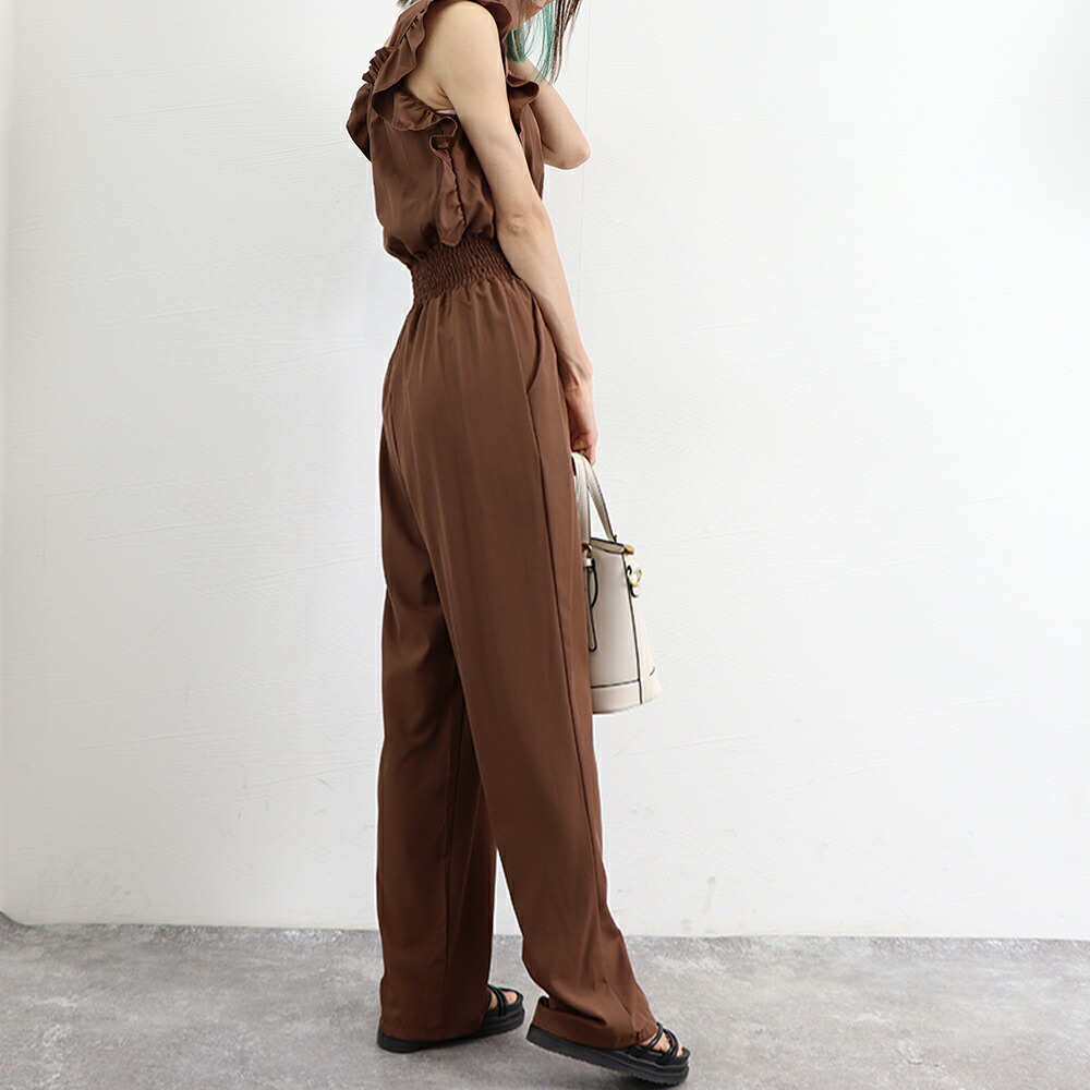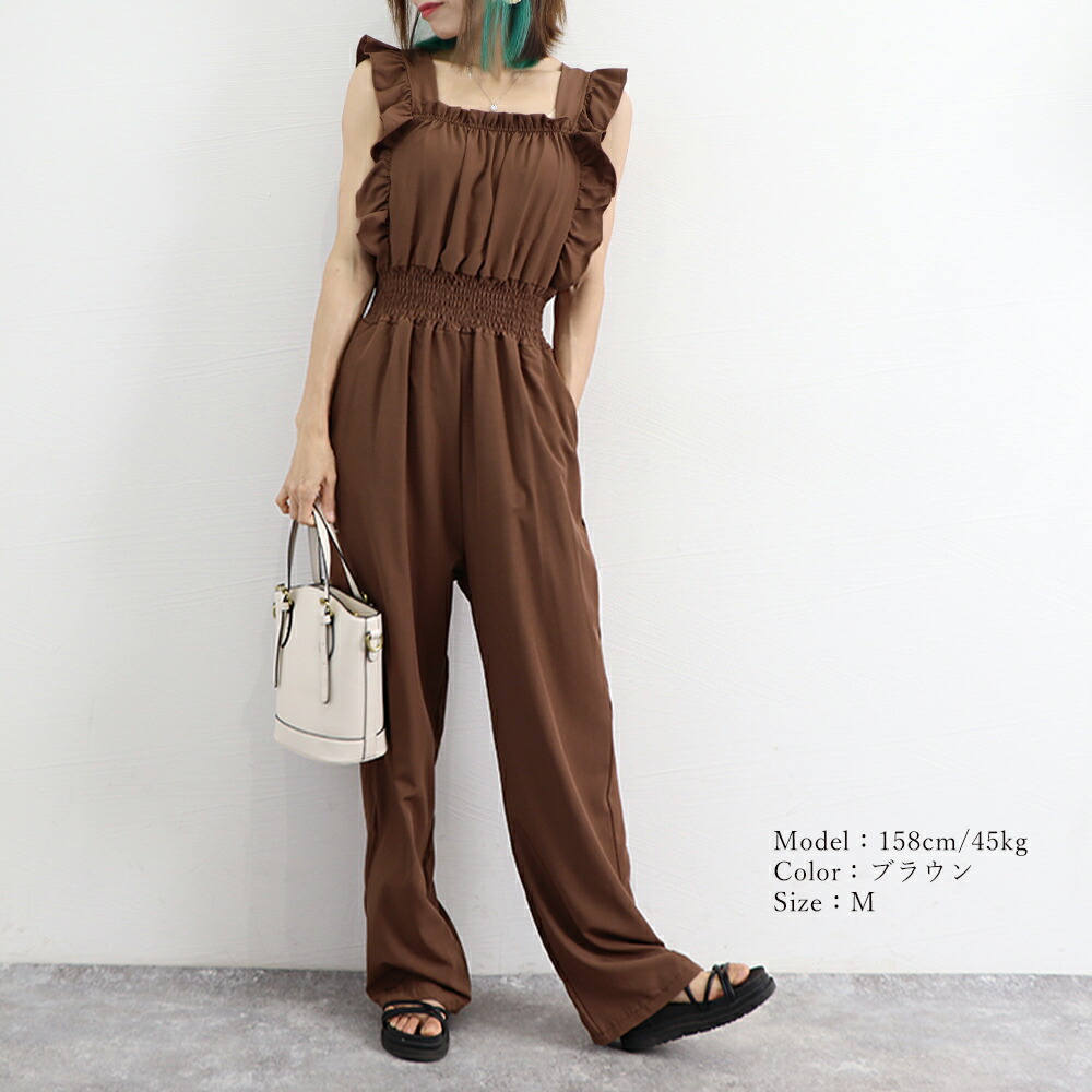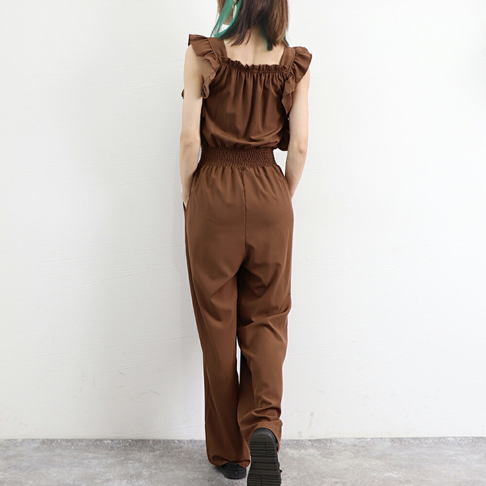 フリル袖 オールインワン パンツドレス レディースファッション 新作 アイボリー ブラウン ブラック L M