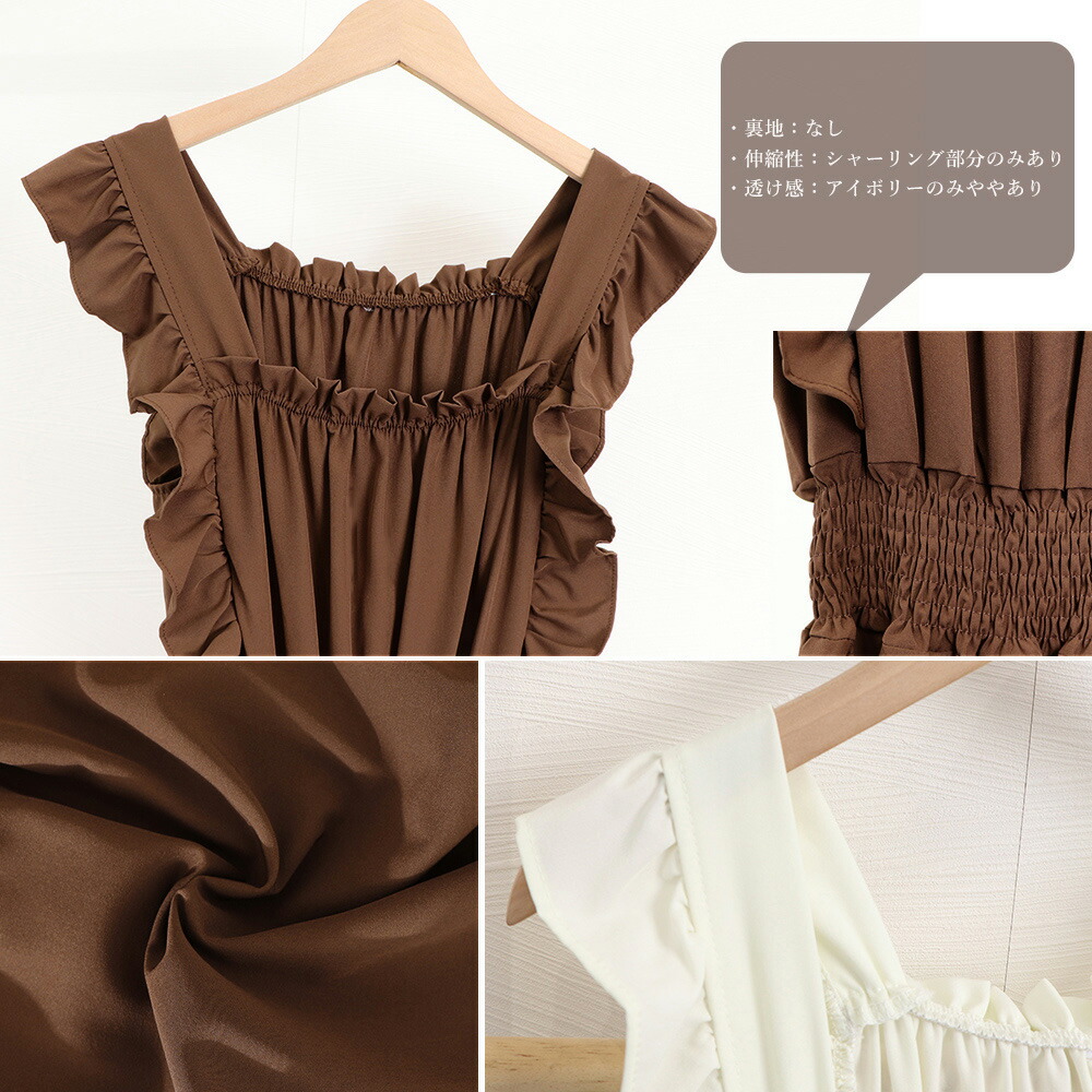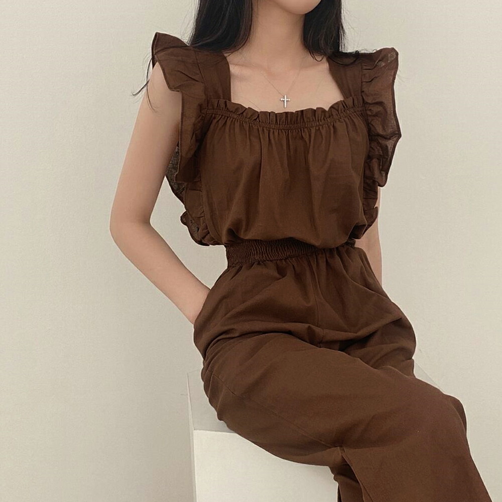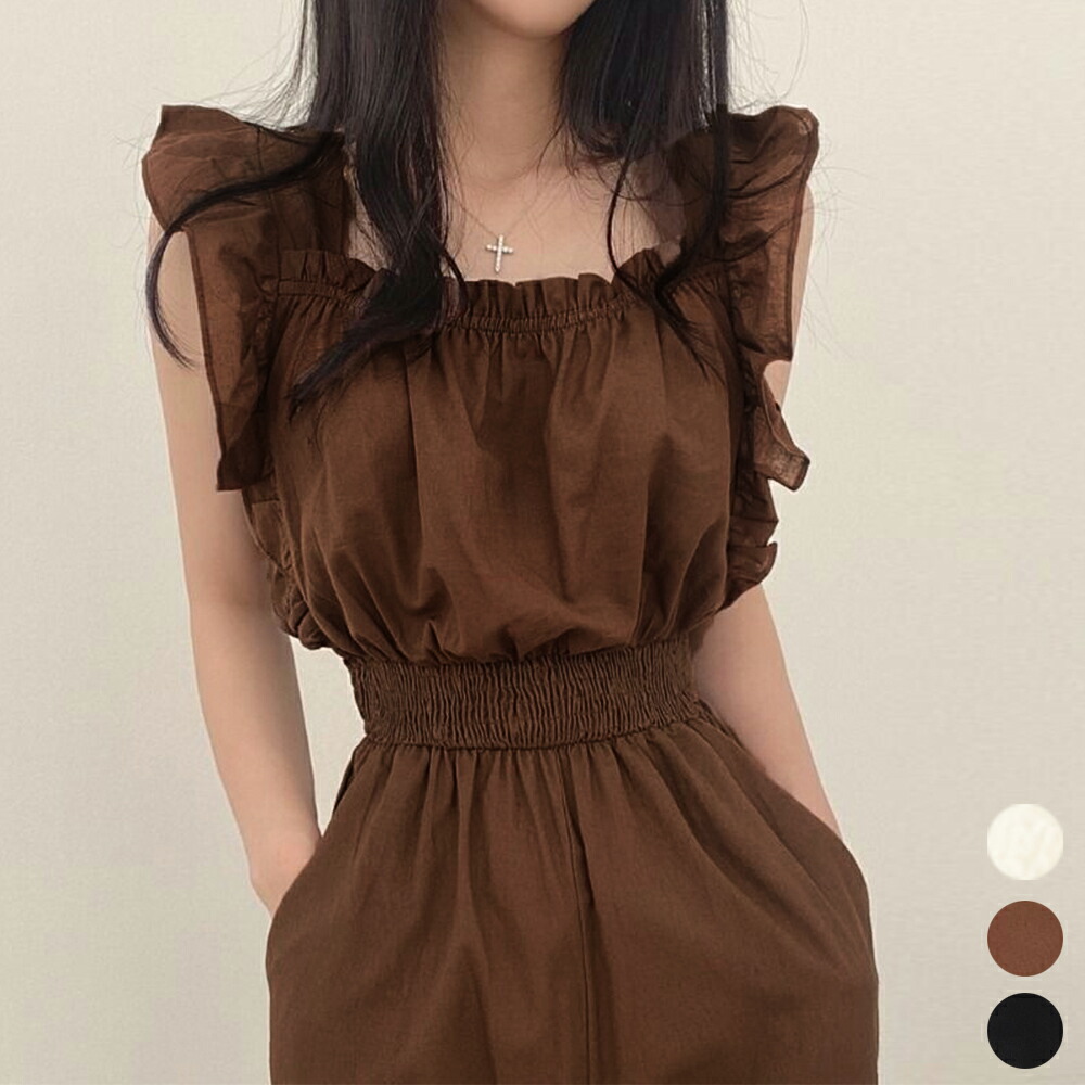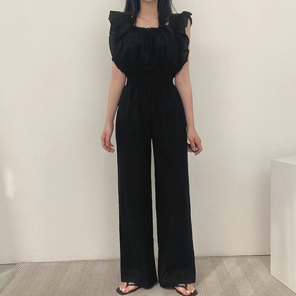 フリル袖 オールインワン パンツドレス レディースファッション 新作 アイボリー ブラウン ブラック L M