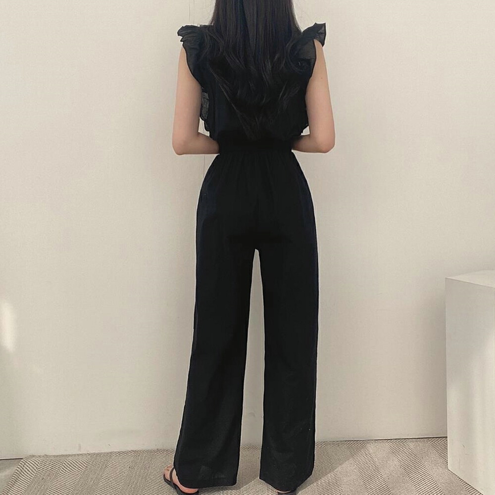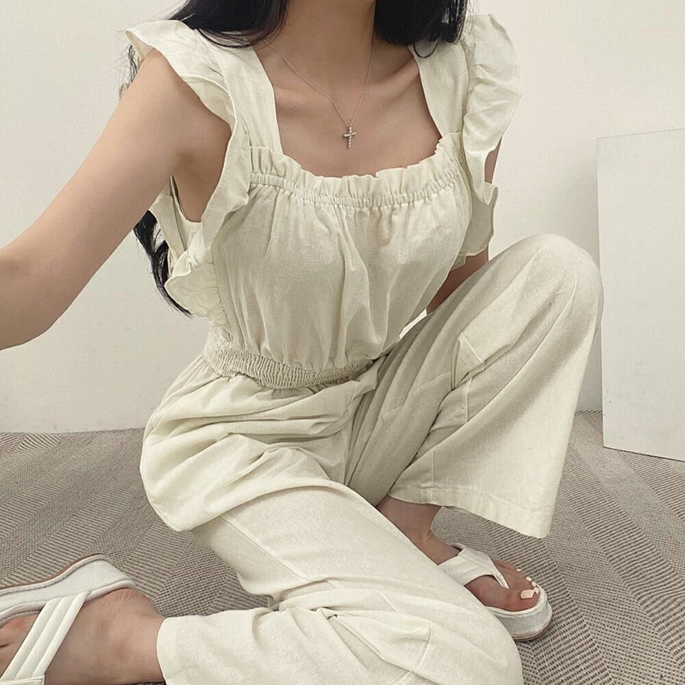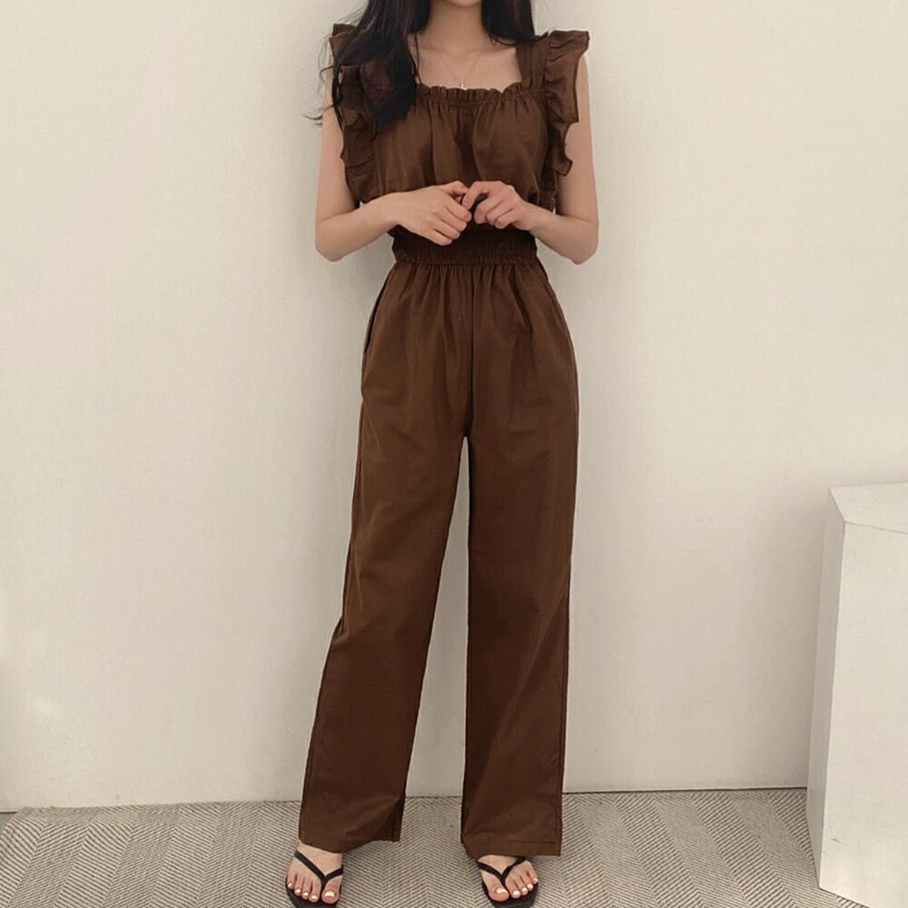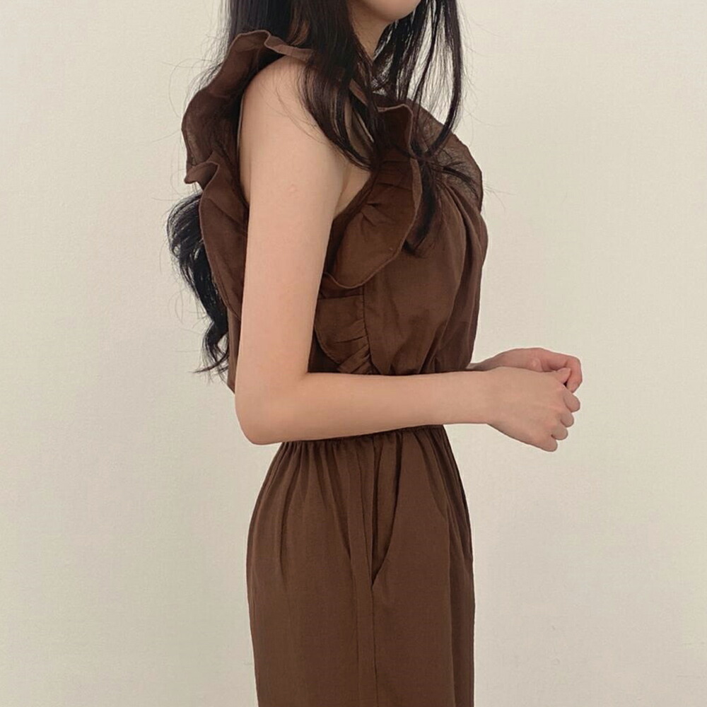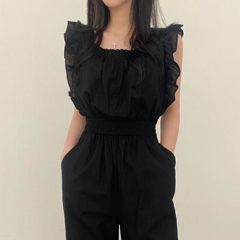 フリル袖 オールインワン パンツドレス レディースファッション 新作 アイボリー ブラウン ブラック L M