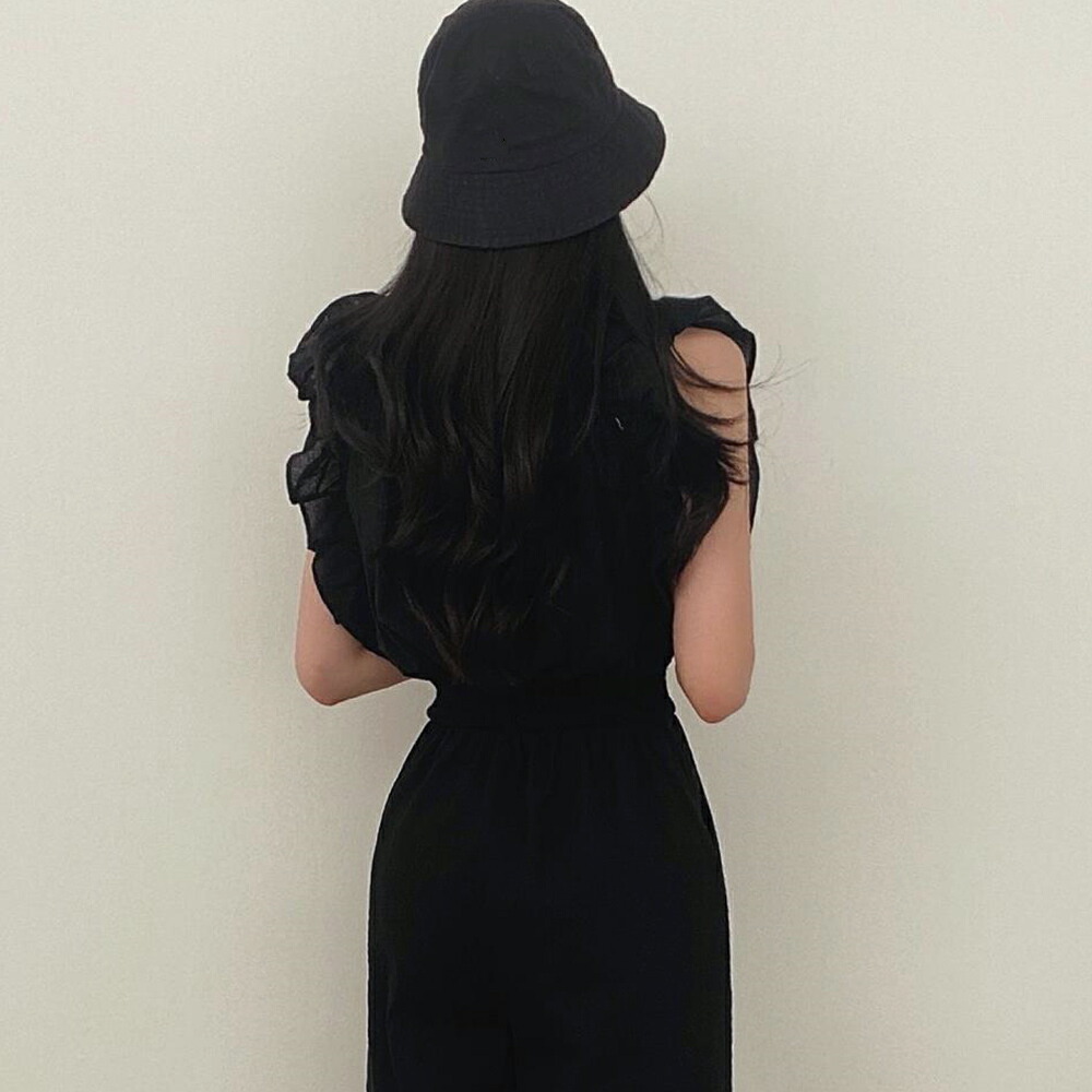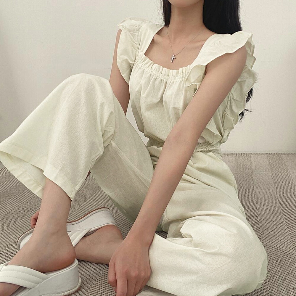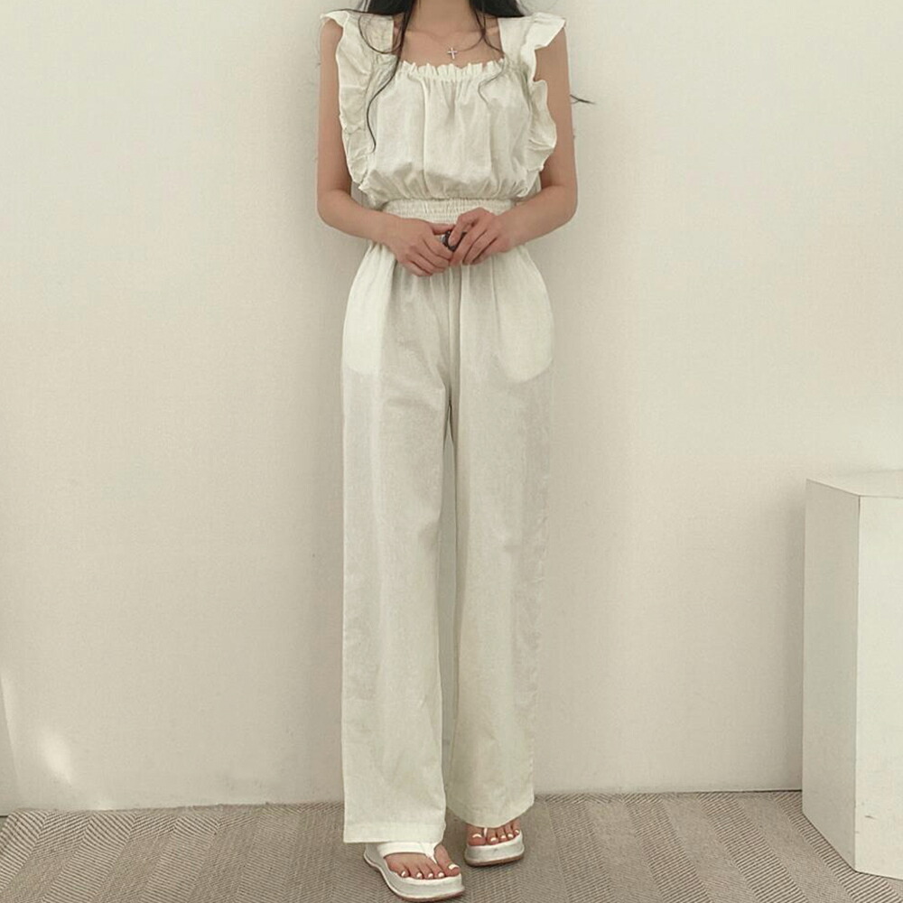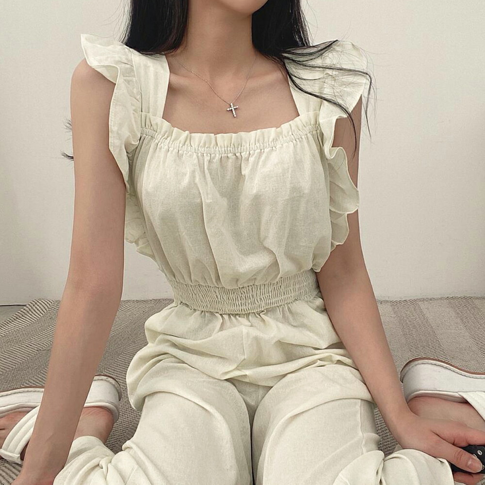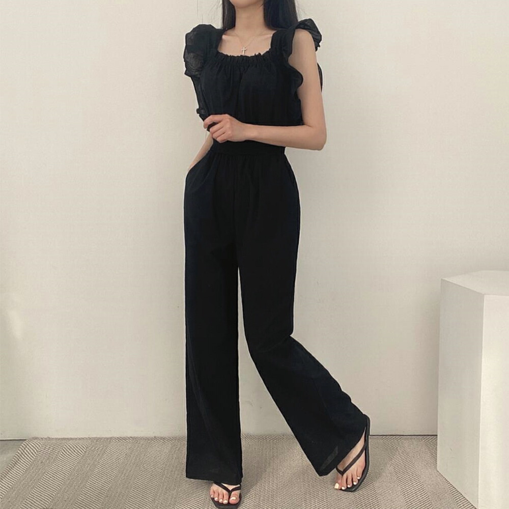 フリル袖 オールインワン パンツドレス レディースファッション 新作 アイボリー ブラウン ブラック L M