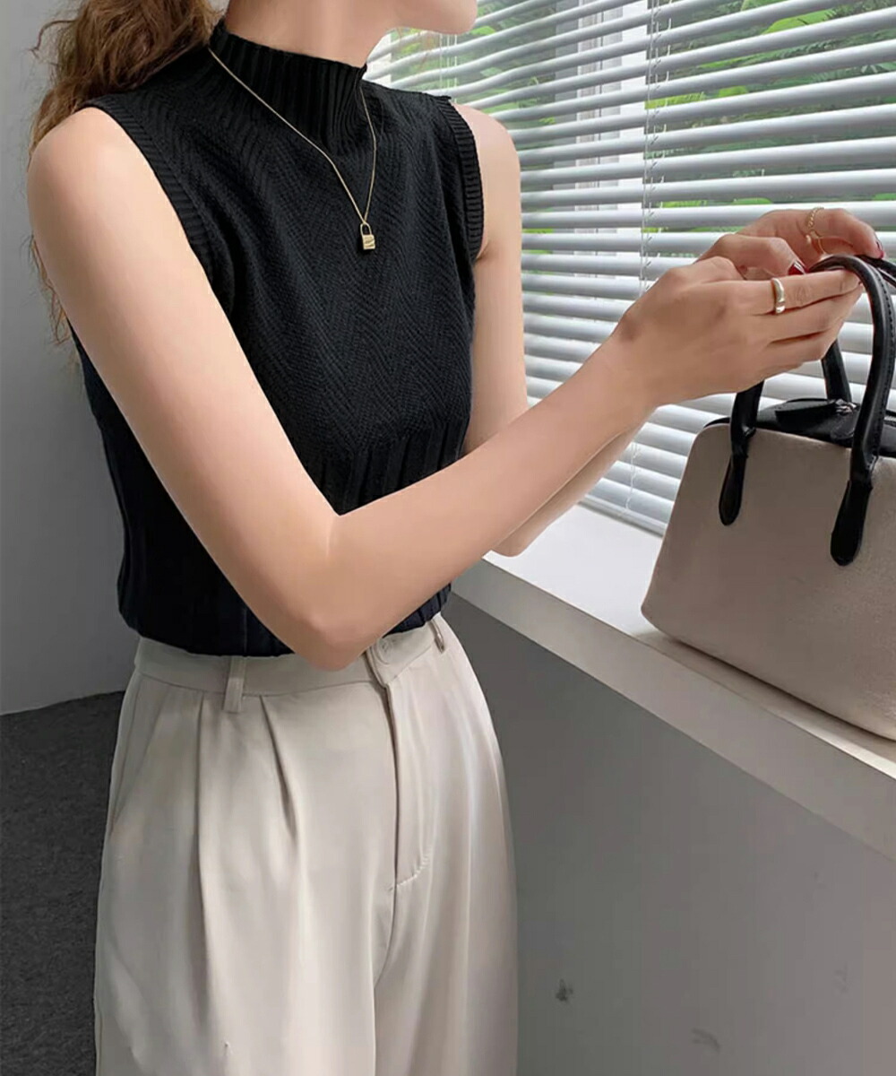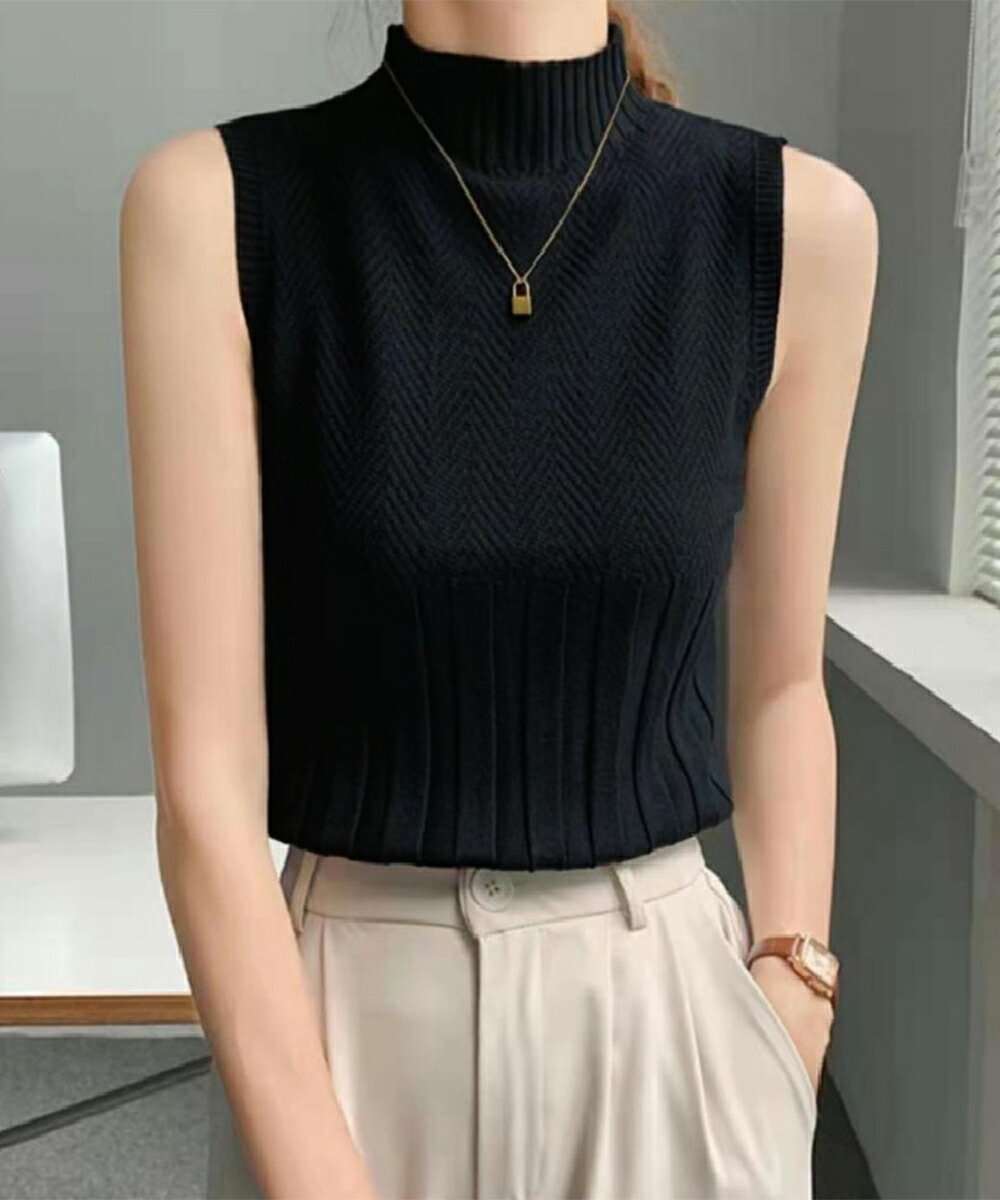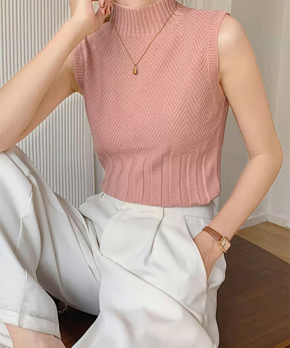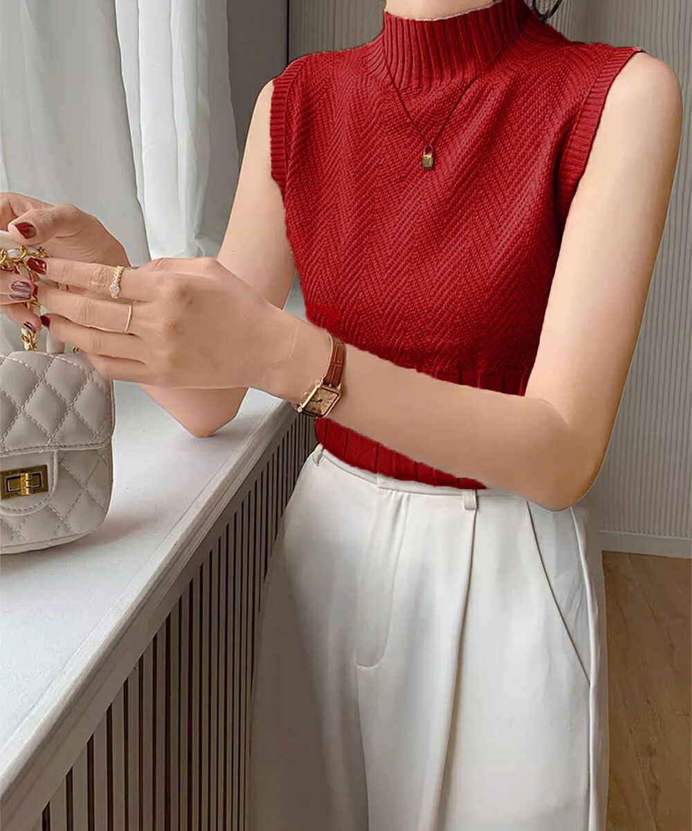 ノースリーブニット トップス ハイネッ トップス ニット セーター ニットキャミソール 特集 ダークグレー ピンク ブラック ホワイト ライトベージュ ワインレッド