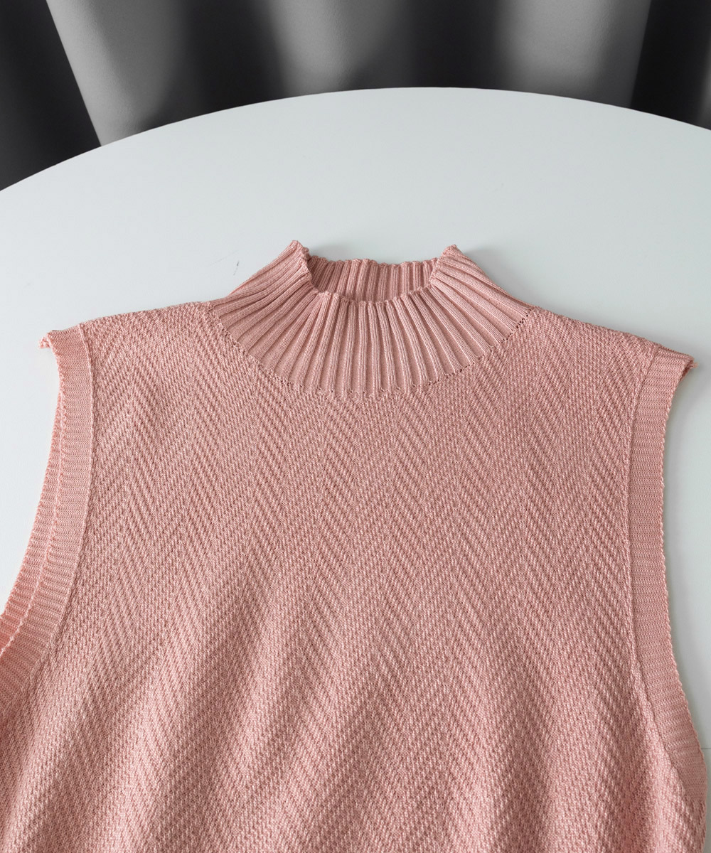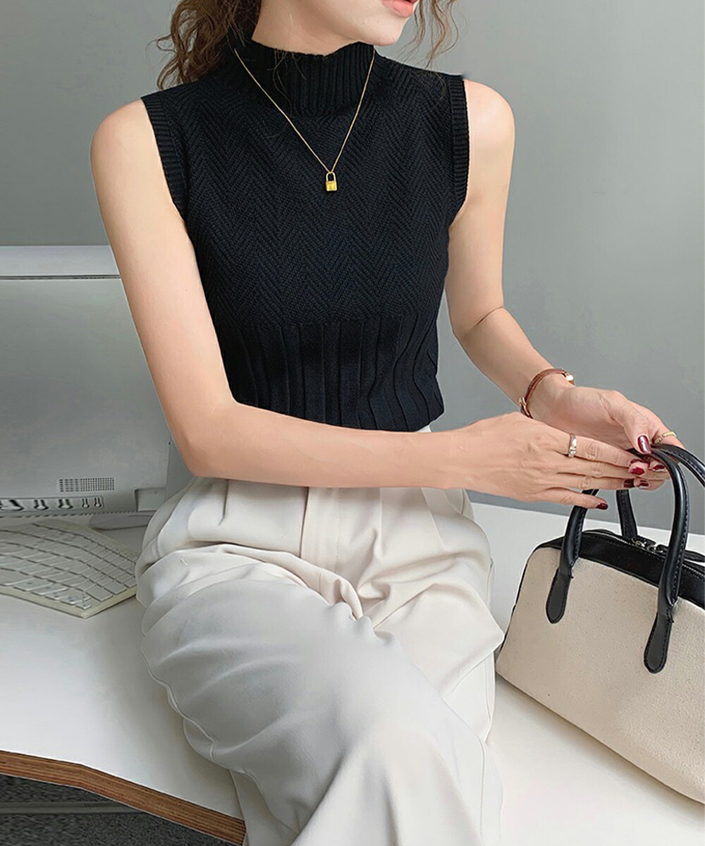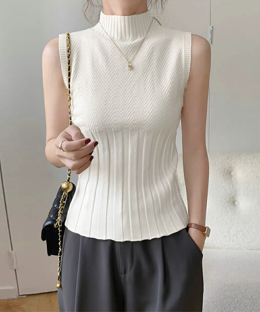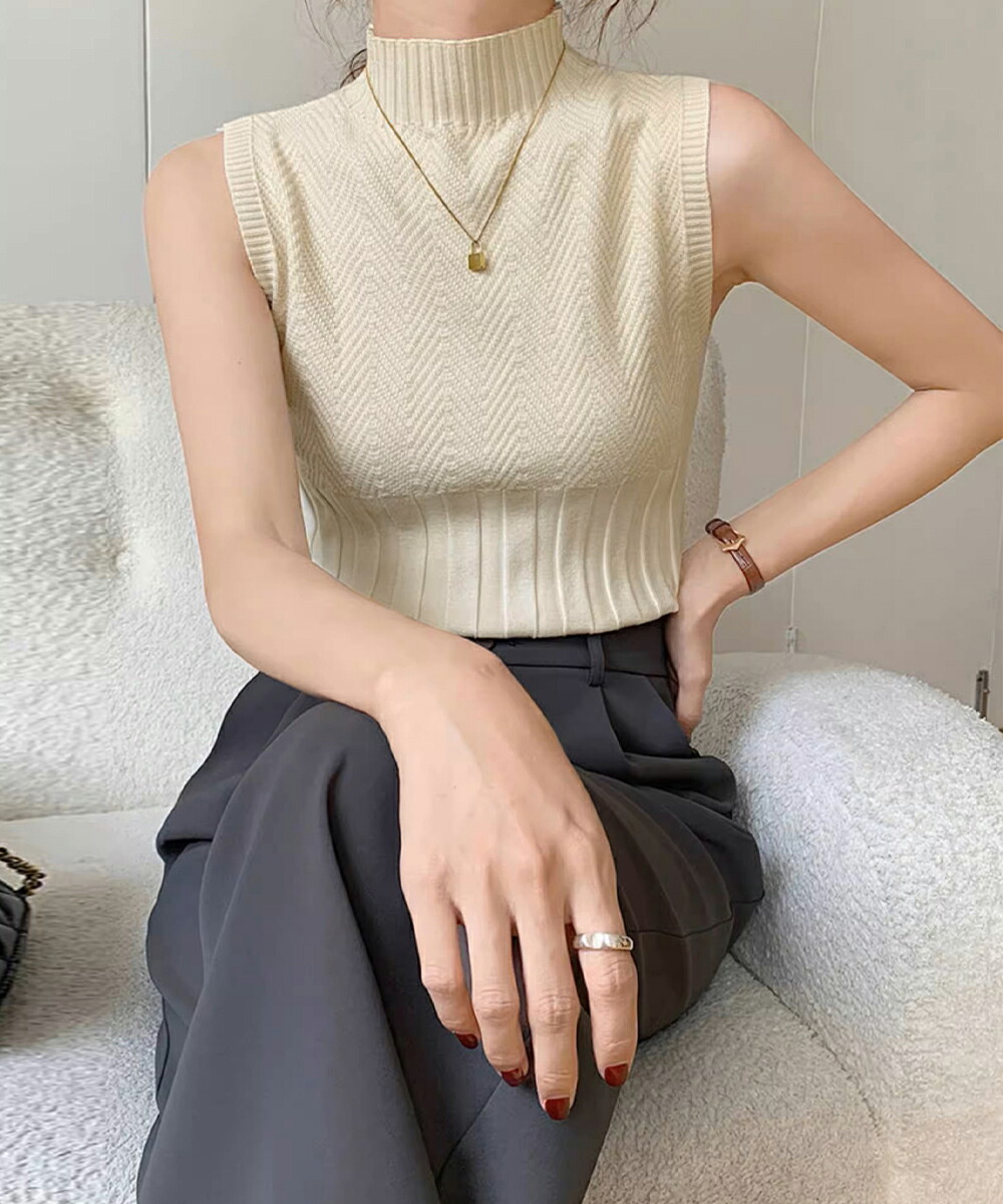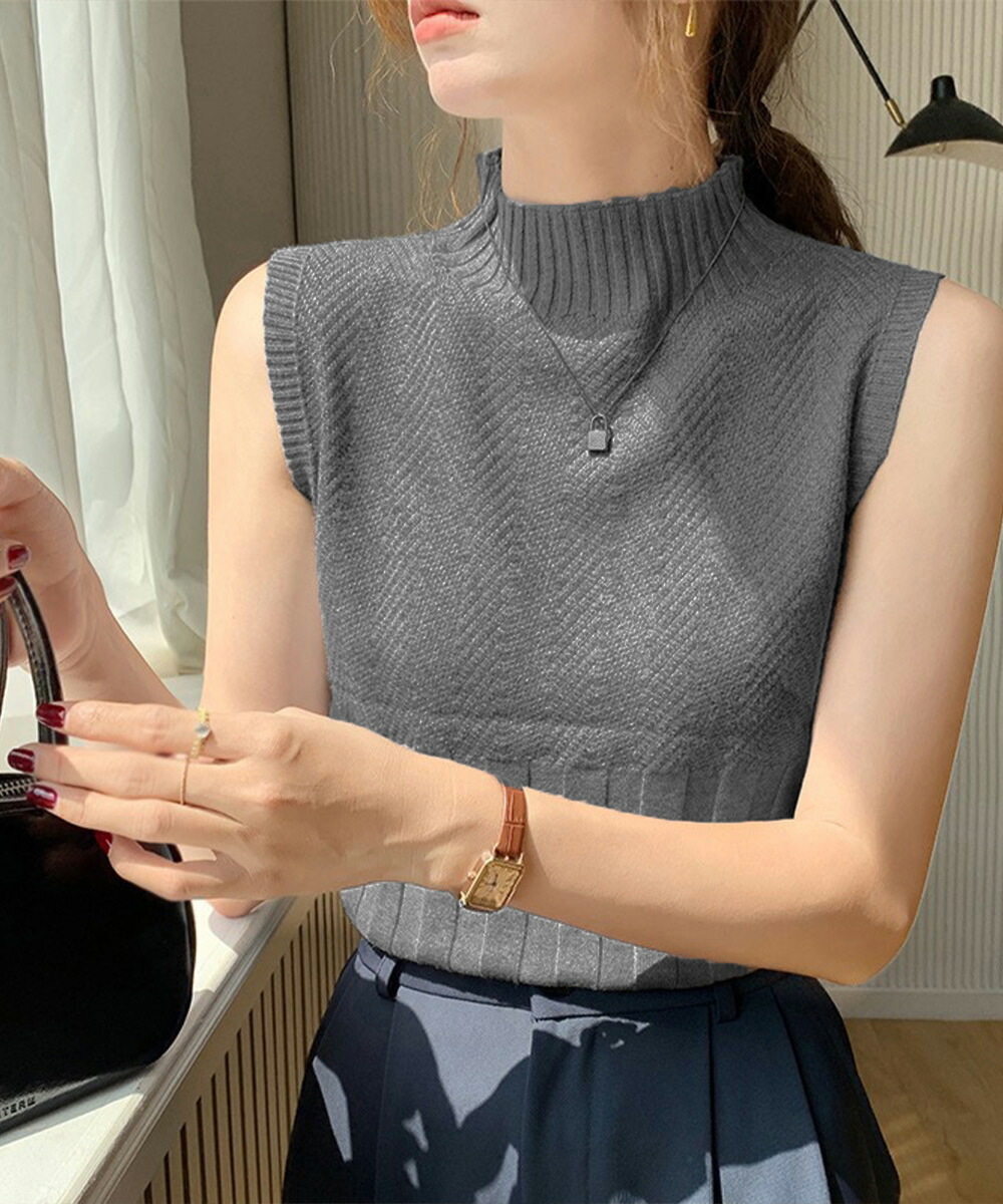 ノースリーブニット トップス ハイネッ トップス ニット セーター ニットキャミソール 特集 ダークグレー ピンク ブラック ホワイト ライトベージュ ワインレッド