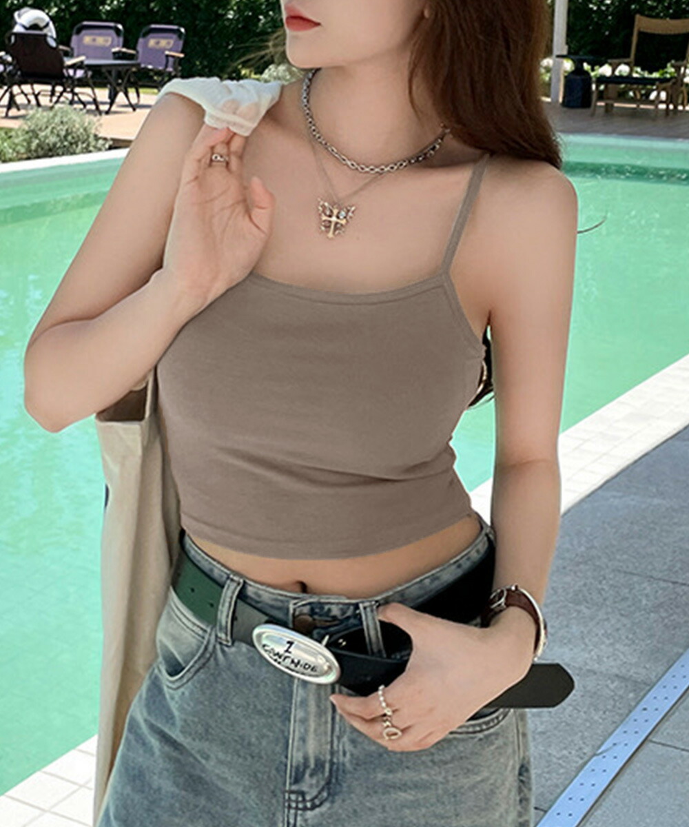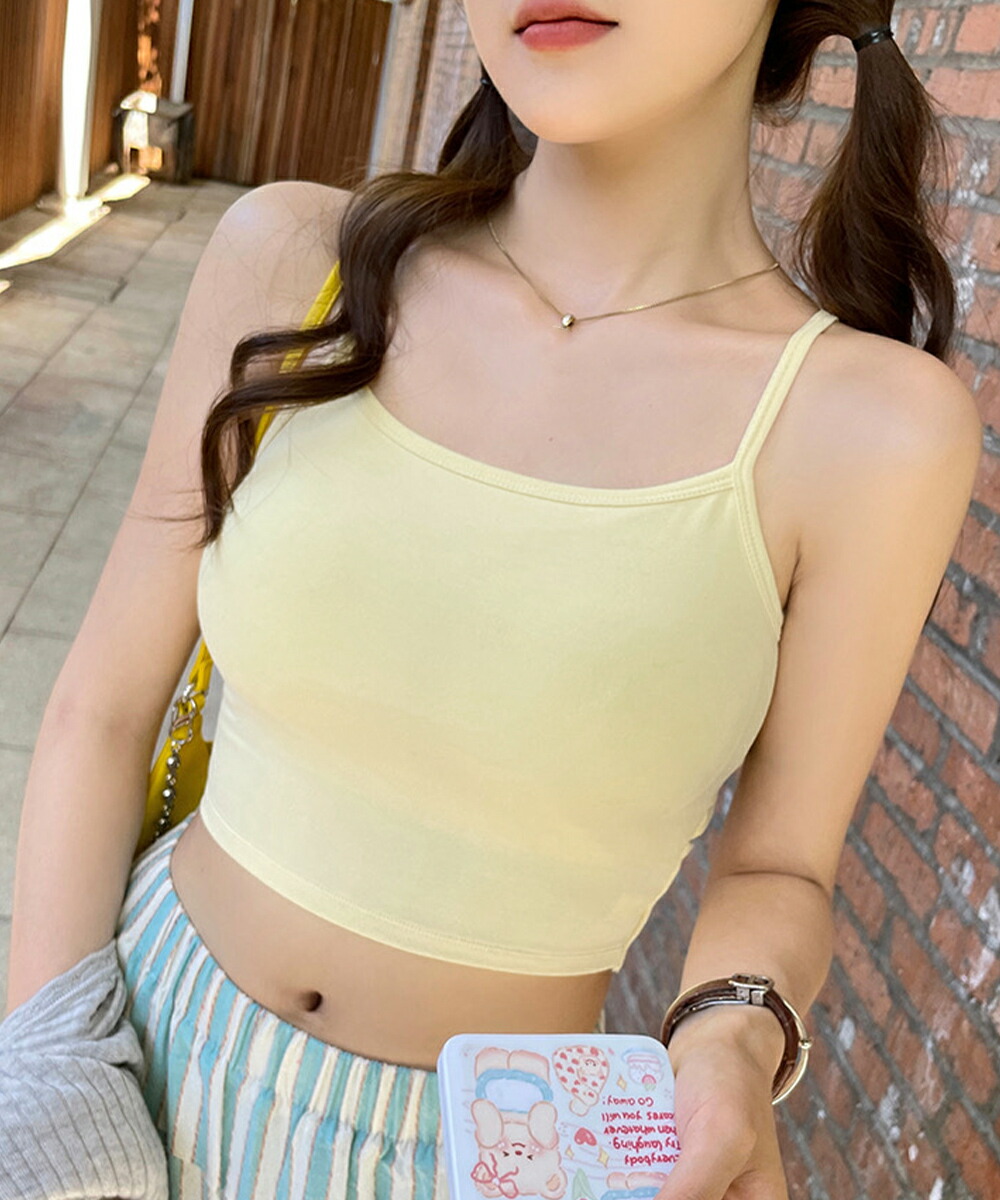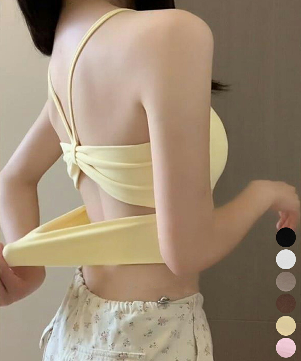 カップ付きキャミソール背中あきブラトッ トップス キャミソール 人気 イエロー ピンク ブラウン ブラック ホワイト モカ