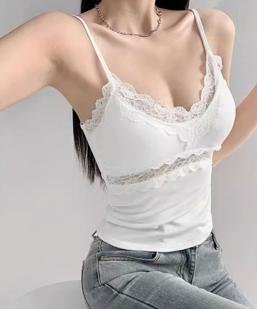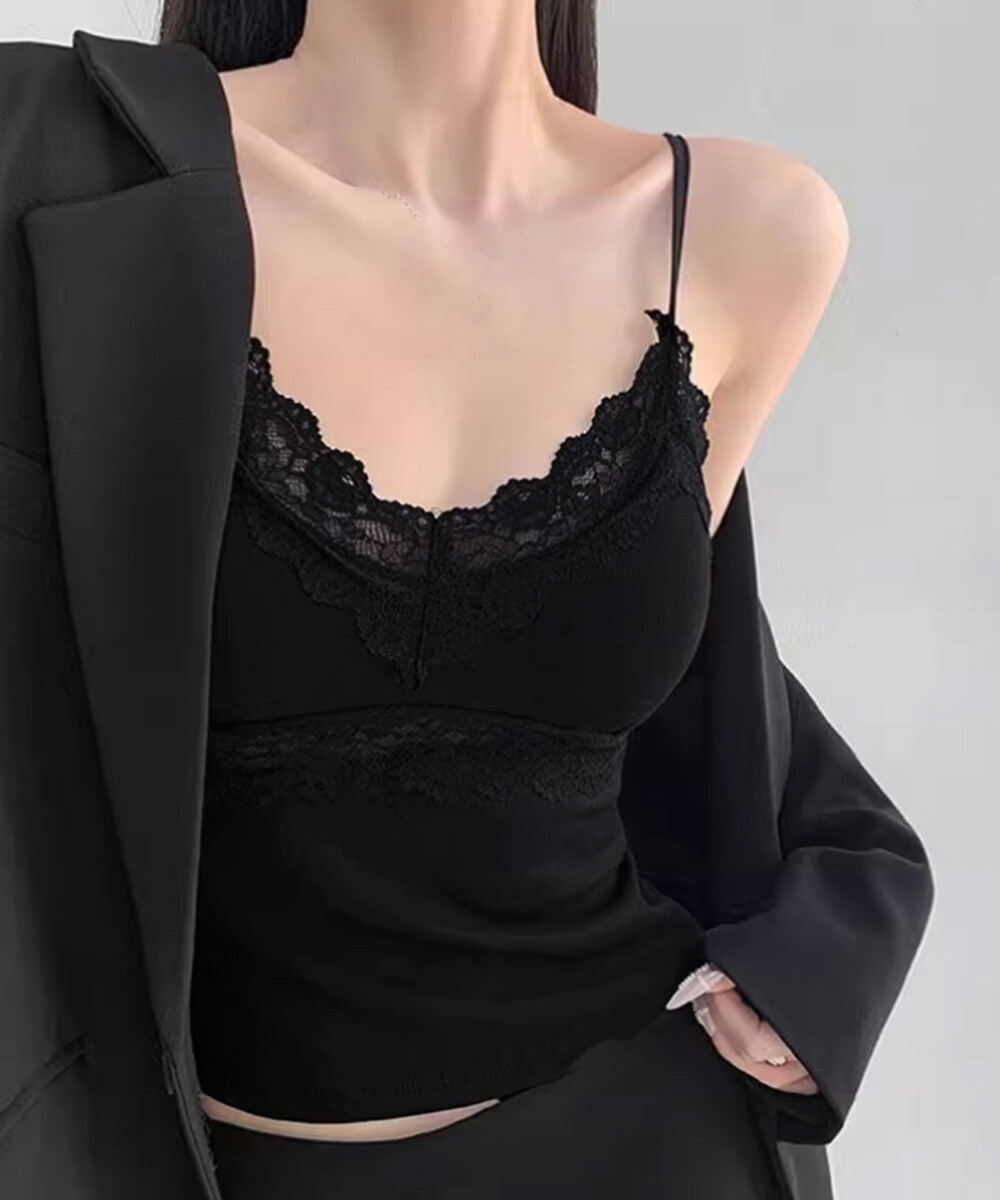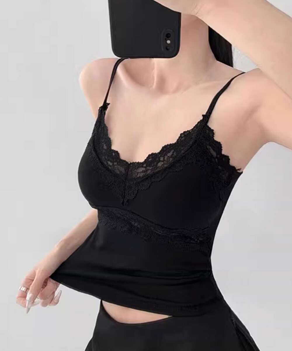 レースキャミソール カップ付きブラトッ レディース インナー 下着 インナーキャミソール 豊富 ブラック ホワイト