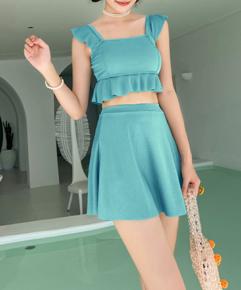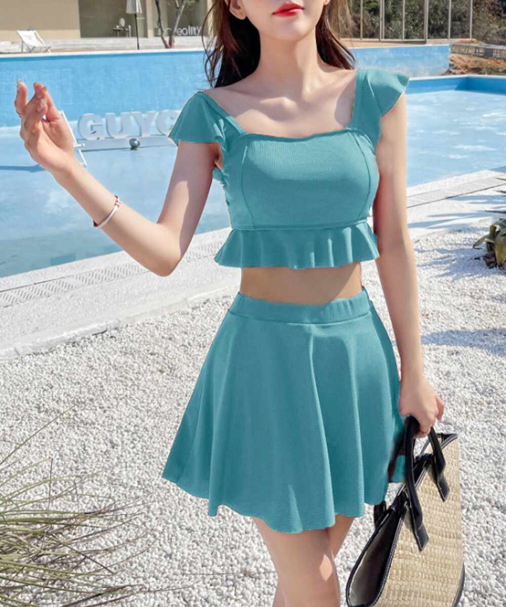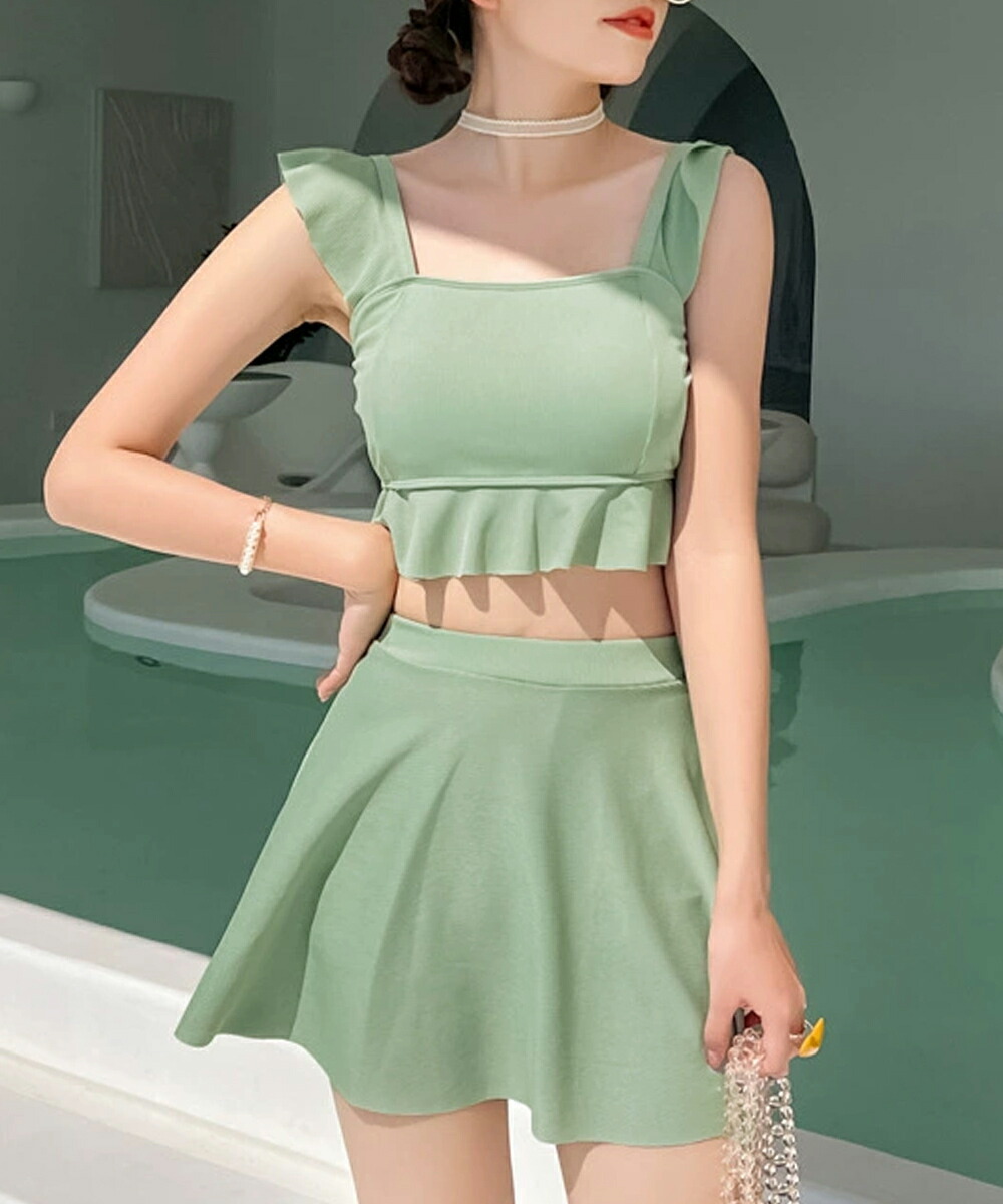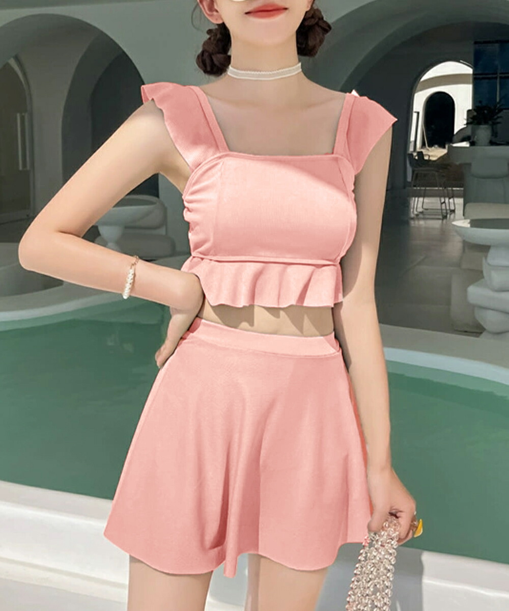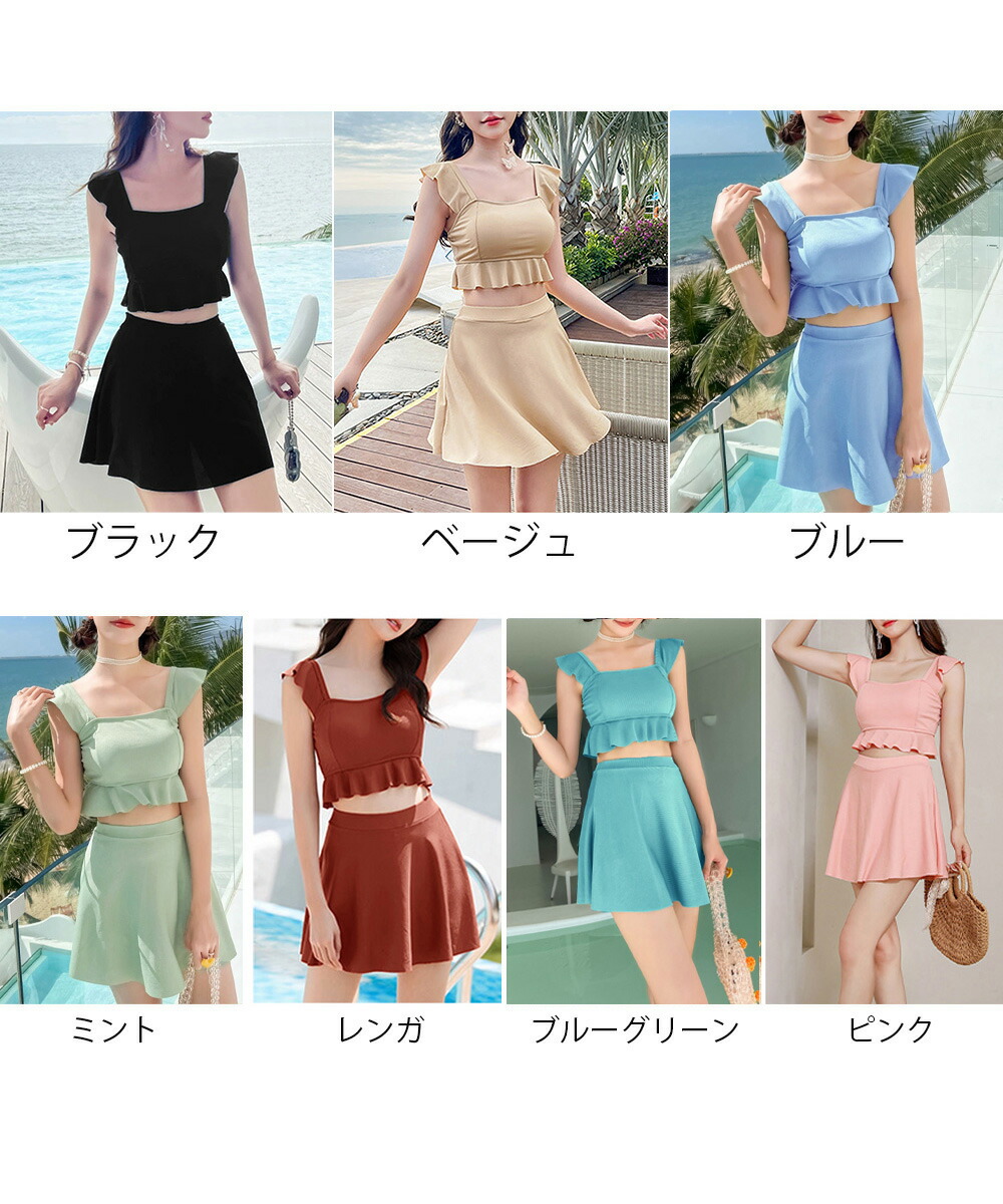 セットアップ水着 フリルビキニ盛れる水 水着 新作 ピンク ブラック ブルー ブルーグリーン ベージュ ミント レンガ