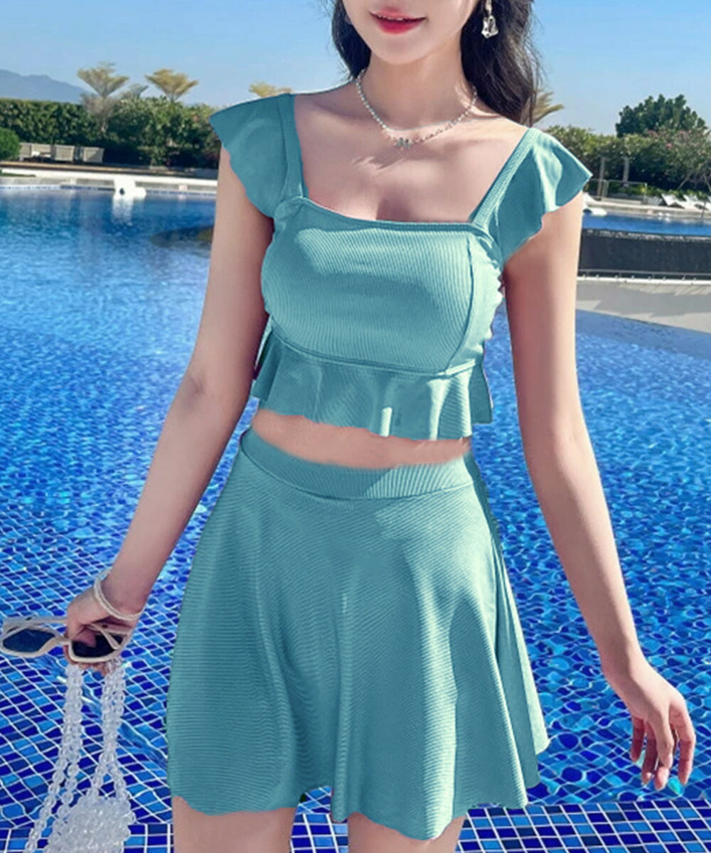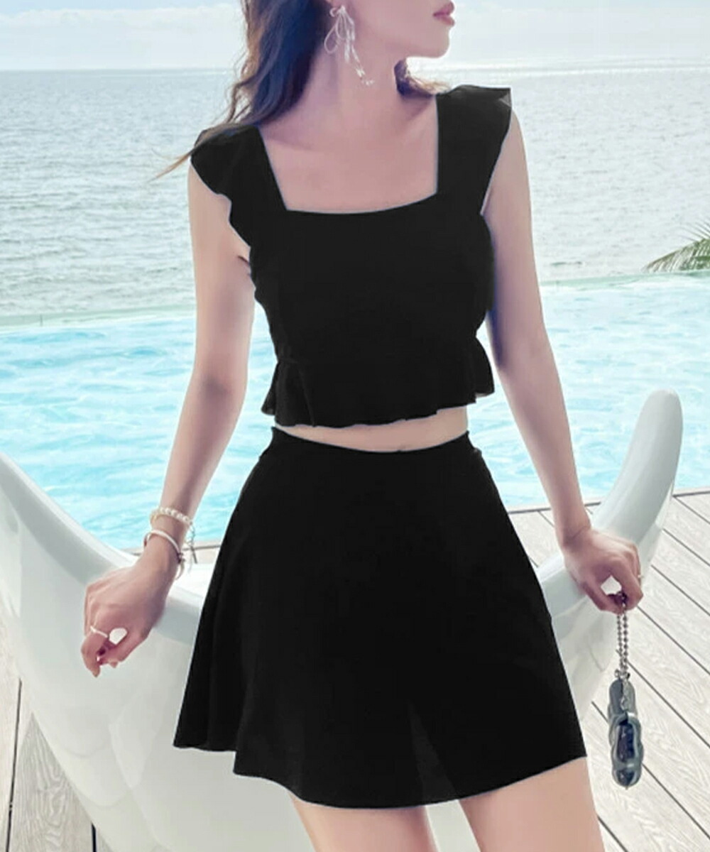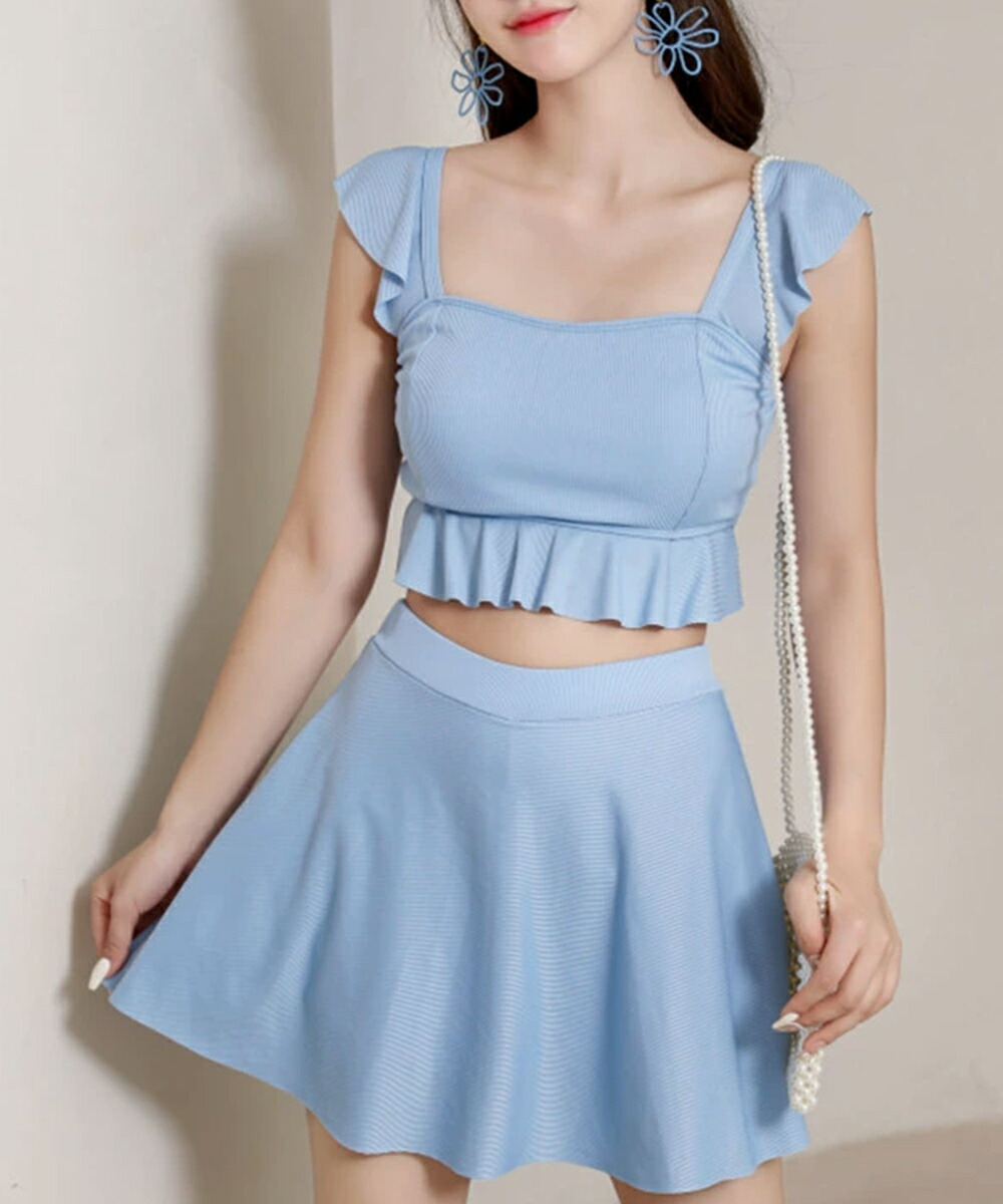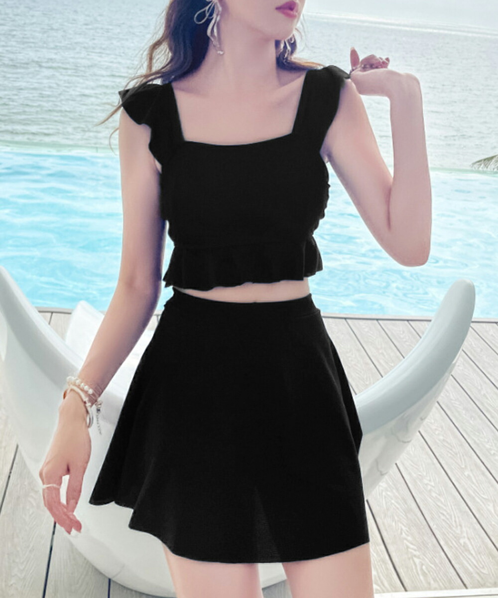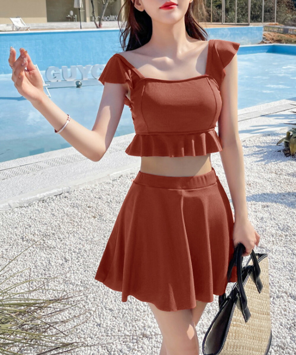 セットアップ水着 フリルビキニ盛れる水 水着 新作 ピンク ブラック ブルー ブルーグリーン ベージュ ミント レンガ