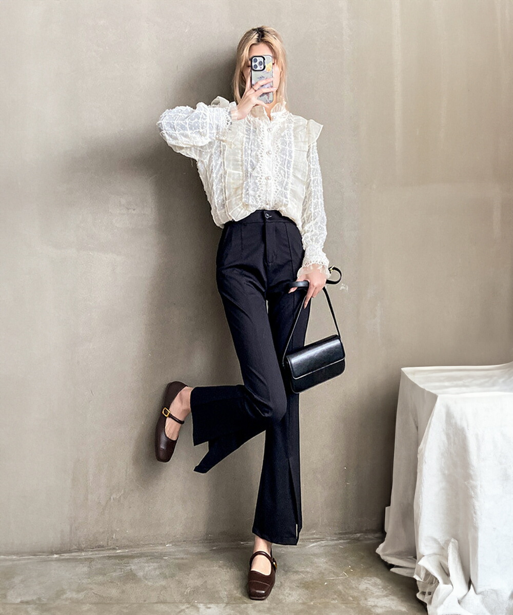シアースリーブ ドッキングシャツ ボウタイシャツブラウス