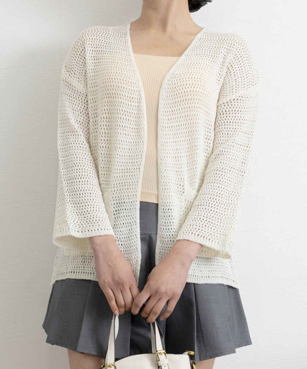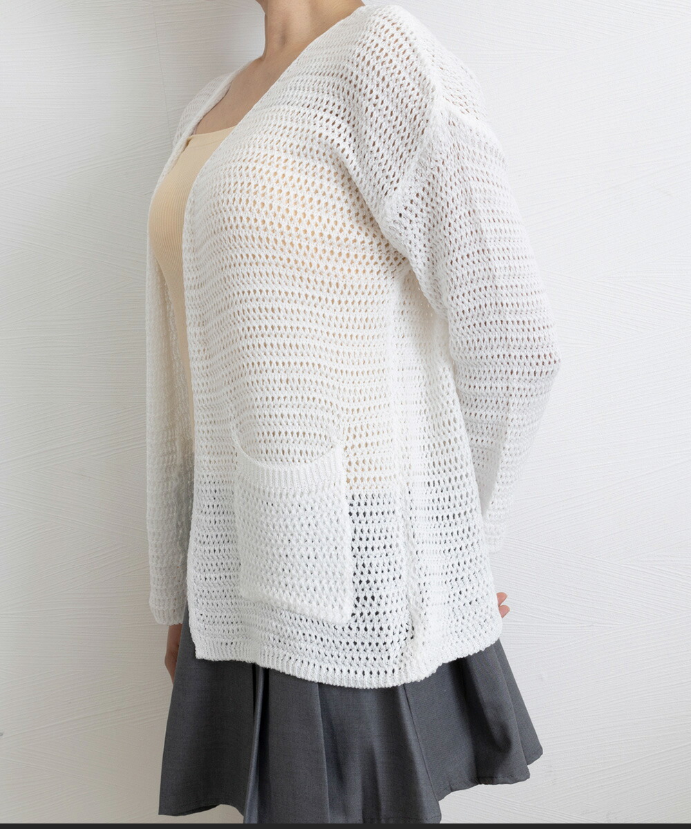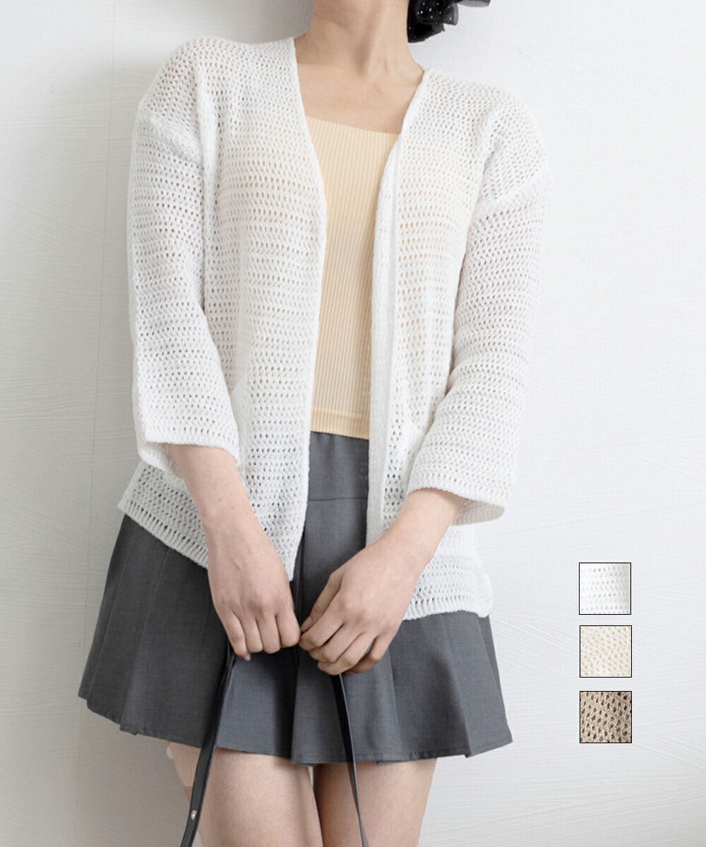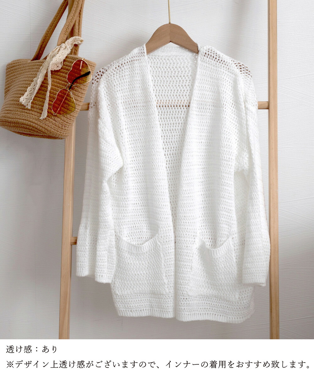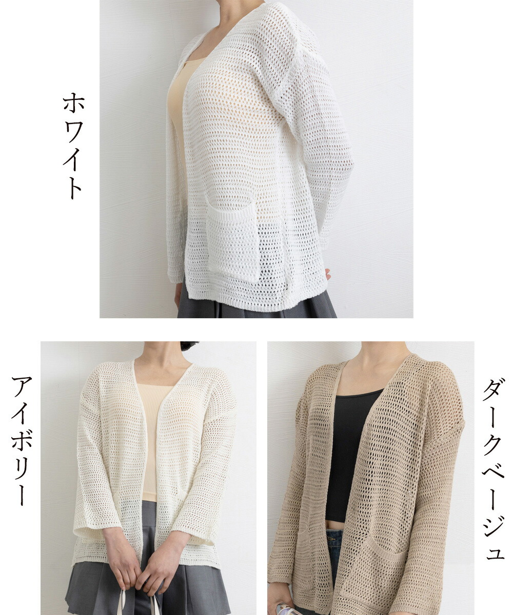 カーディガン メッシュトップス 薄手羽 レディースファッション 新作 アイボリー ダークベージュ ホワイト