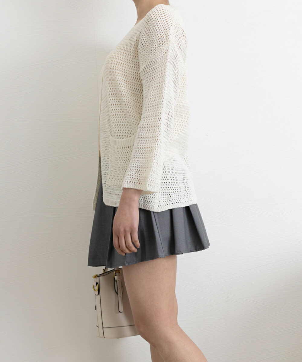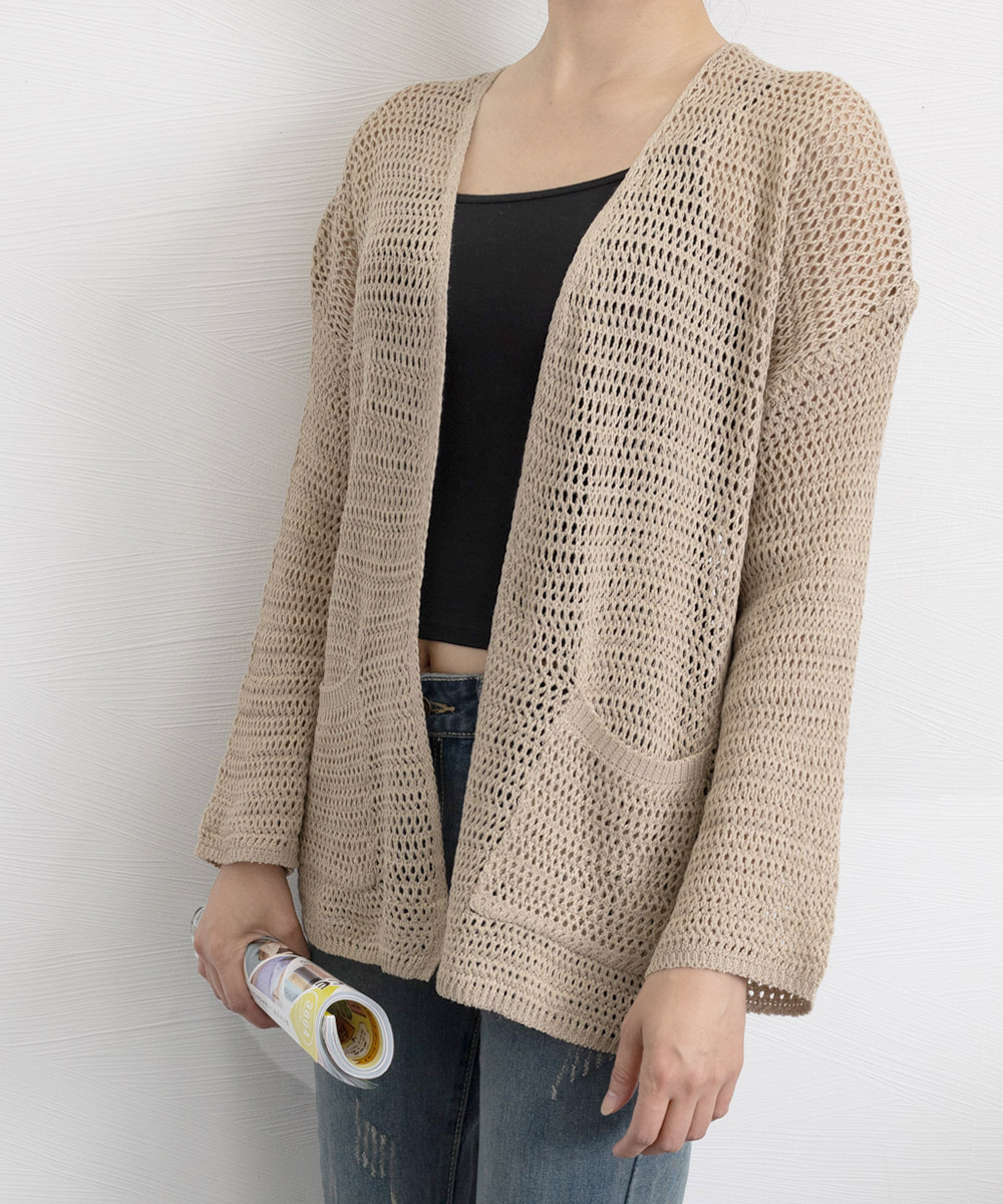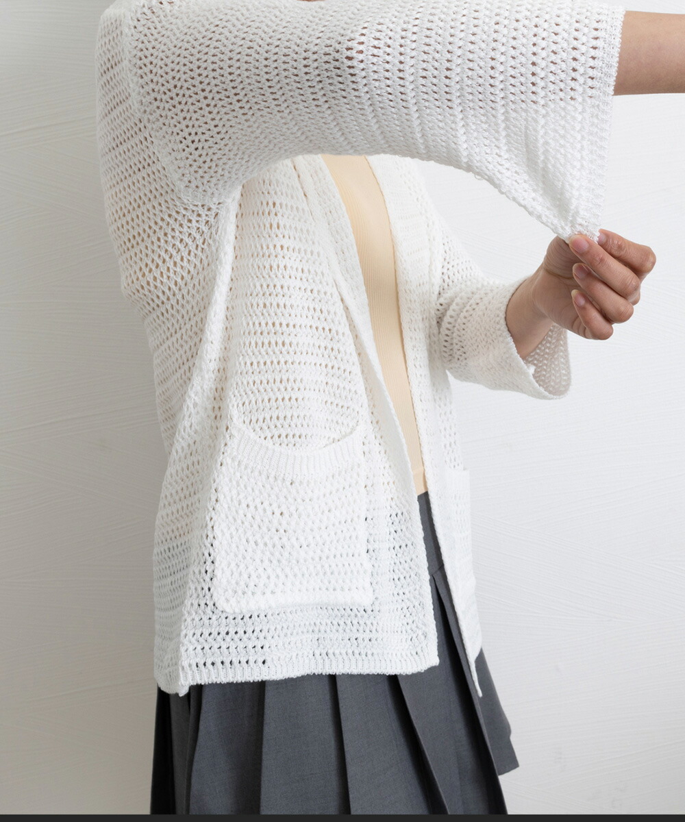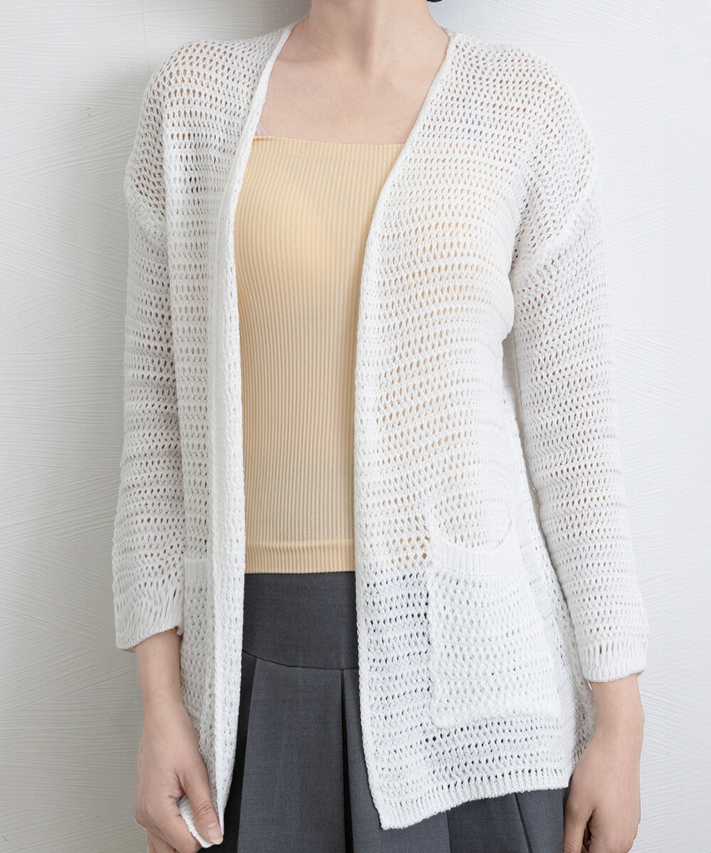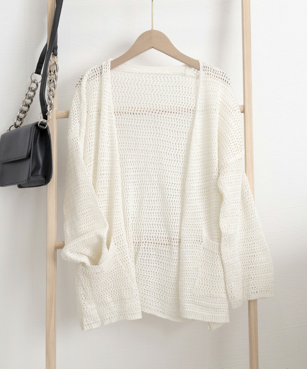 カーディガン メッシュトップス 薄手羽 レディースファッション 新作 アイボリー ダークベージュ ホワイト