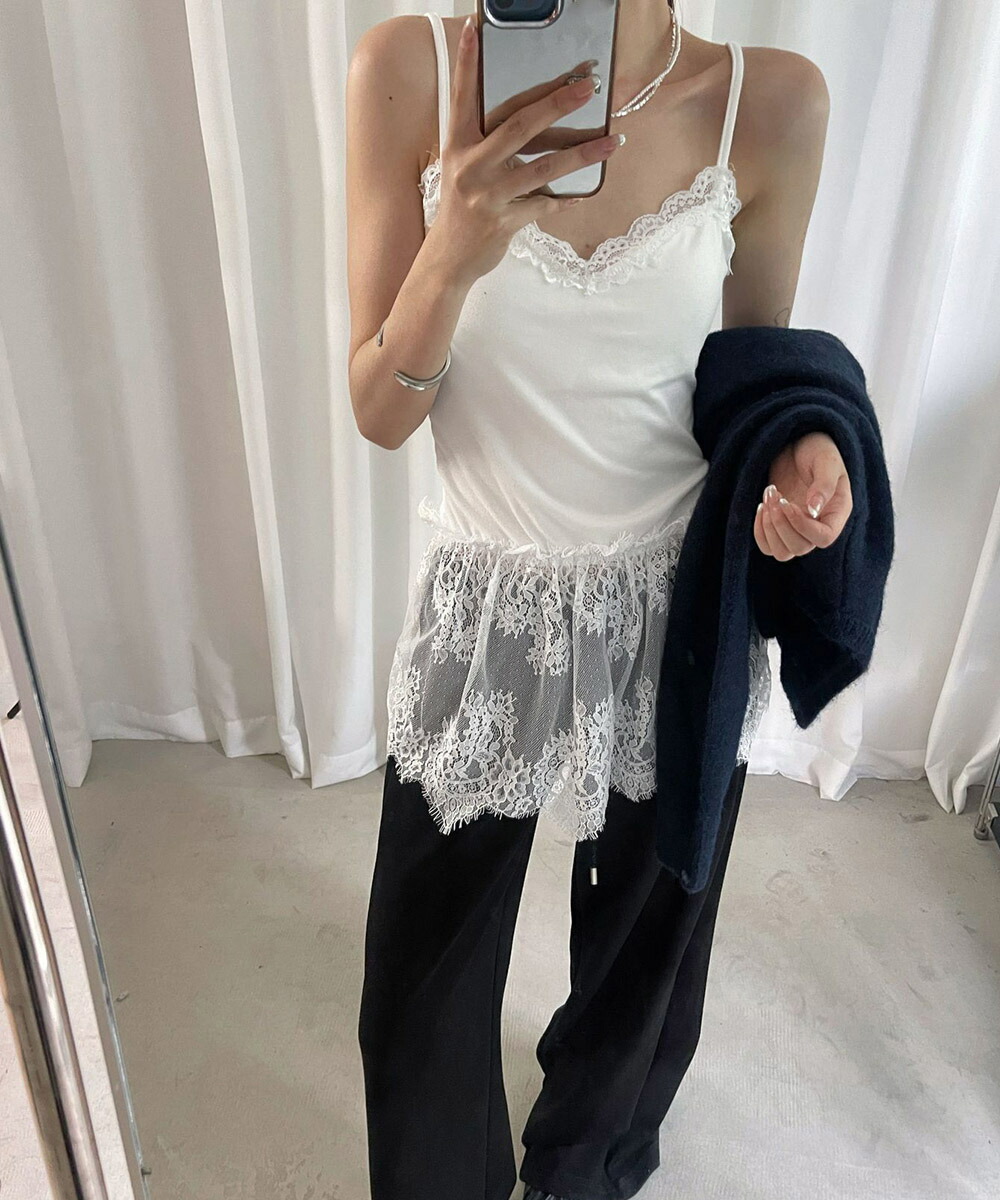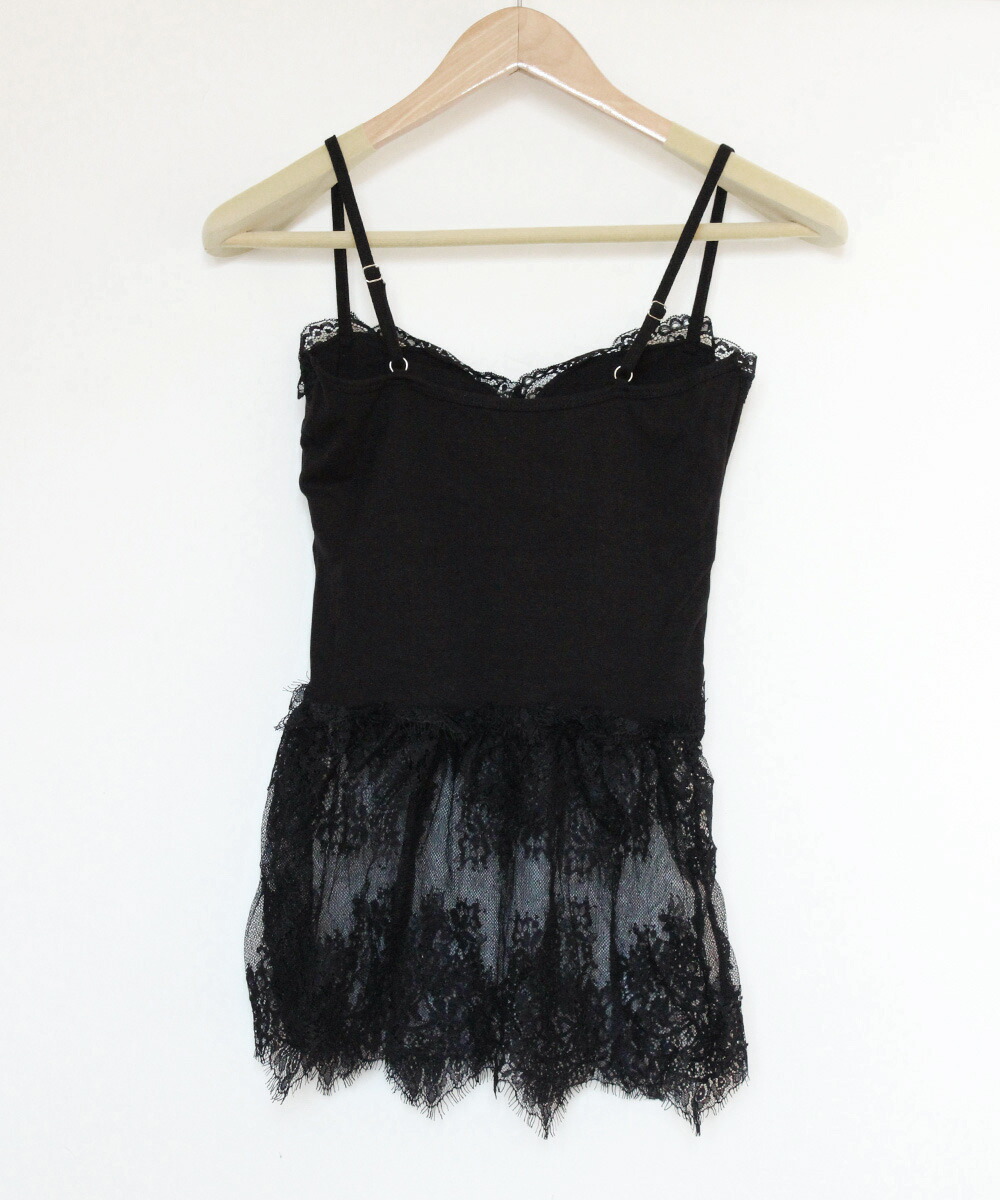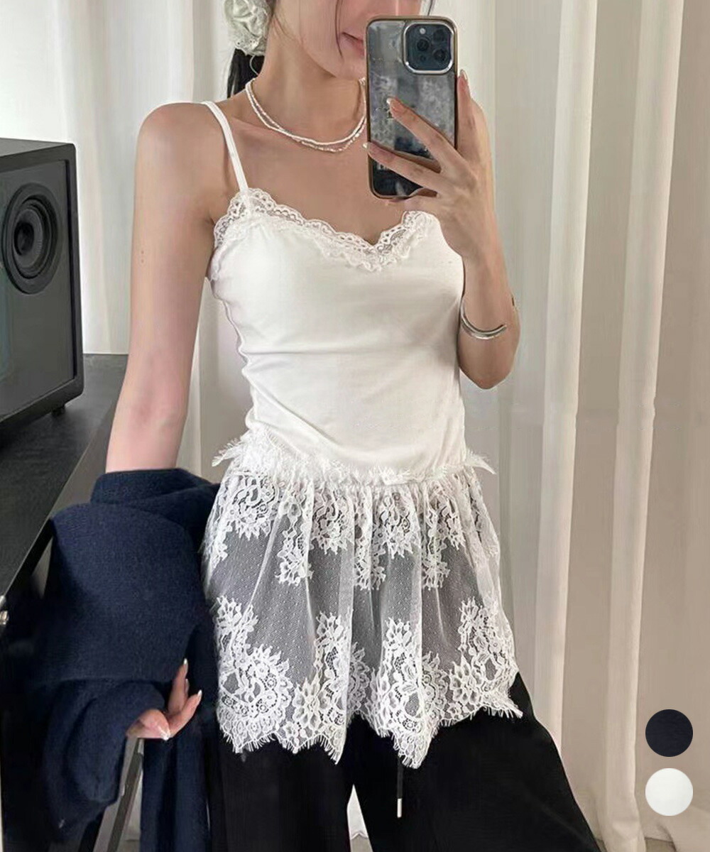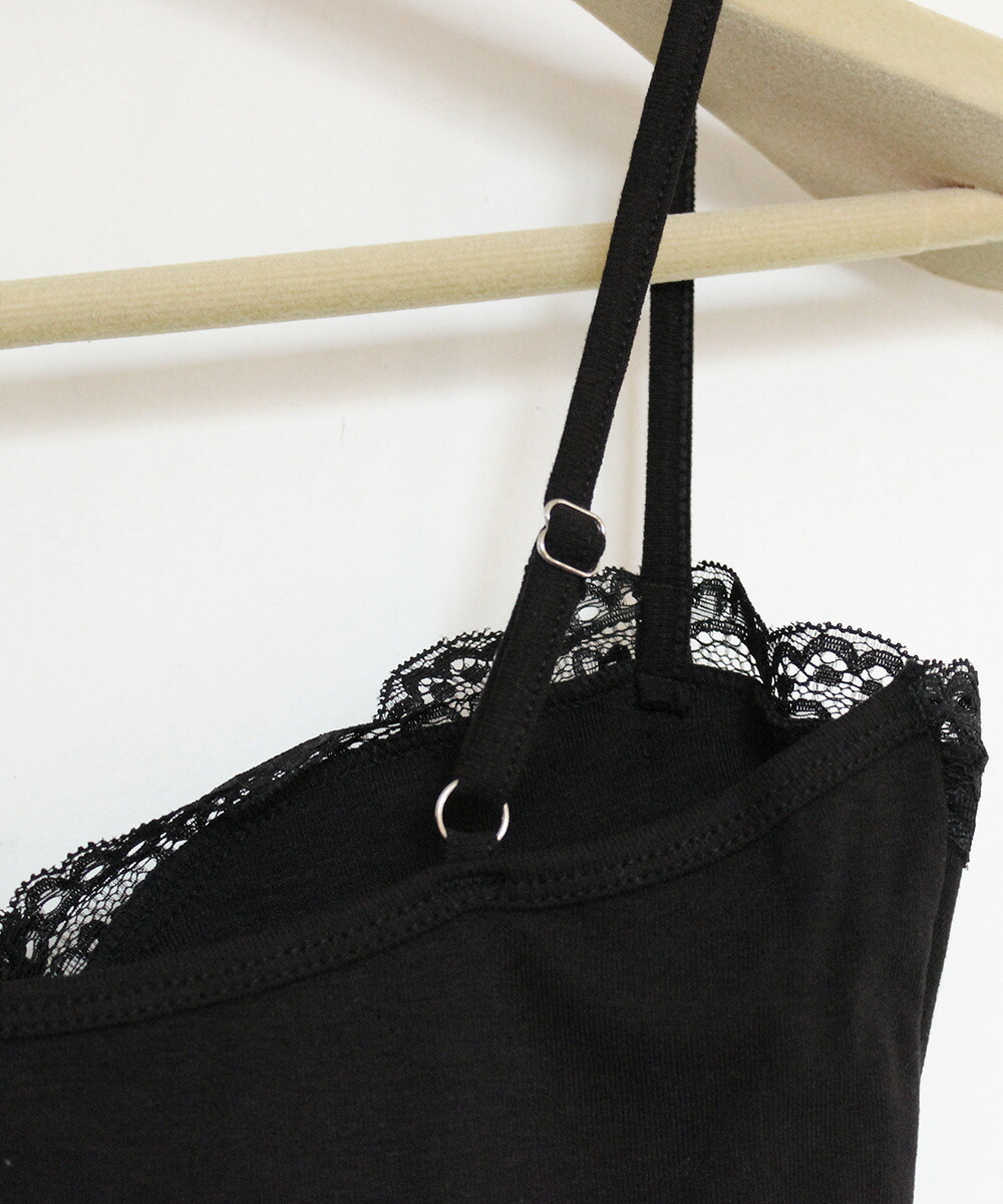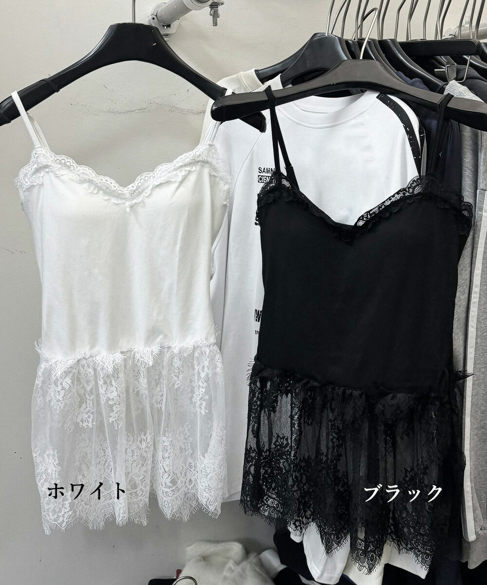 カップ付き レース裾キャミソール 韓国 インナー 下着 ナイトウエア 早い者勝ち ブラック ホワイト