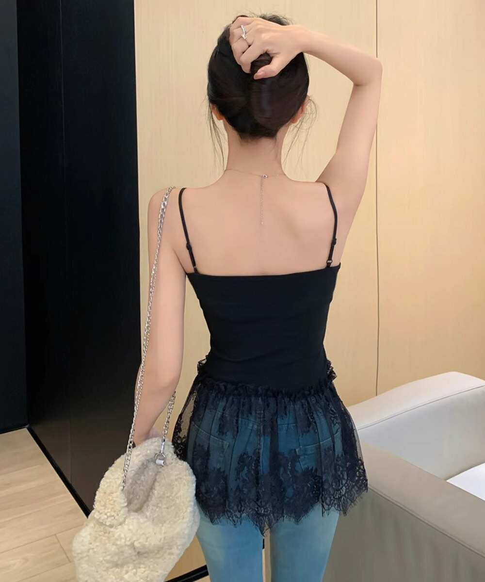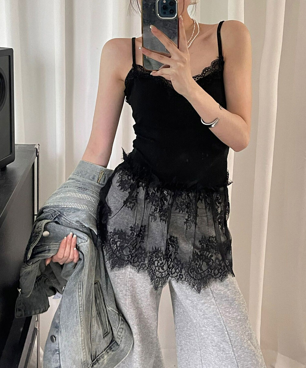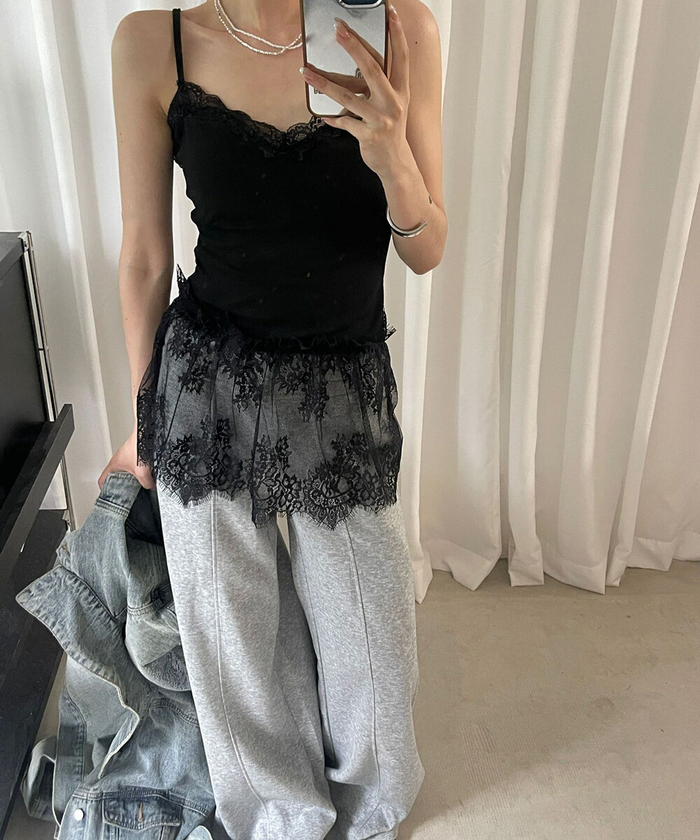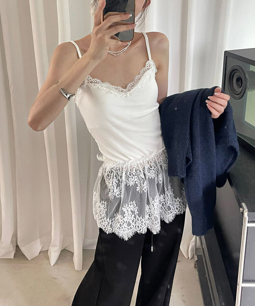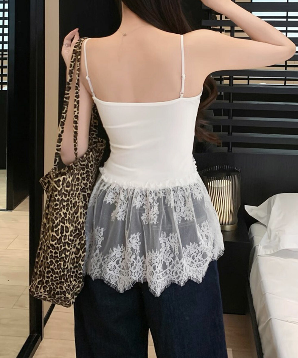 カップ付き レース裾キャミソール 韓国 インナー 下着 ナイトウエア 早い者勝ち ブラック ホワイト