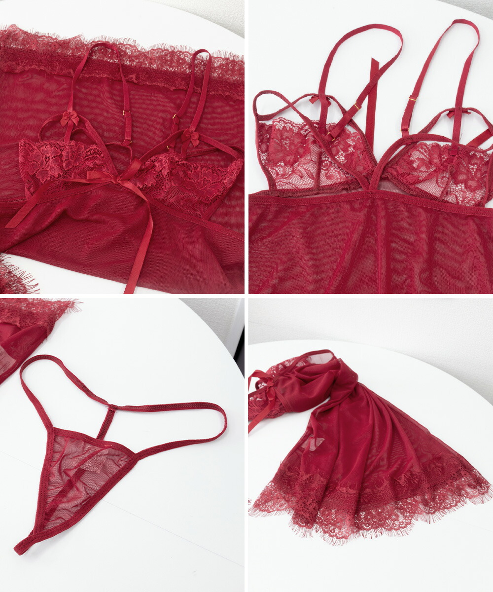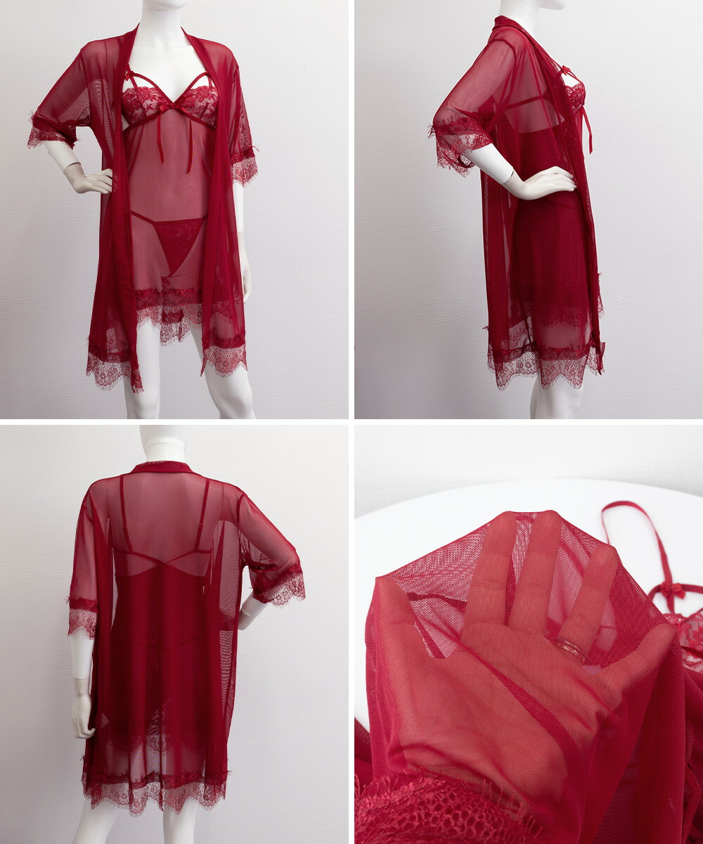 セクシーベビードール3点セットガウン付 レディース ナイトウェア ルームウェア パジャマ 続々登場 スモークピンク ピンク ブラック ホワイト ワインレッド