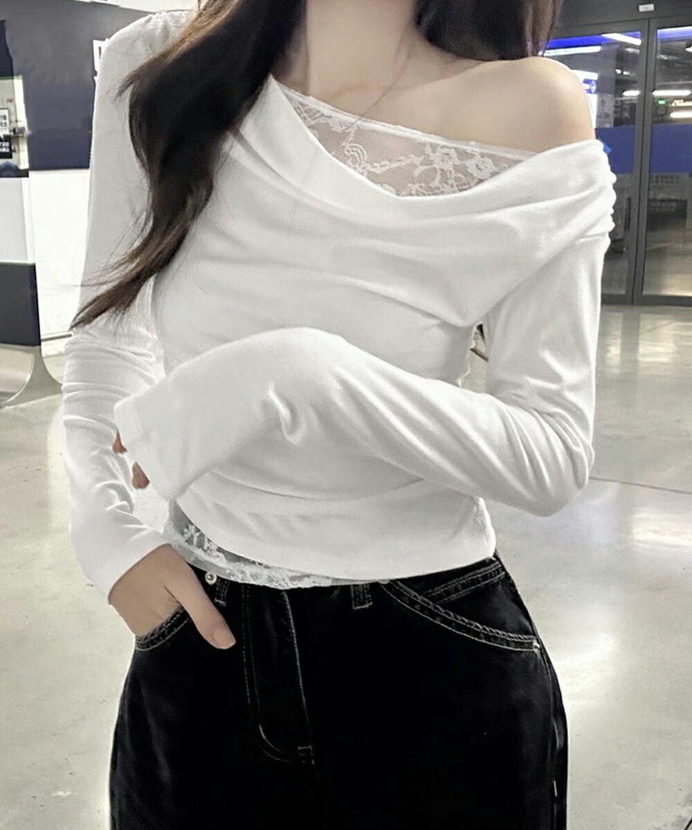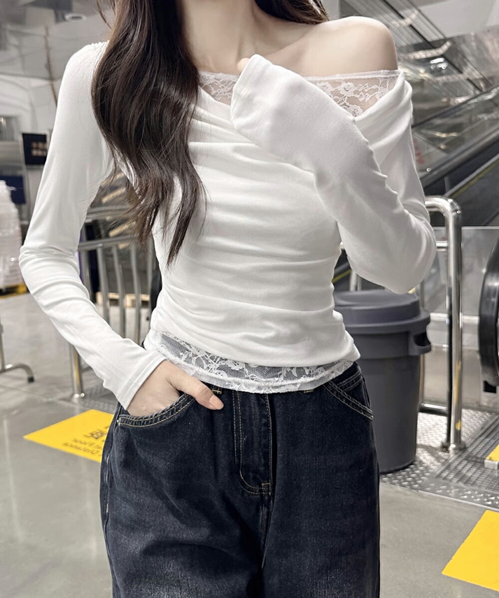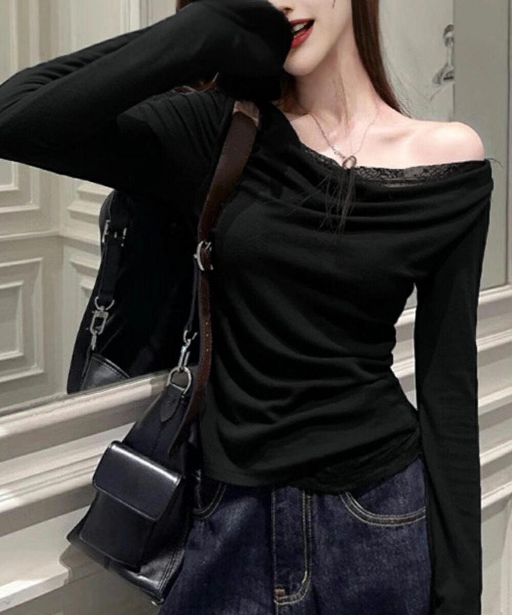 レース 長袖Tシャツ レディース 薄手 トップス Tシャツ カットソー 人気 ブラック ホワイト