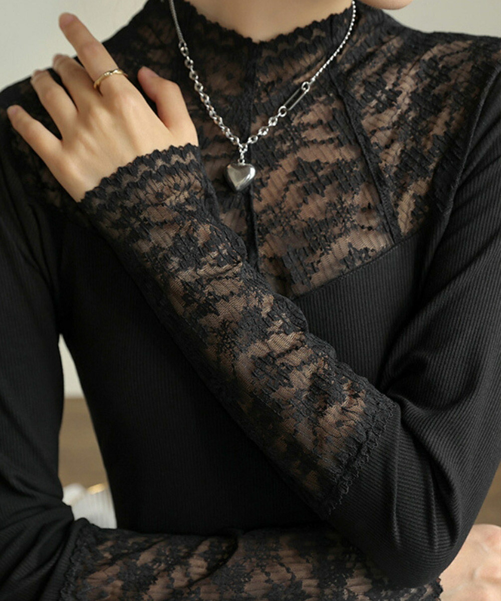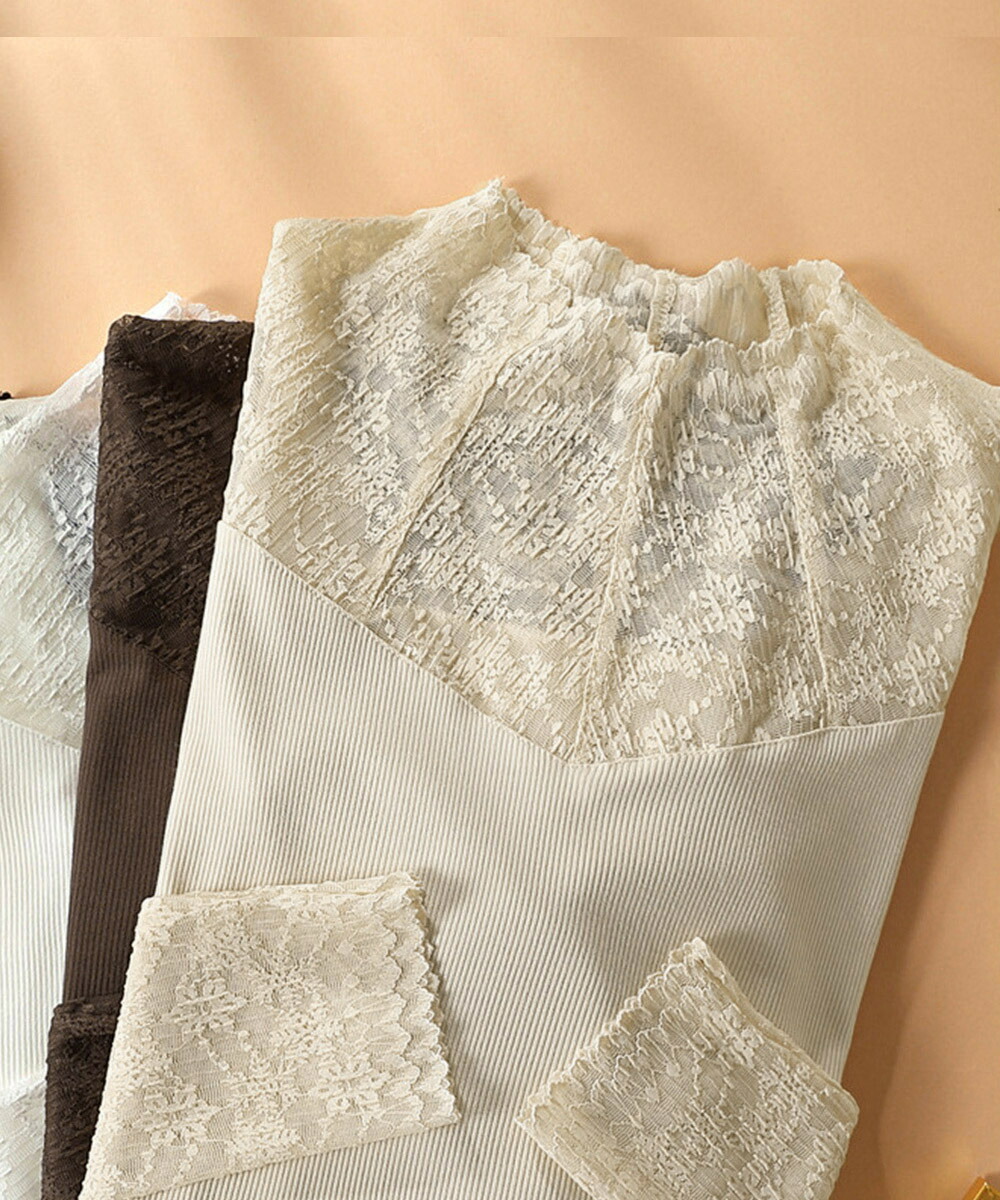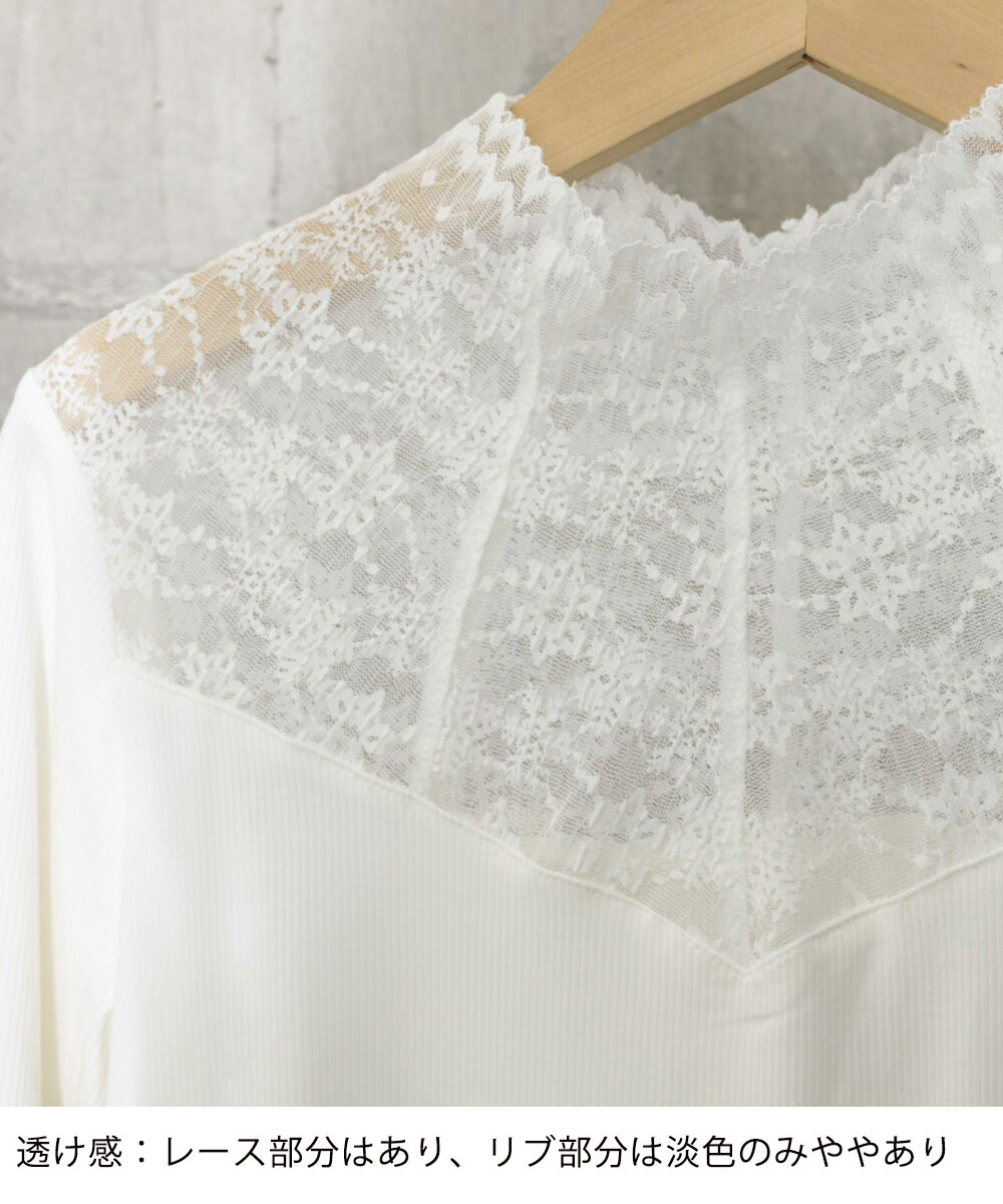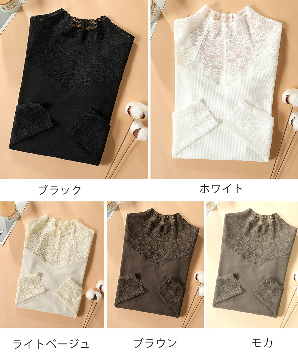 レースカットソー切り替えインナートップ トップス Tシャツ カットソー 通販 ブラウン ブラック ホワイト モカ ライトベージュ