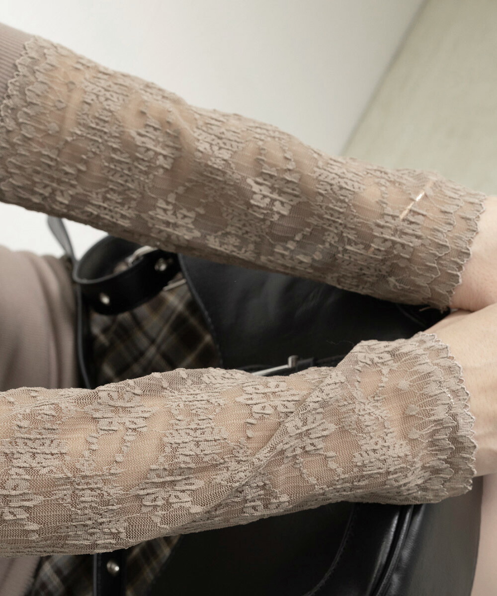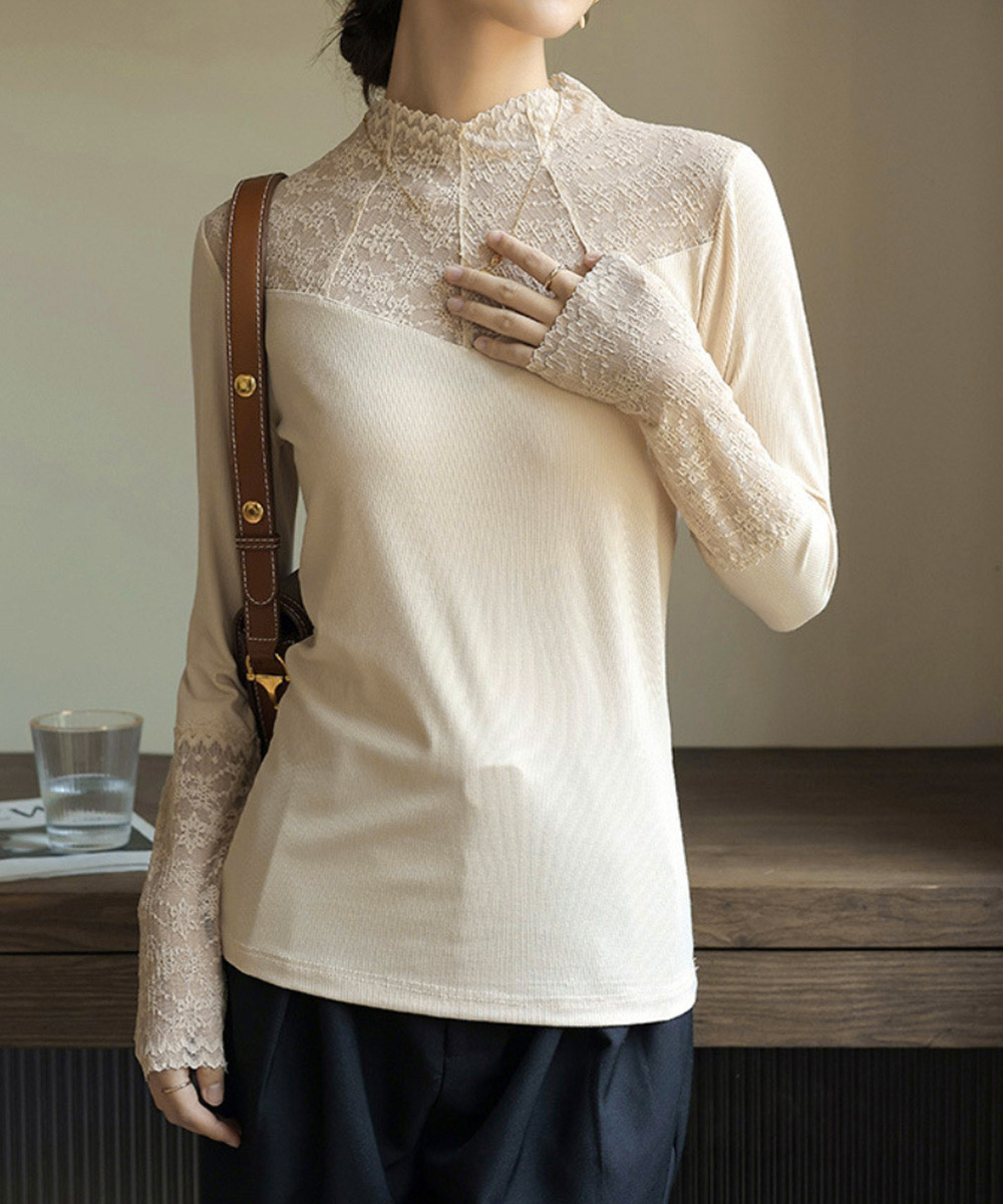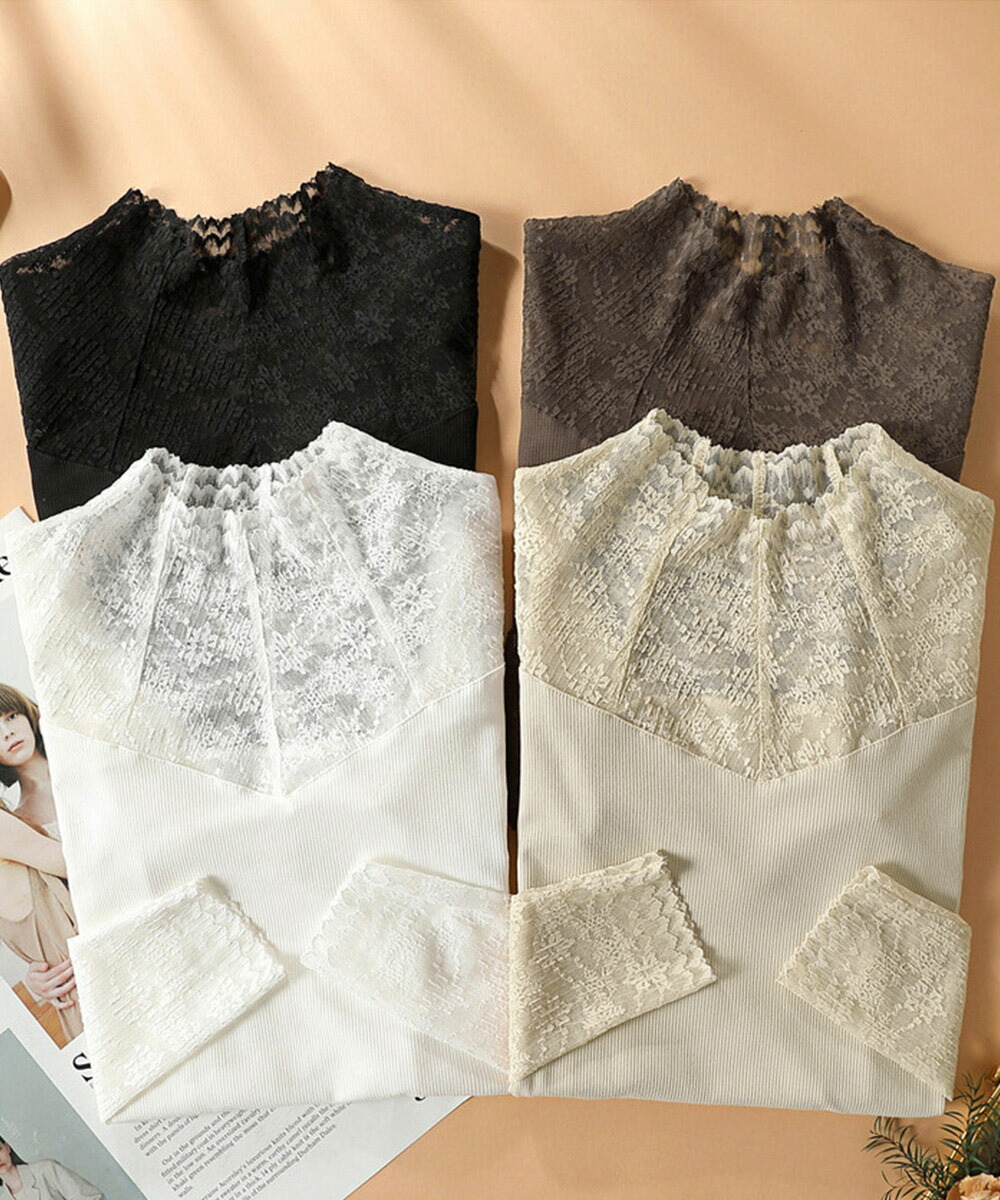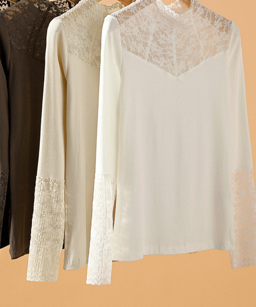 レースカットソー切り替えインナートップ トップス Tシャツ カットソー 通販 ブラウン ブラック ホワイト モカ ライトベージュ