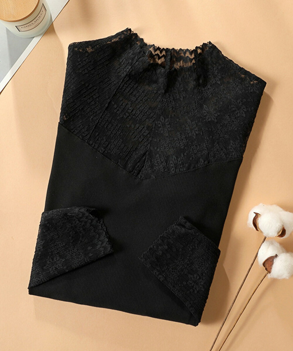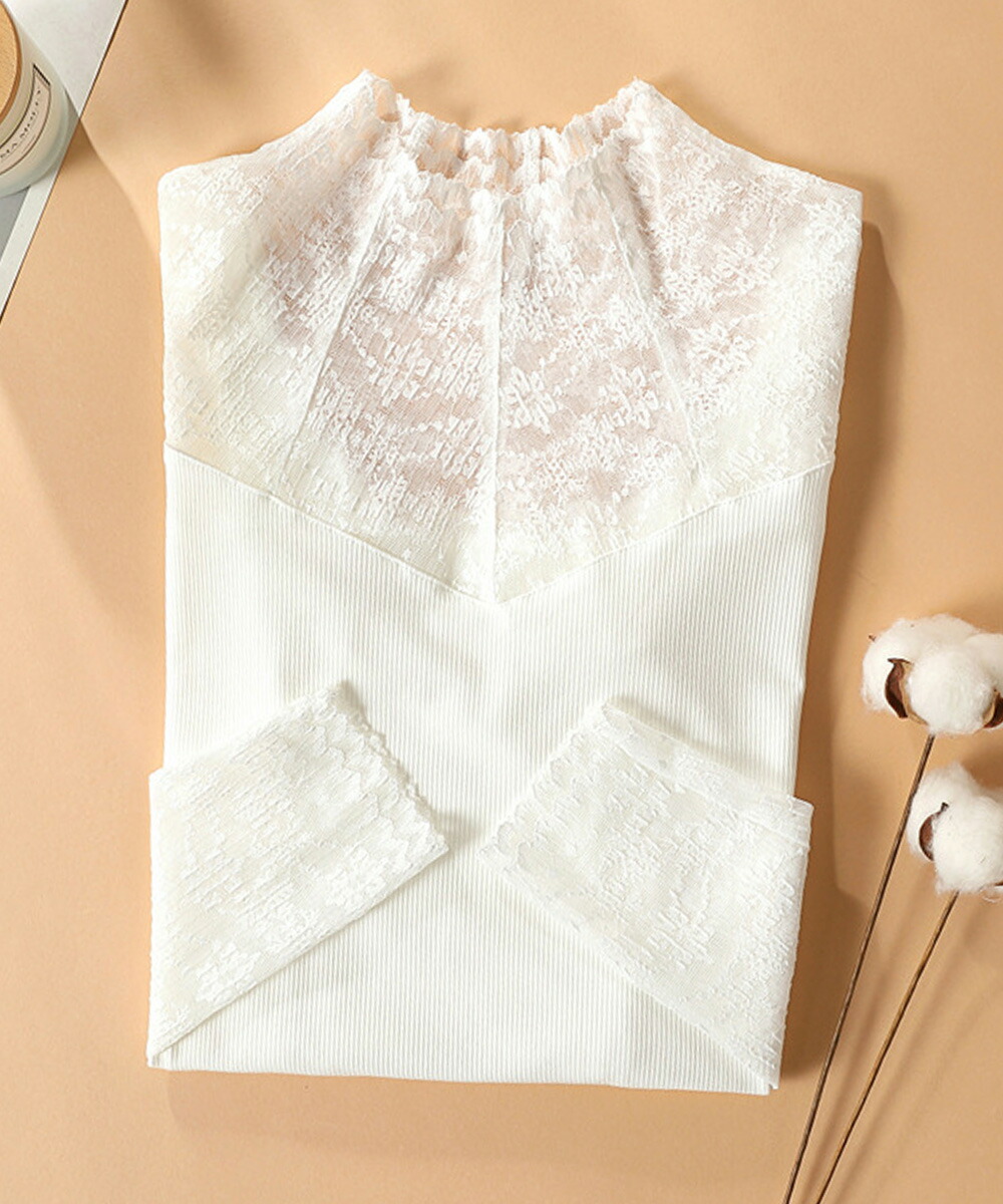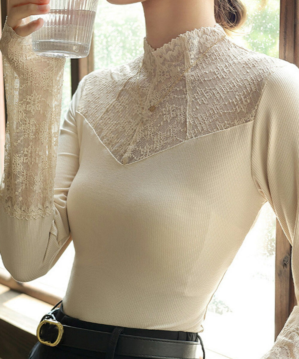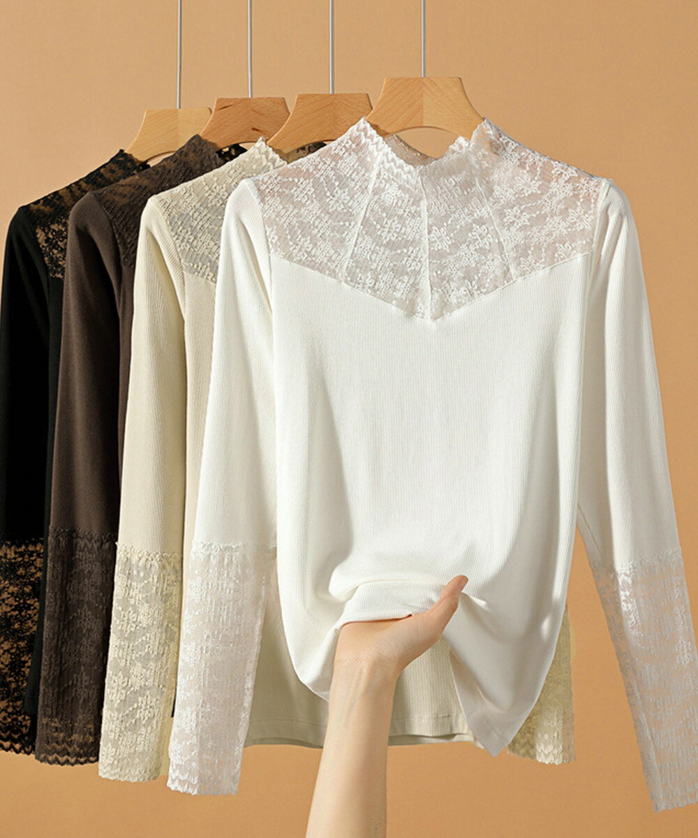 レースカットソー切り替えインナートップ トップス Tシャツ カットソー 通販 ブラウン ブラック ホワイト モカ ライトベージュ