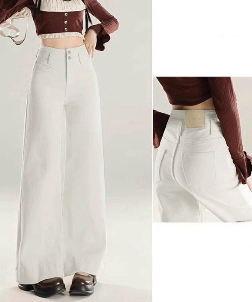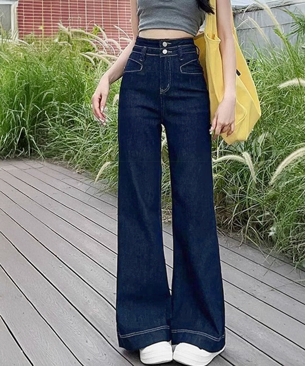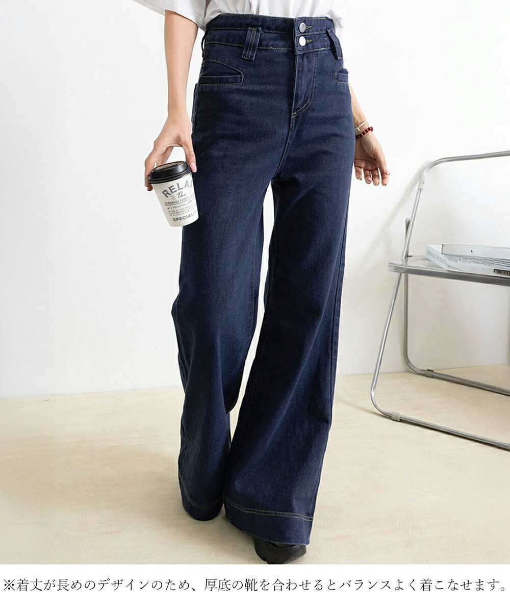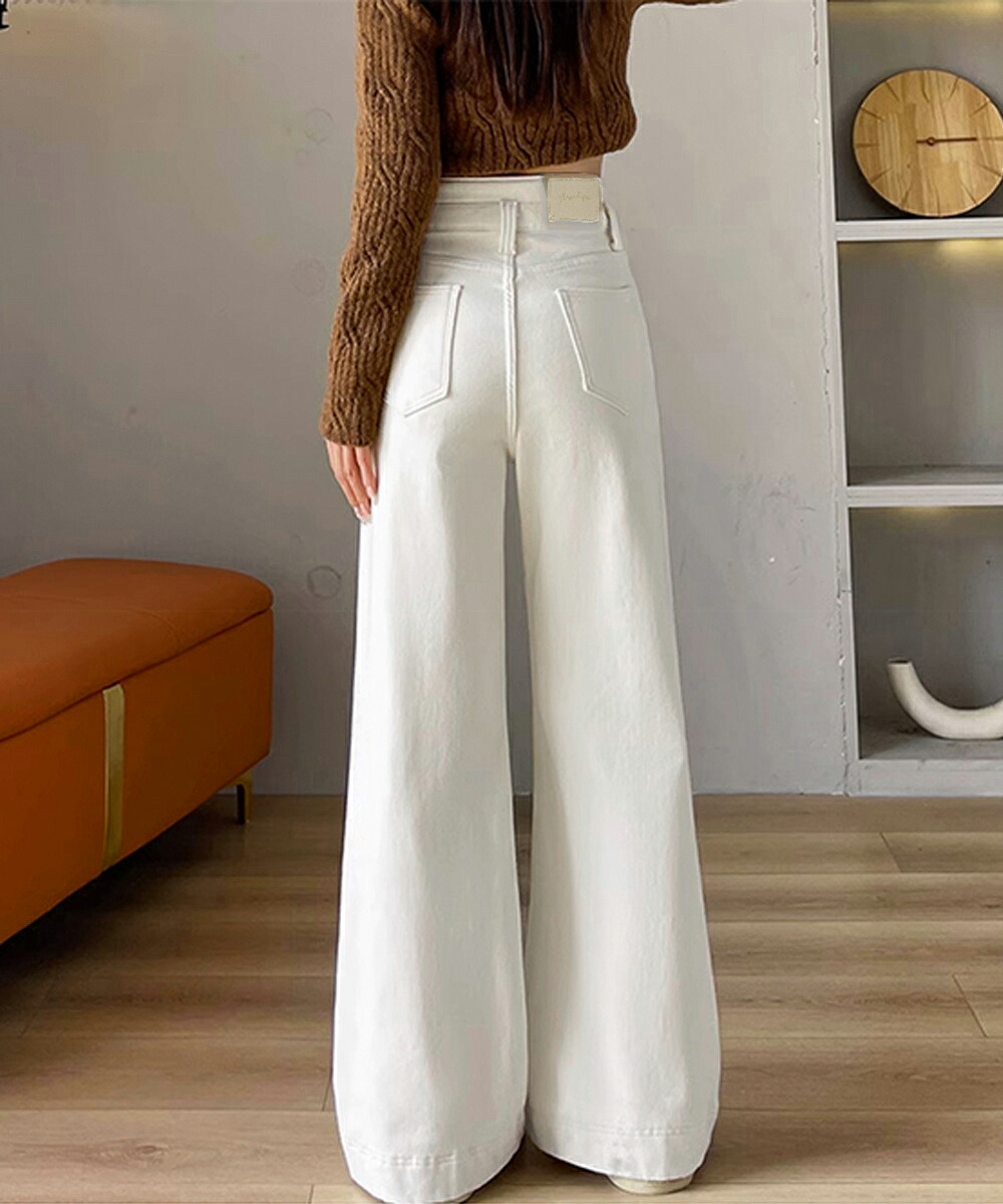 フレアデニムパンツ ハイウエスト美脚脚 ボトムス パンツ 続々登場 オフホワイト ダークブルー L M S XL
