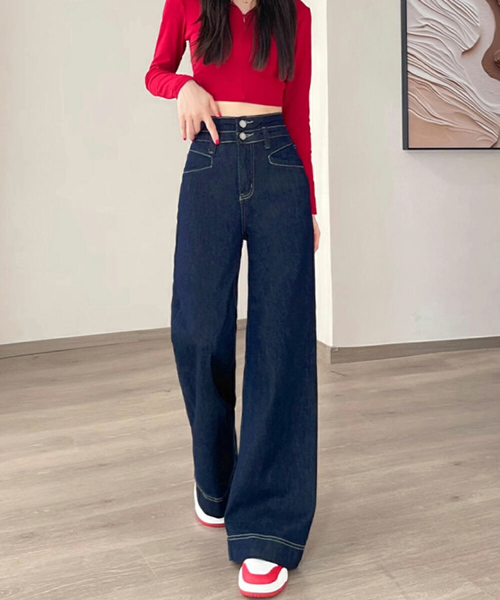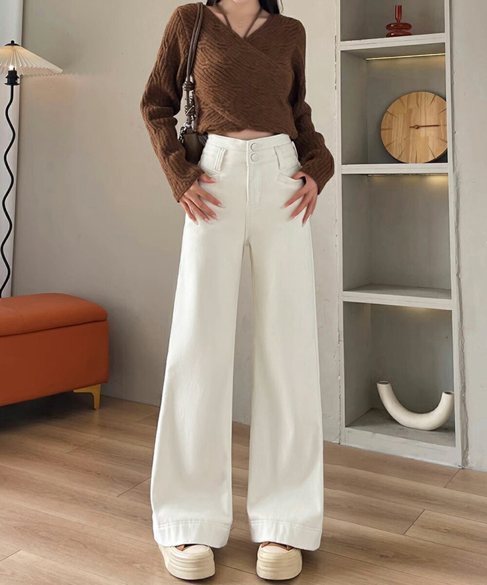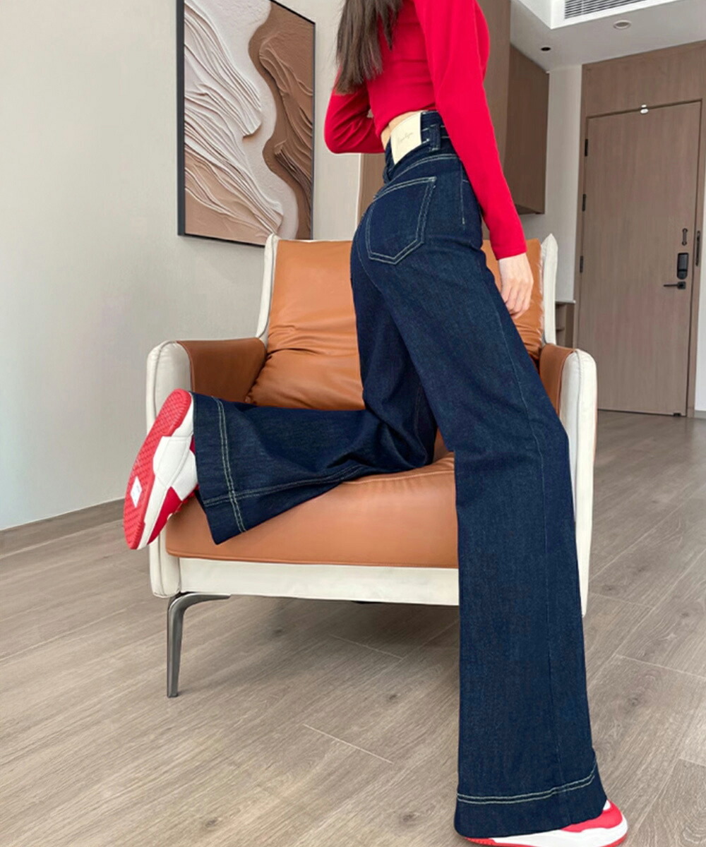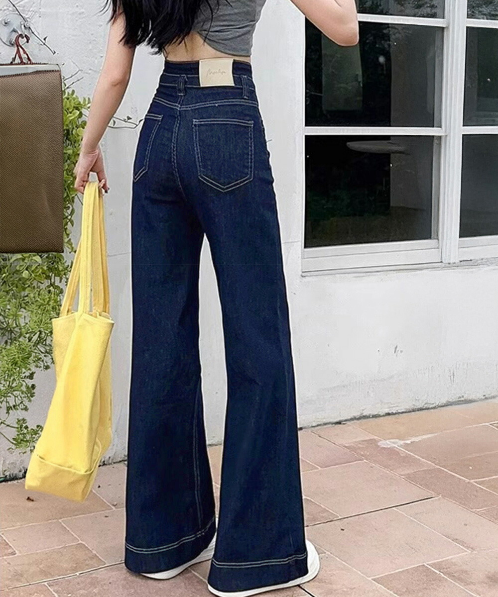 フレアデニムパンツ ハイウエスト美脚脚 ボトムス パンツ 続々登場 オフホワイト ダークブルー L M S XL