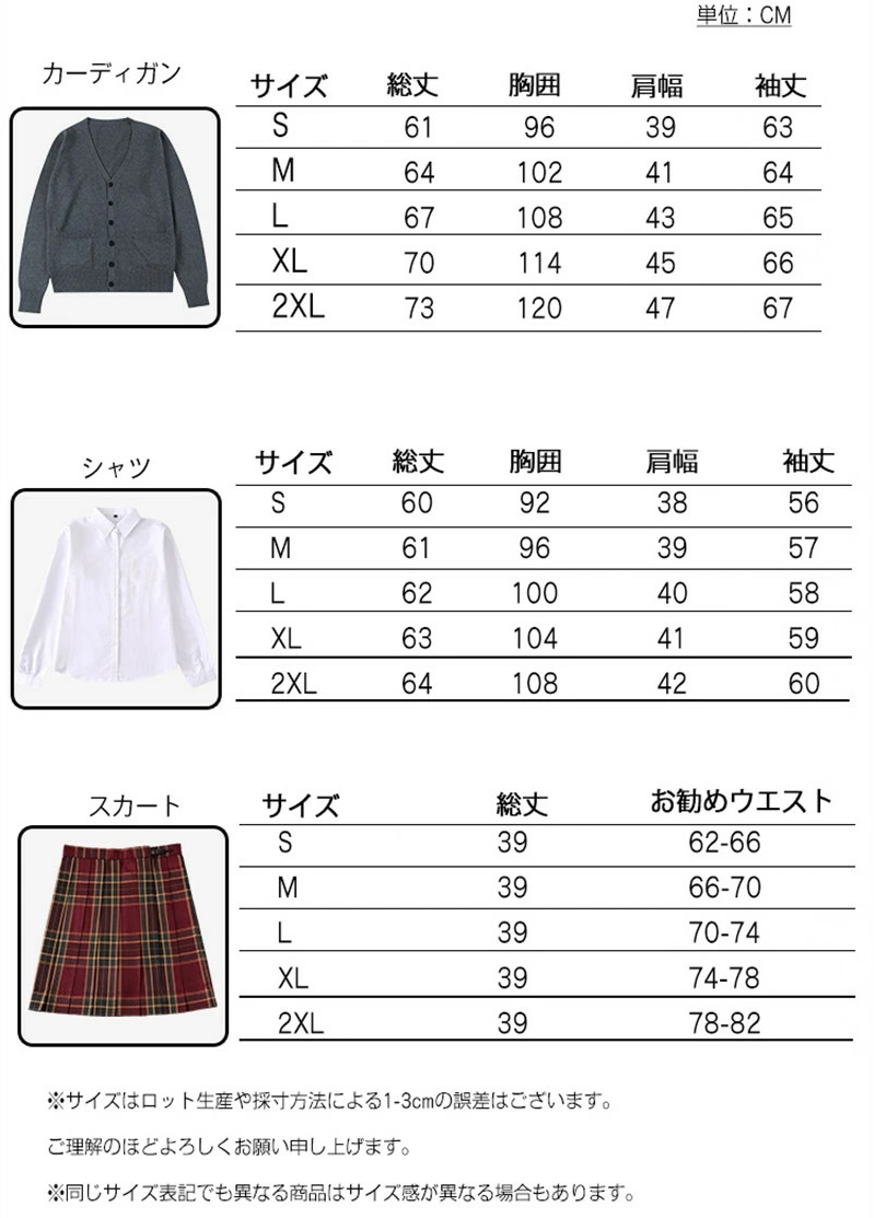 セット内容 カーディガン1 長袖シャツ1 チェックプリーツスカート リボン*1