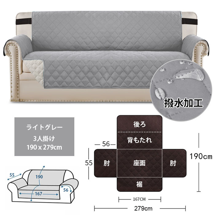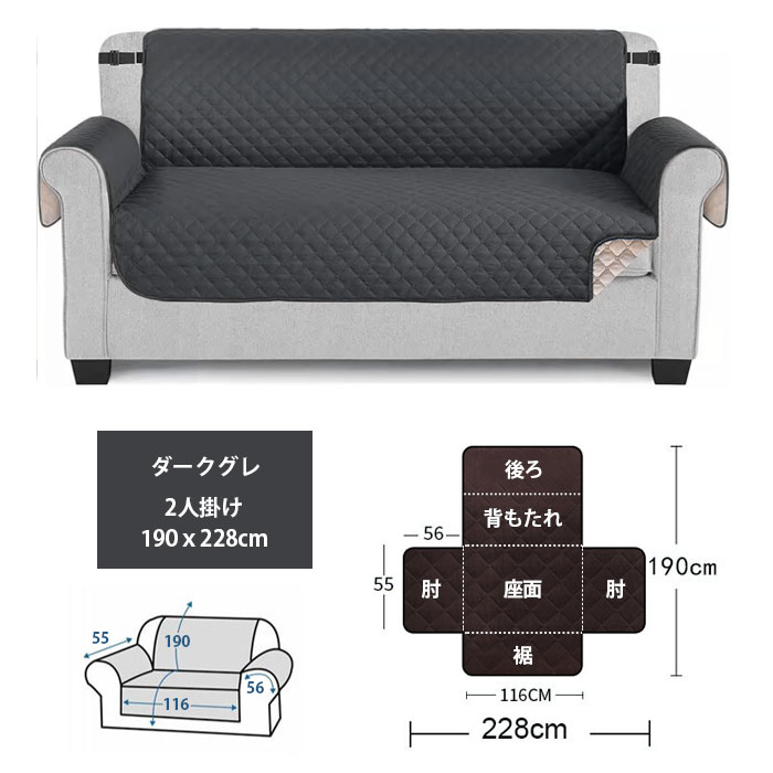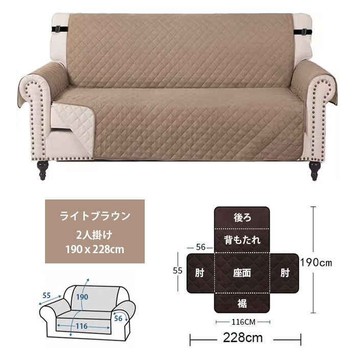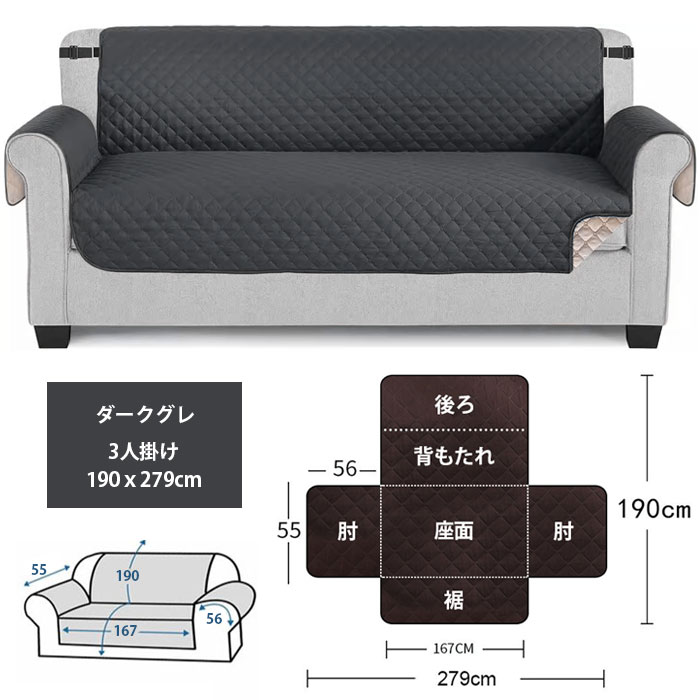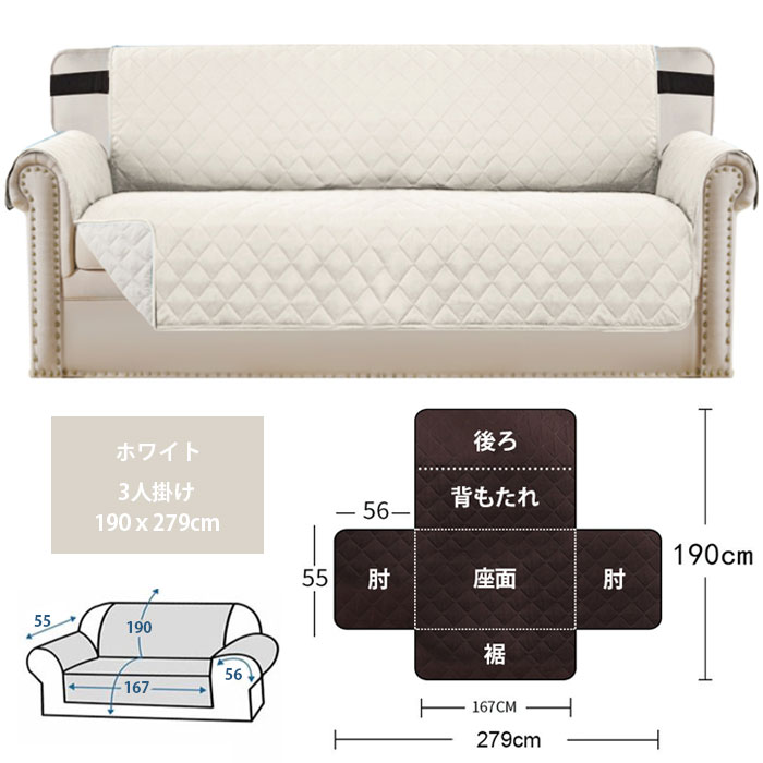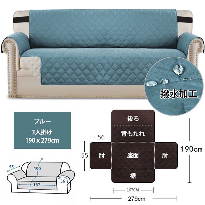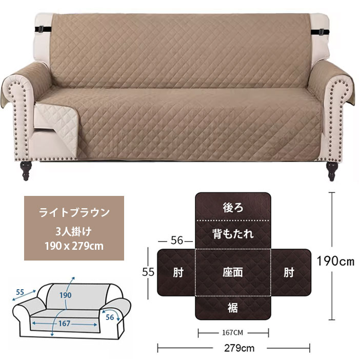 ソファーパッド 3人掛け ソファーカバ ネイビー ブルー カーキ ダークブラウン グレー ライトコーヒー ホワイト グリーン ライトグレー ダークグレー ライトブラウン カーキベージュ 2人掛け190cm×228cm 3人掛け190cmx279cm