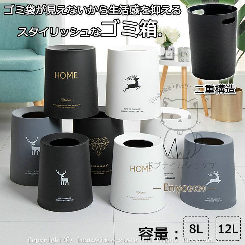 ゴミ箱 8L 12L 円形 キッチン HOME/白 HOME/黒 鹿01/白 鹿01/黒 鹿01/グレー M/白 M/黒 M/グレー 鹿02/白 鹿02/黒 鹿02/グレー ダイヤモンド