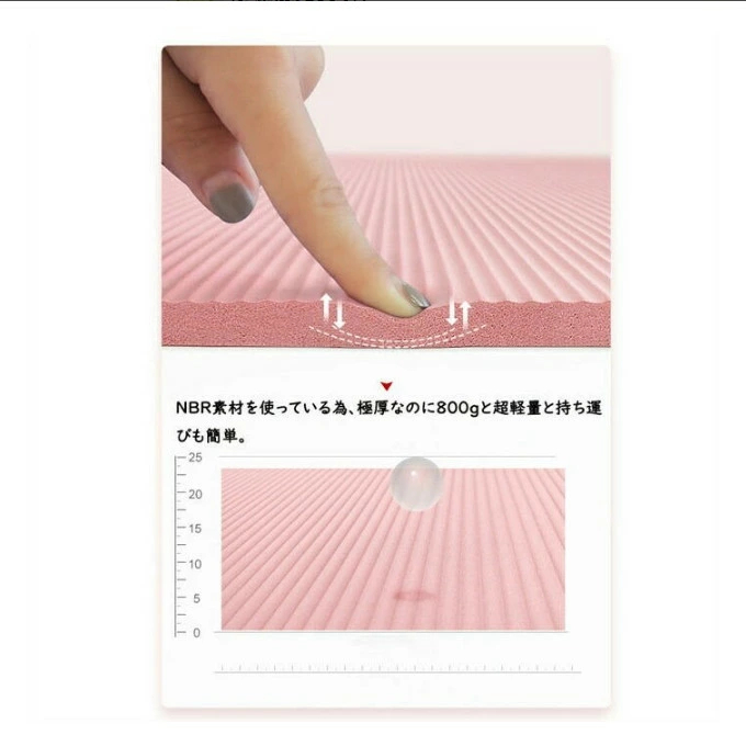 摩擦に耐えられ、運動時に手足の汗などで滑らないようにする横じまがあり、 防音性、クッション性、耐久性、耐水性に優れていてヨガ以外でも体操やストレッチなど練習出来き、外出など持ち運びにも便利です。