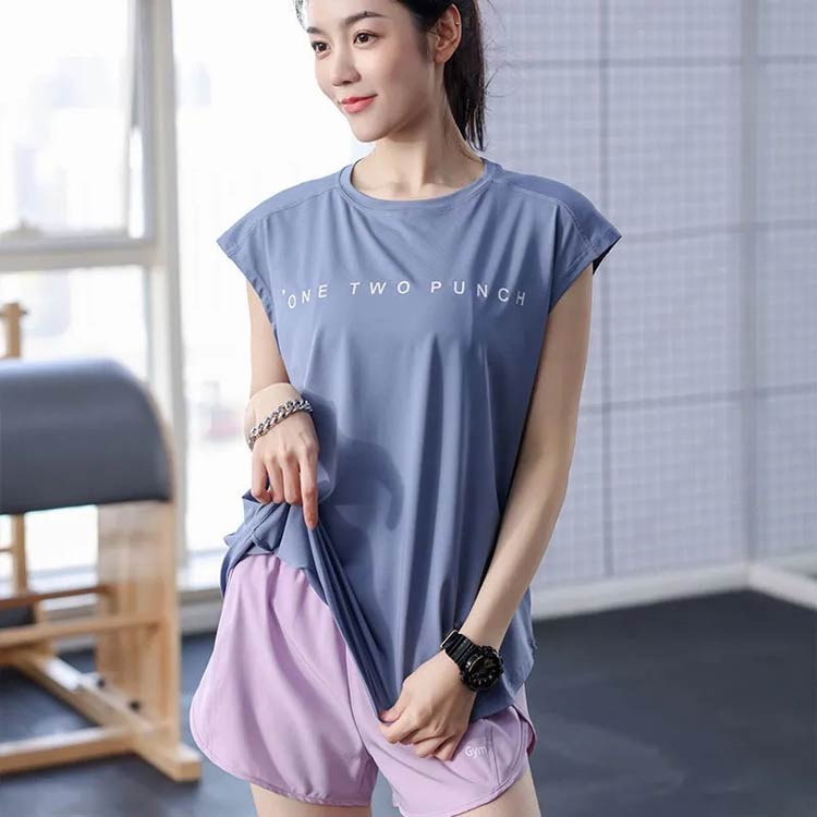 S-2XL!吸汗速乾ストレッチ素材を使用、フレンチスリーブヨガトップス。