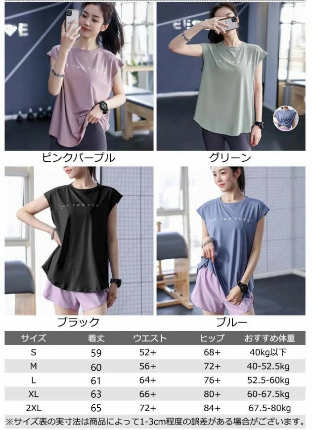 ヨガ ピラティス ウェア トップス カラー: ピンクパープル グリーン ブラック ブルー