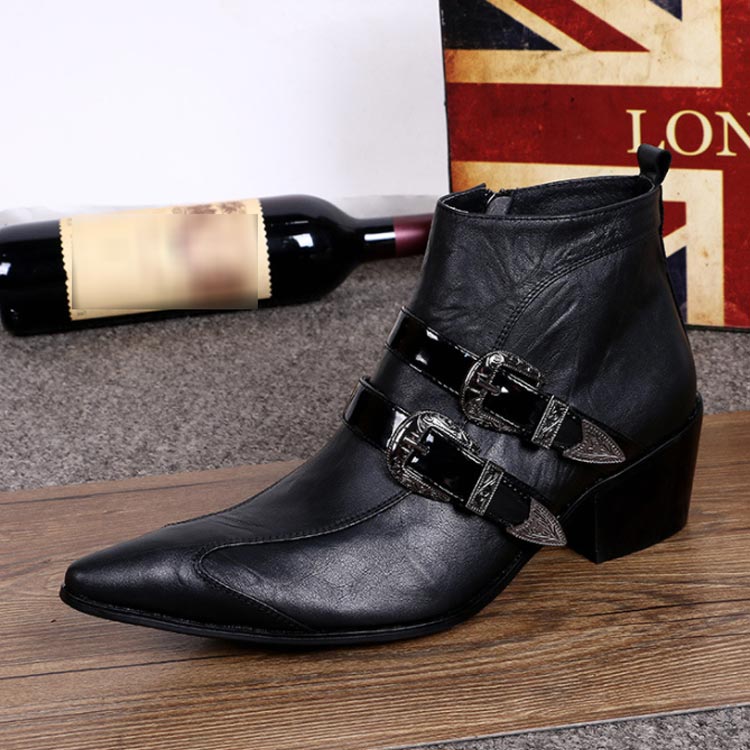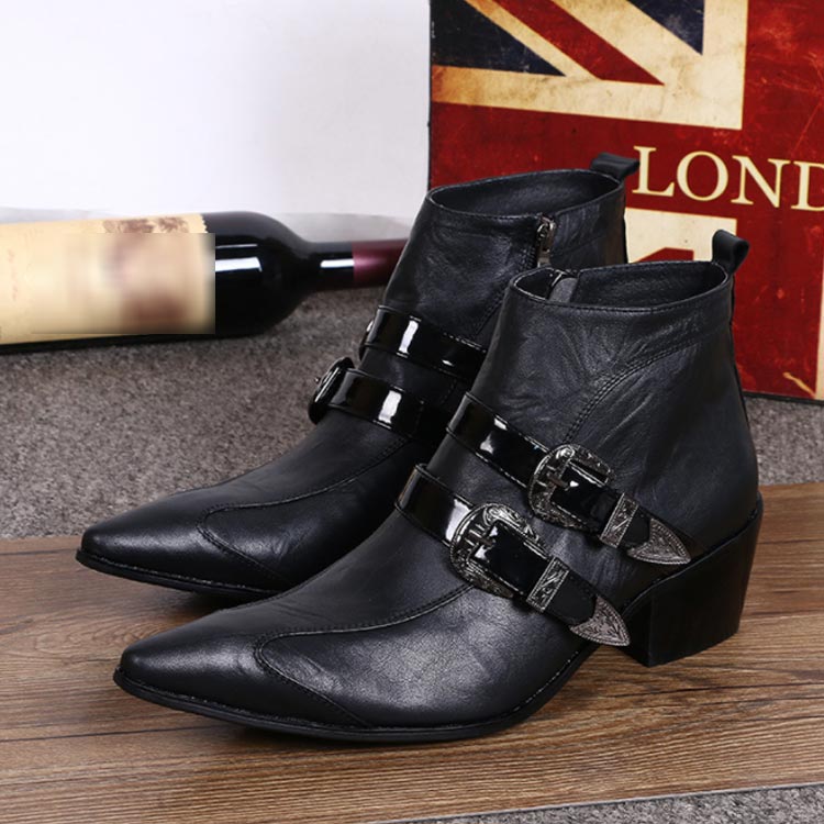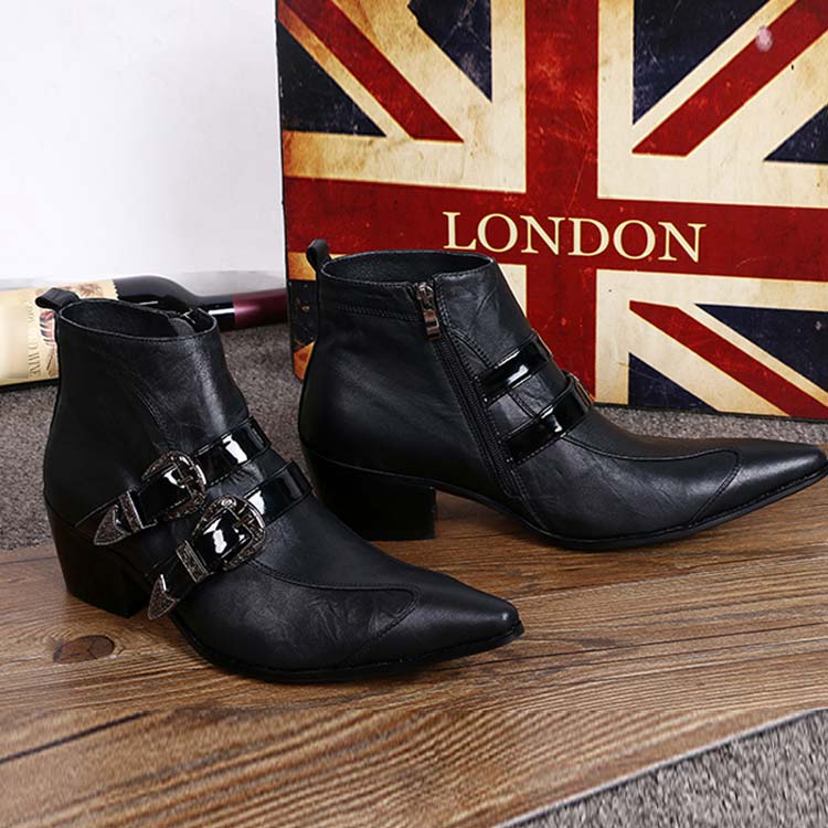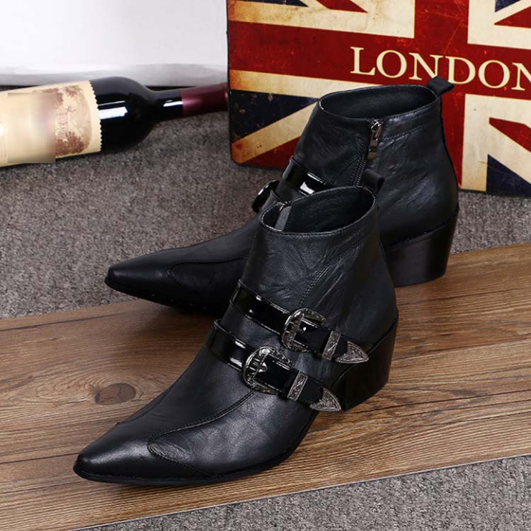 ホスト ブーツ 本革 ドレスブーツ お兄系 渋谷系 モード系 メンズ 革靴 ブーツ 牛革 ドレスシューズ ポインテッドトゥ ローヒール ビジネスブーツ 紳士靴 サイドジッパー ベルト付き 舞台 フォーマル ビジネス 結婚式 ステージ衣装 パーティー