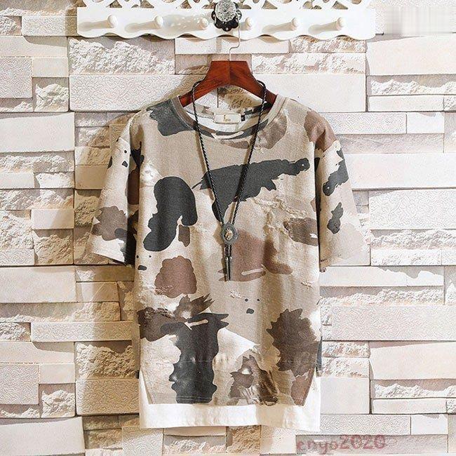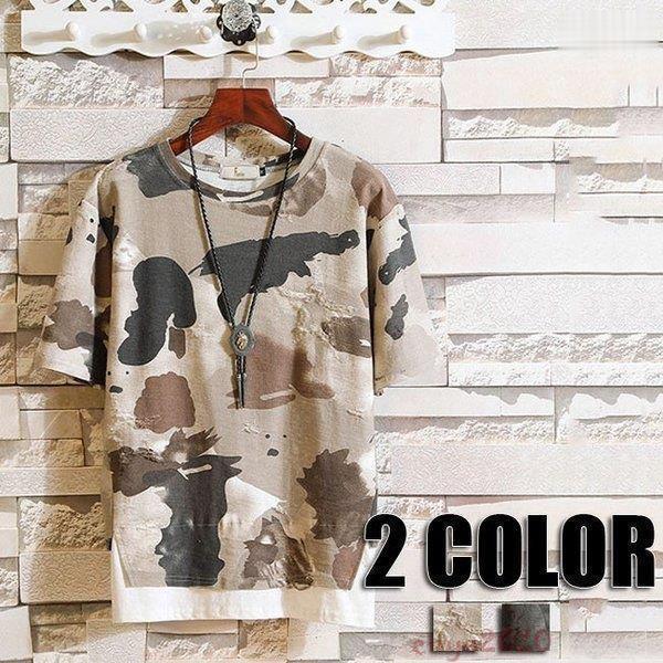 半袖Tシャツ メンズ 迷彩 トップス メンズファッション 通販 灰 カーキ S M L XL 2XL 3XL 4XL 5XL