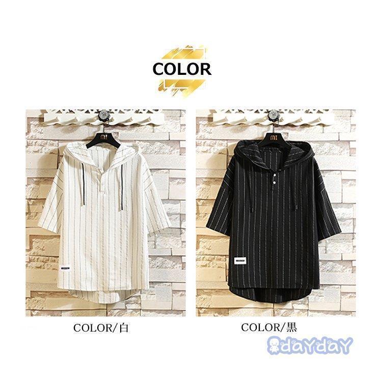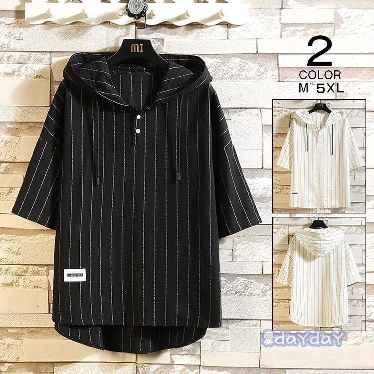 ストライプパーカー メンズ 半袖パーカ トップス Tシャツ カットソー 特集 白 黒 M L XL 2XL 3XL 4XL 5XL