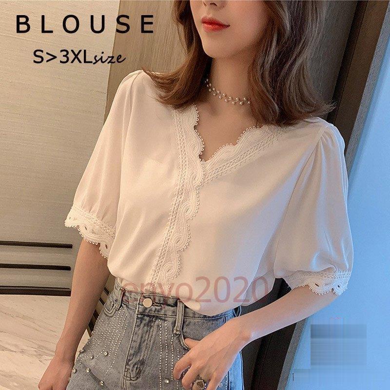 ブラウス シャツブラウス 夏 プルオー レディースファッション 人気 S M L XL 2XL 3XL