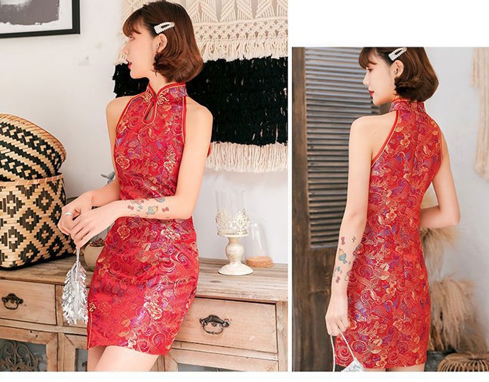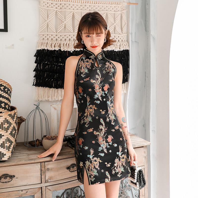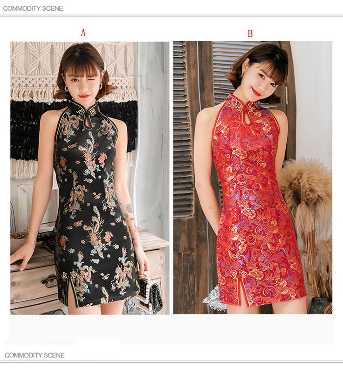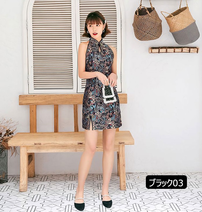 チャイナ風 ミニワンピース チャイナドレス レディース ノースリーブ 龍 鳳 花柄 夏 色鮮やか 大きいサイズ コスプレ 二次会 衣装 撮影 ブラック レッド ブルー ドレス 続々登場