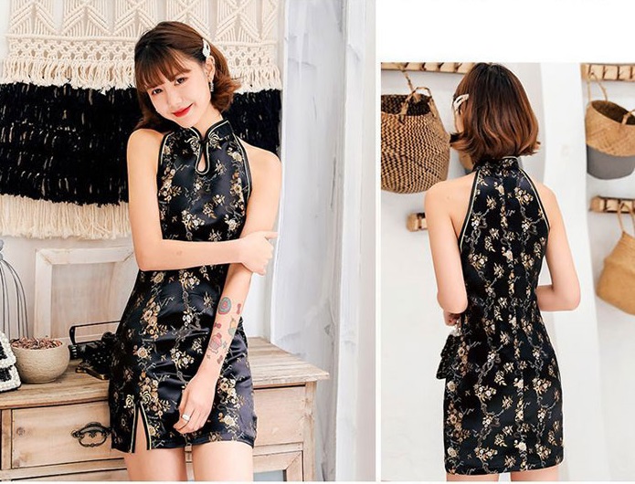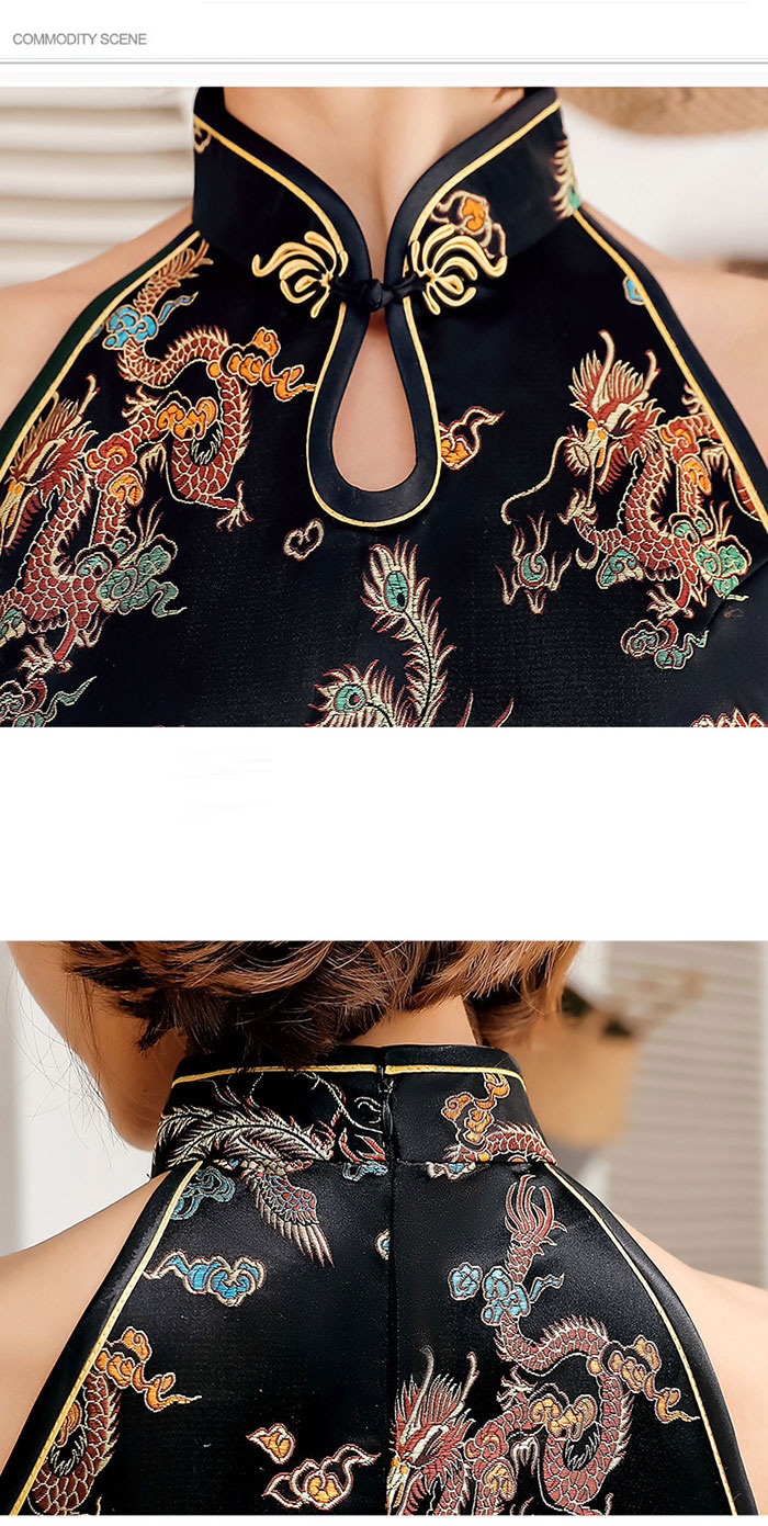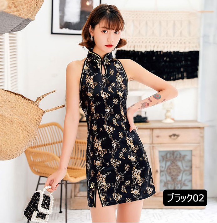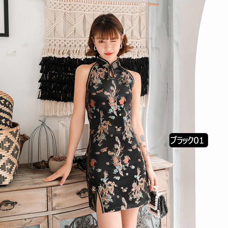 チャイナドレス 花柄 レディース ノースリーブ 龍 鳳 夏 チャイナ風 ミニワンピース 色鮮やか 大きいサイズ コスプレ 二次会 衣装 撮影 ブラック レッド ブルー