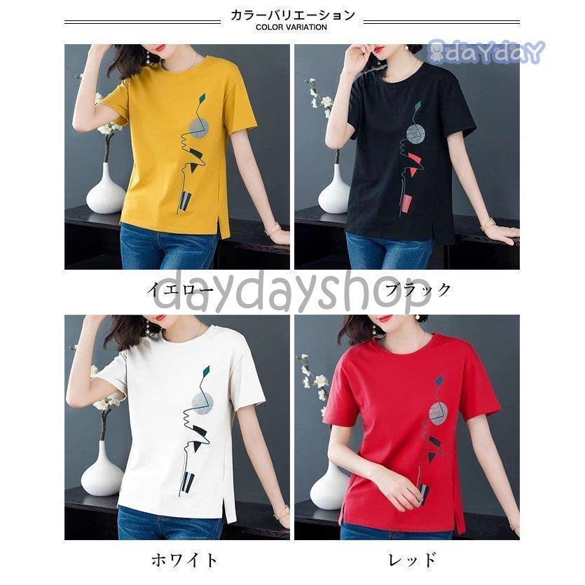 半袖Tシャツ レディース Tシャツ 夏 レディースファッション 通販 イエロー ブラック ホワイト レッド バラ M L XL 2XL 3XL 4XL