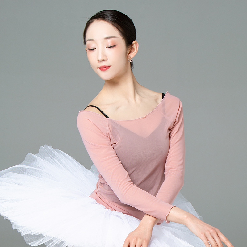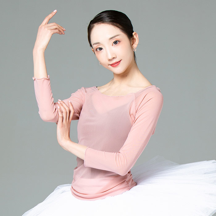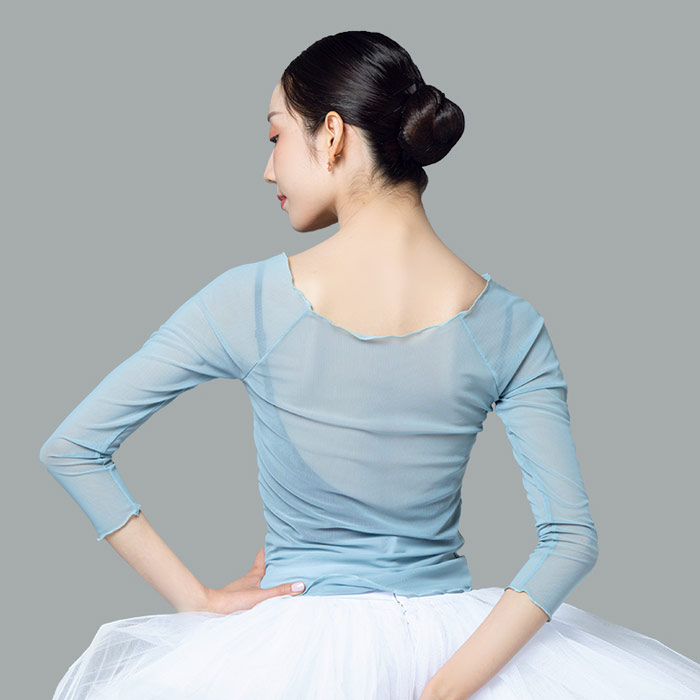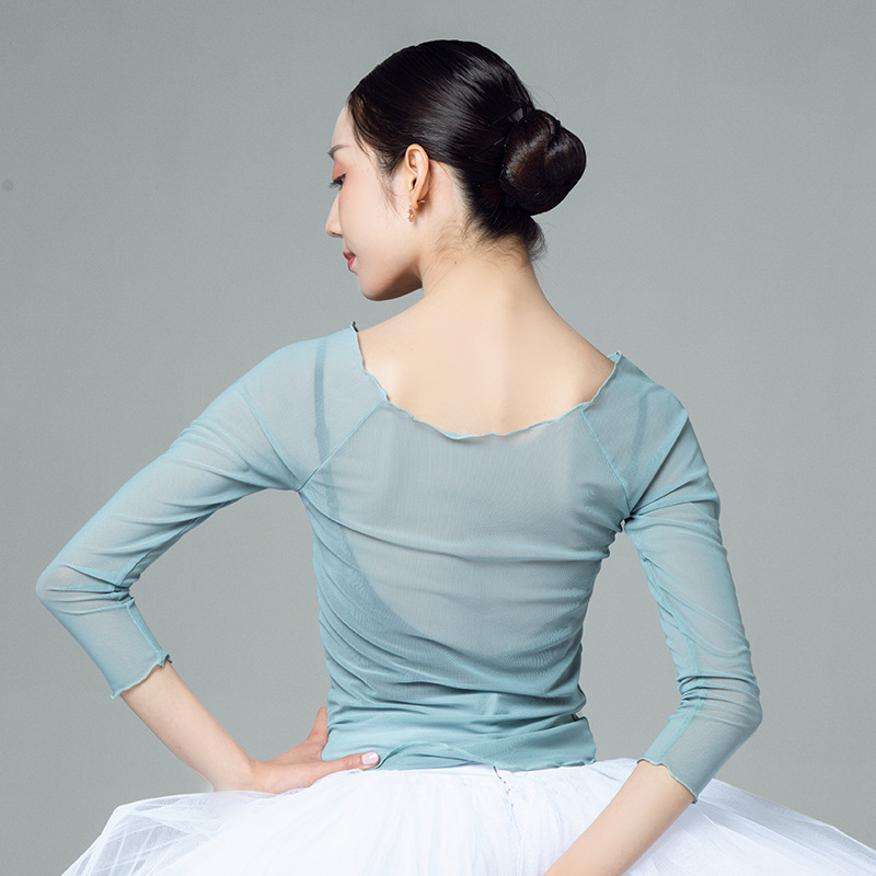 社交ダンス ダンス衣装 バレエ トップス 7分袖 ストレッチメッシュ 大人 レッスン着 バレエウェア ウォームアップ トップス ダンス ヨガ トップス 透け感 デコルテ レディース 大人 大人バレエ ジュニア バレエ用品 レッスン 着 練習着 トップス