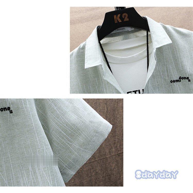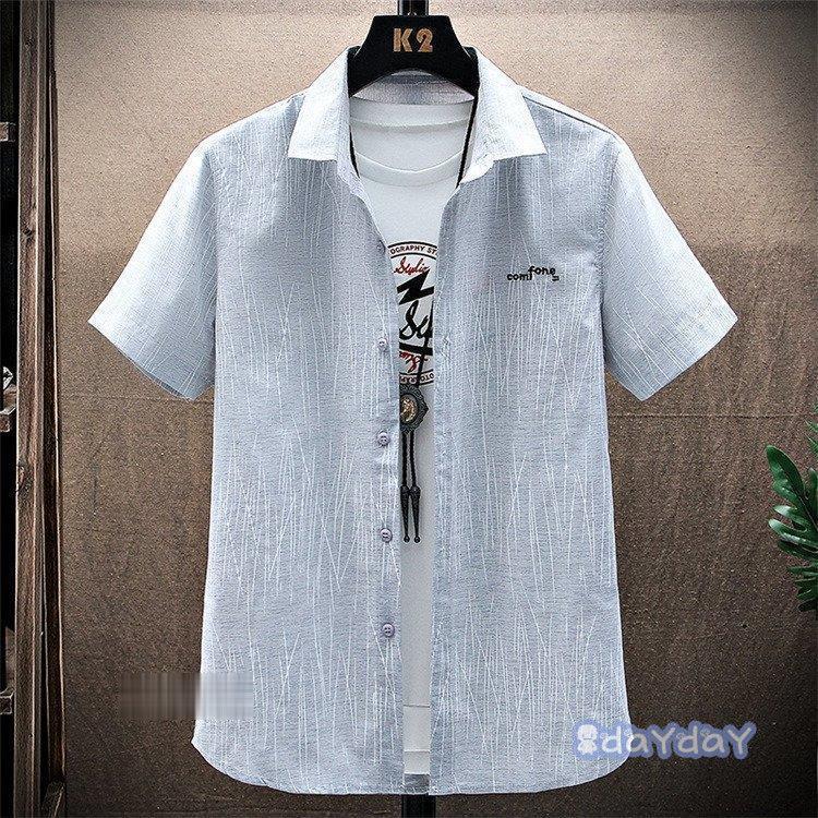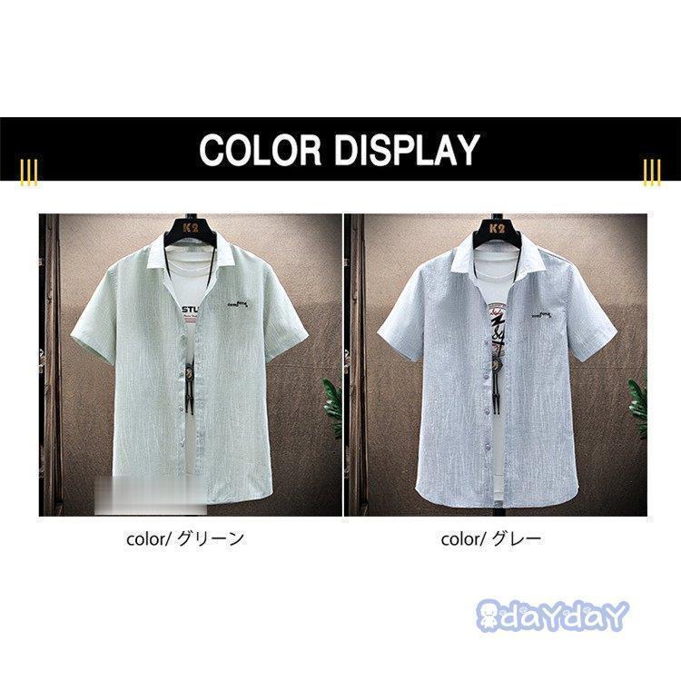 スリムシャツ 半袖シャツ カジュアルシ メンズファッション 人気 グリーン グレー M L XL 2XL 3XL