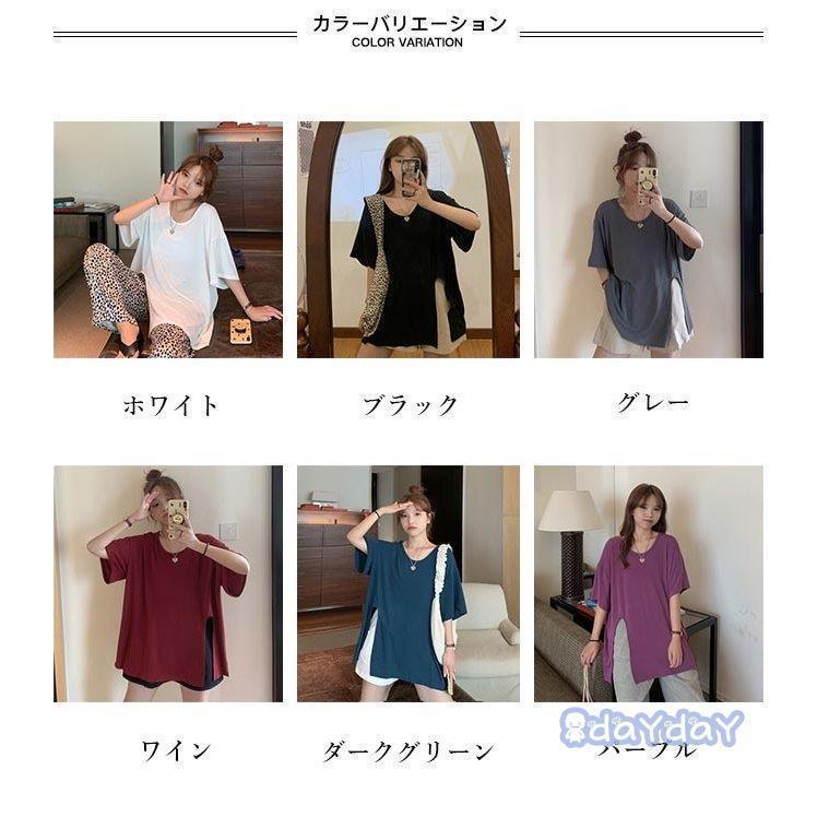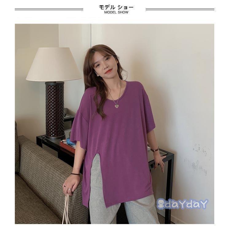 Tシャツ 半袖 ゆったり レディース トップス Tシャツ カットソー 通販 ホワイト ブラック グレー ワイン ダークグリーン パープル
