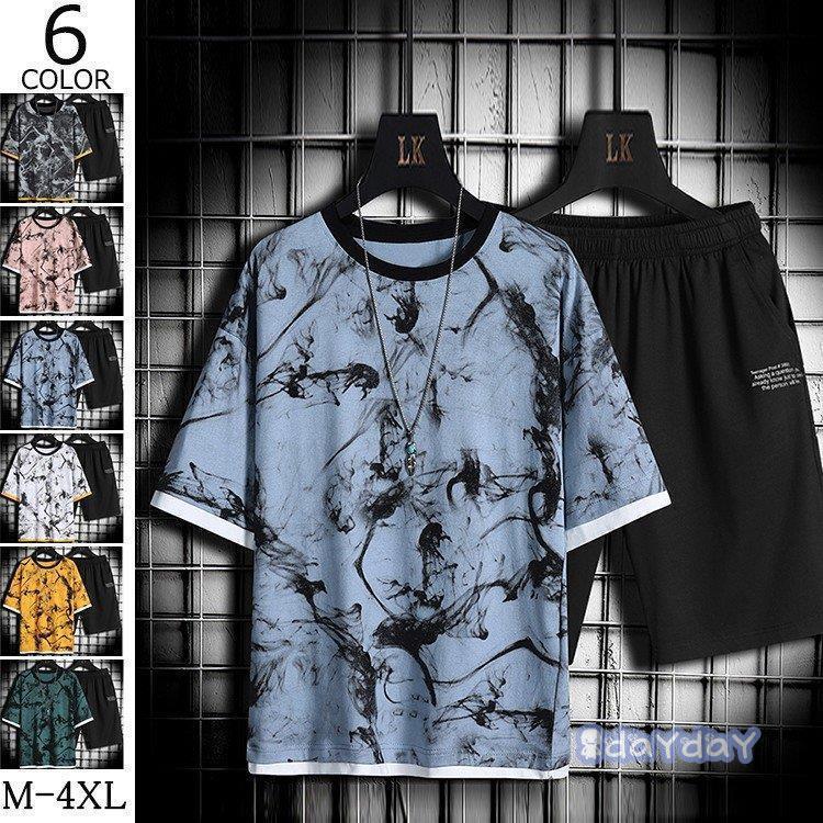 セットアップ ジャージ メンズ 半袖 メンズファッション 特集 ピンク 白 ダークグレー イエロー ブルー ふかみどり M L XL 2XL 3XL 4XL