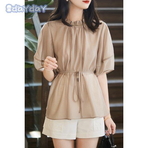 ブラウス レディース 40代 春夏 オ トップス Tシャツ カットソー 特集 ネイビー ベージュ S M L XL 2XL