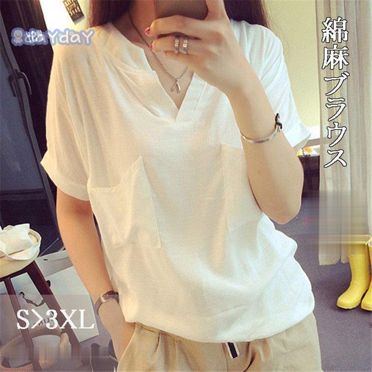 ブラウス シャツブラウス 夏 スキッパ トップス Tシャツ カットソー 人気 S M L XL 2XL 3XL