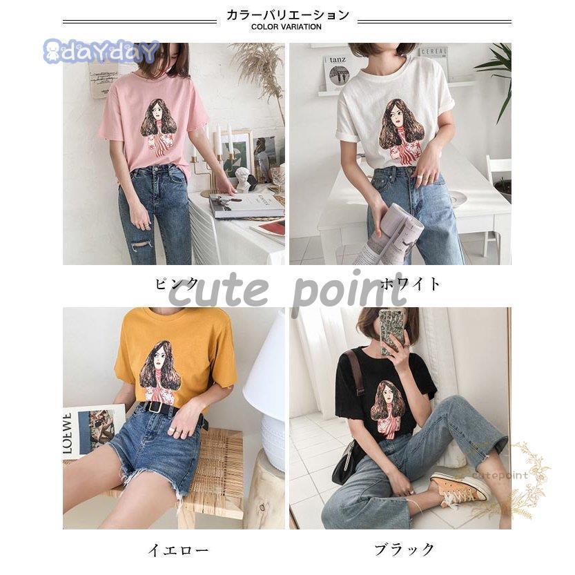 Tシャツ 夏 レディース 半袖Tシャツ トップス Tシャツ カットソー 通販 ピンク ホワイト イエロー ブラック S M L