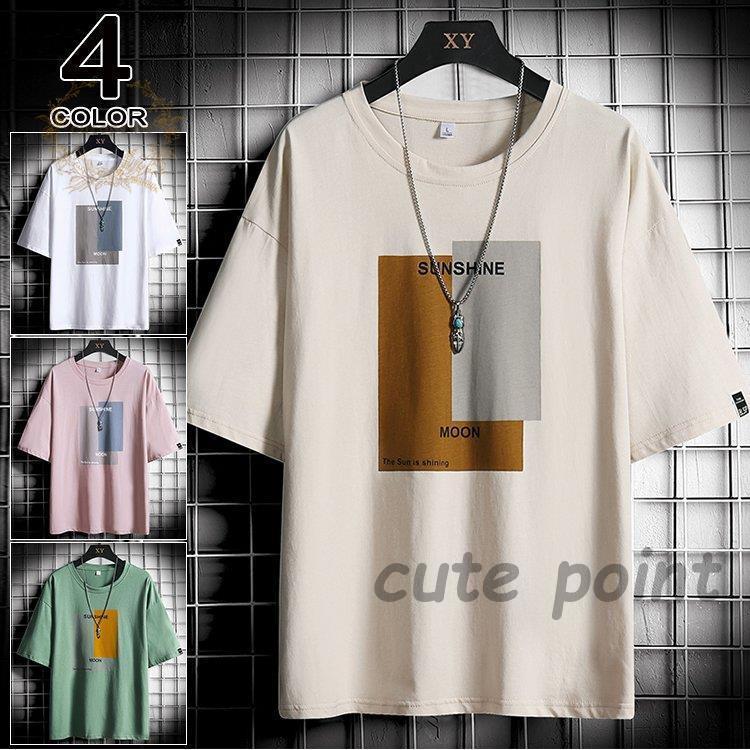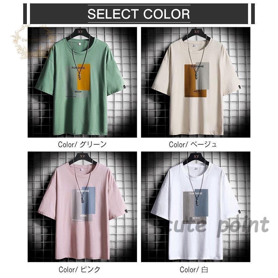 Tシャツ メンズ 配色切り替え クール メンズファッション 特集 ベージュ 白 ピンク グリーン M L XL 2XL 3XL